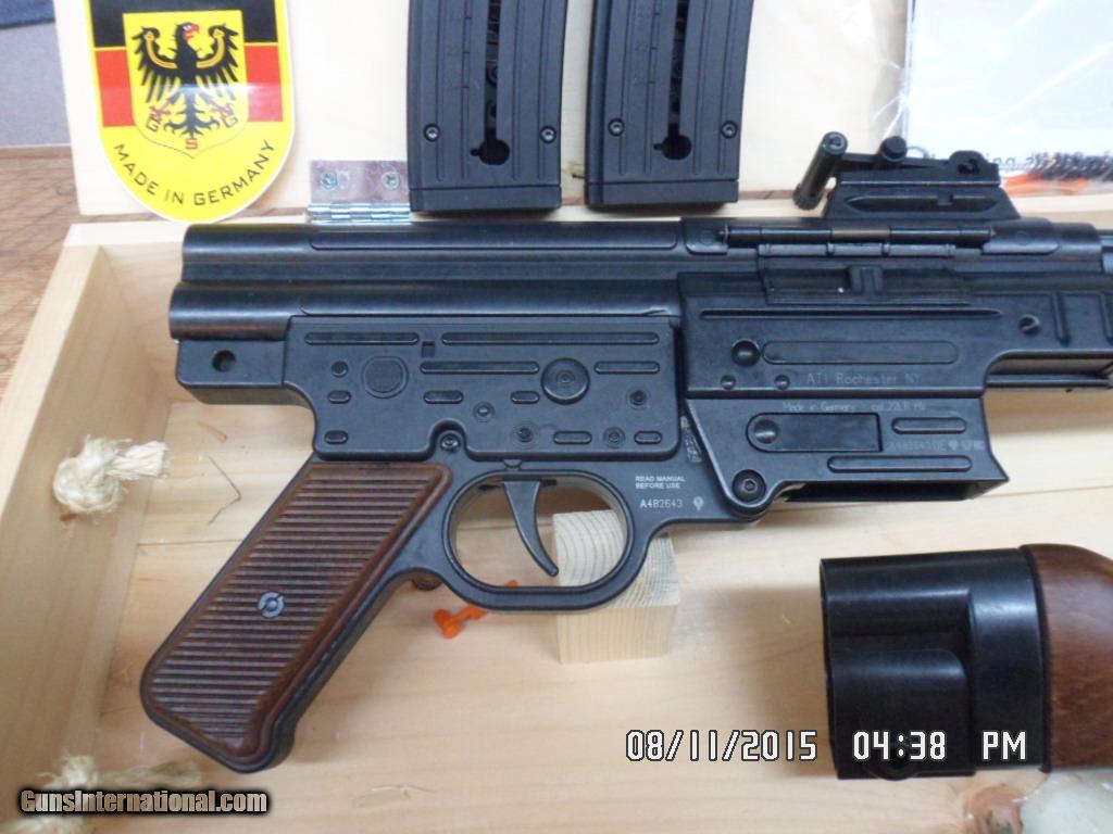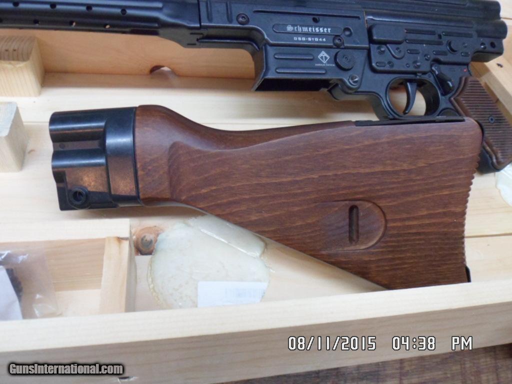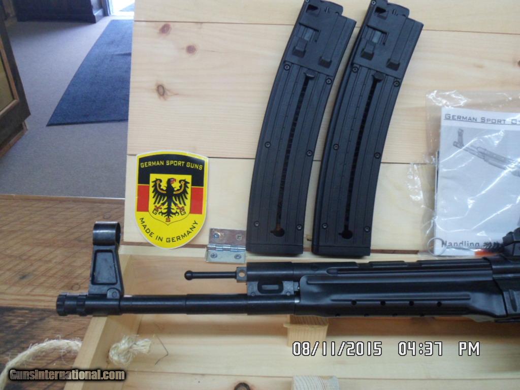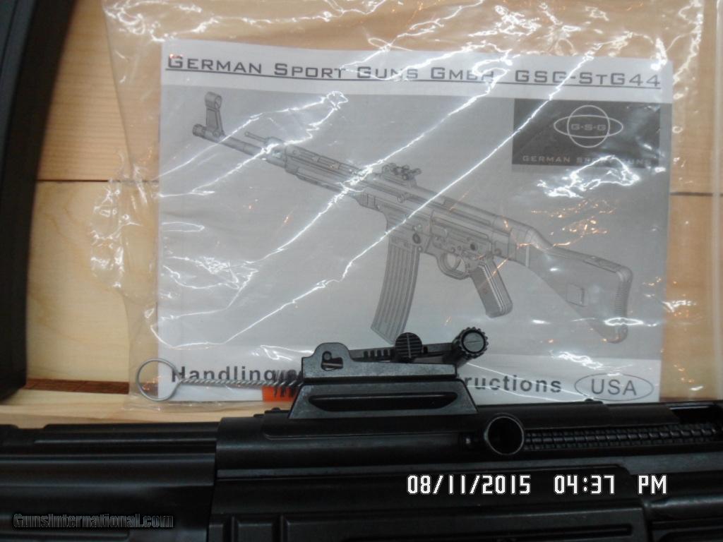 Description: GSG SCHMEISSER STG-44 22L.R. CALIBER SEMI-AUTO RIFLE.161/4" BARREL WITH NEW UNFIRED BORE.22 L.R. VERSION OF THE VENERABLE GERMAN STORM RIFLE.ADJUSTIBLE SIGHTS,WOOD STOCK AND PISTOL GRIP HANDLE.BLUE METAL FINISHES IN AMISH HAND BUILTWW2 STYLE WOOD CRATE.2-25 ROUND MAGAZINES AND ALL PAPERWORK.NEW IN CRATE. 459.00 PLUS 40.00 SHIPPING.CHECKS TAKE 10 DAYS TO CLEAR,M/O'S TAKE 5 DAYS TO CLEAR,NO CREDIT CARDS TAKEN.CALL DANNY AT 828=698=8804 IF NEEDED.GOD BLESS! SOLD |