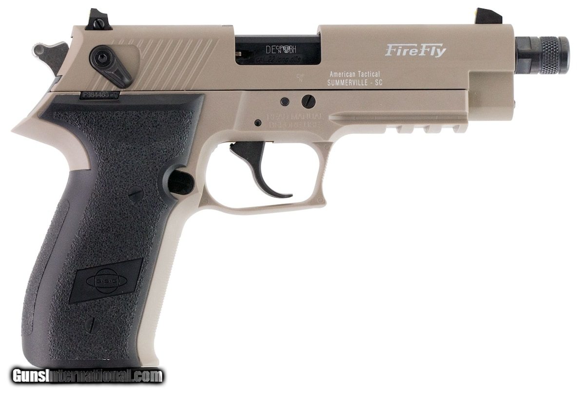 Description: Guns Listing ID: 465841 The GSG FireFly features a wear-resistant alloy frame outfitted with an integrated accessory rail. The slide has an adjustable rear sight, and along with the rugged blowback system, fixed barrel and superior ergonomic grip, the GSG FireFly delivers exceptional accuracy. Safeties include an internal locking device and slide-mounted ambidextrous safety. This model has a 4\" threaded steel barrel and a tan metal finish. SOLD Manufacturer: GSG GERMAN SPORT GUNS Model: FIREFLY Caliber Info: .22 LR Condition: new Barrels: 4.9 BARREL Finish: TAN |