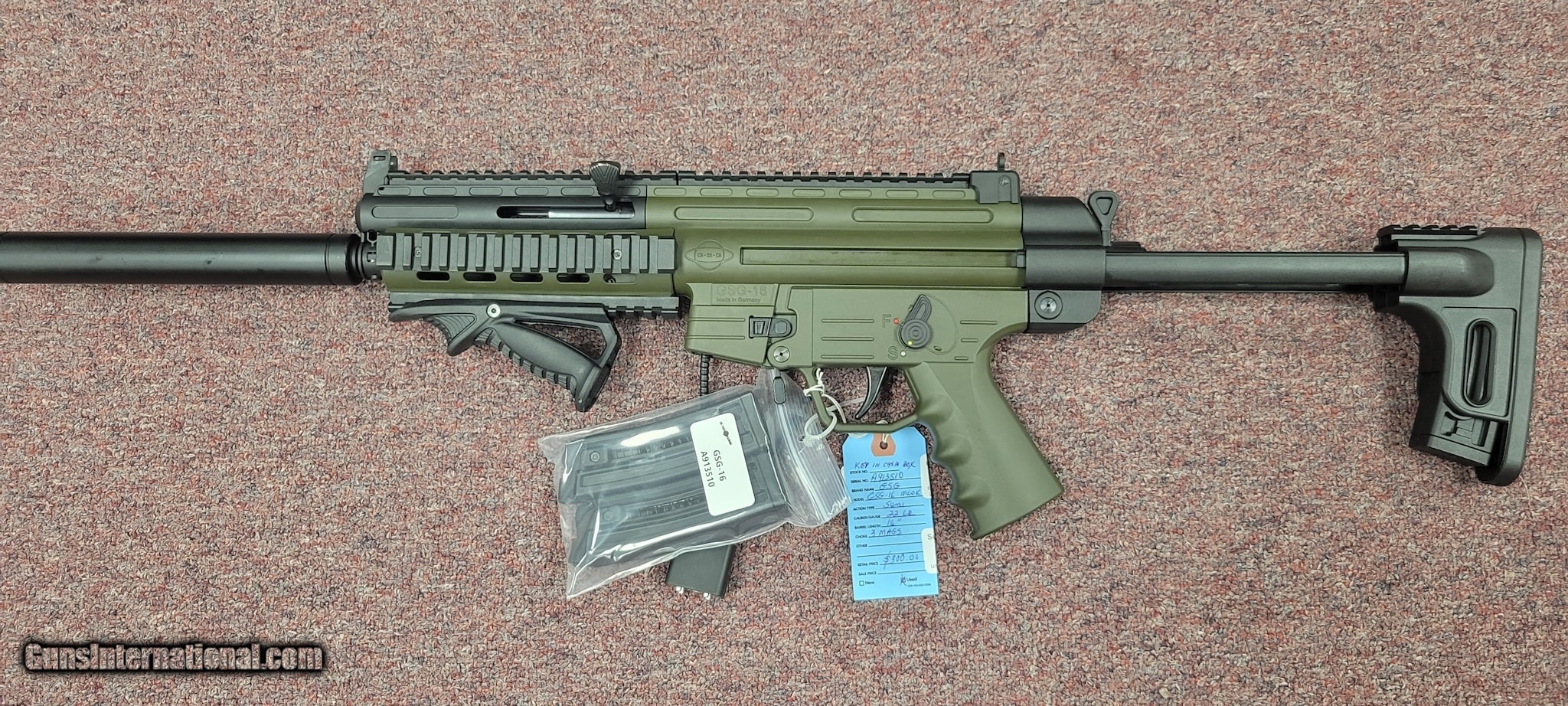 Description: Guns Listing ID: 901134 LIKE NEW GSG MLOK RIFLE WITH 3 10 ROUND MAGAZINES. IT FEATURES A COLLAPSIBLE STOCKAND ANGLED FOREGRIP, AND HAS PLENTY OF RAIL SPACE. THIS IS A GREAT DEAL! We put all the information we have about these guns / items on the blue shop tags and the on-line listing. PRICES ARE FIRM, NO OFFERS ACCEPTED . Not interested in trades. We do not offer layaway. We reserve the right to sell this item in our store or on other s at any time. Please be certain that you want this item as all sales are final. Used guns and parts almost always have some small degree of imperfection visually, and we do not have the ability to test fire, so we are never 100% certain of the functionality. No warranty is stated or implied. SOLD Manufacturer: GSG GERMAN SPORT GUNS Model: GSG - 16 Caliber Info: .22 LR Condition: Used - Non-Certified Barrels: 16 BARREL Finish: BLACK |