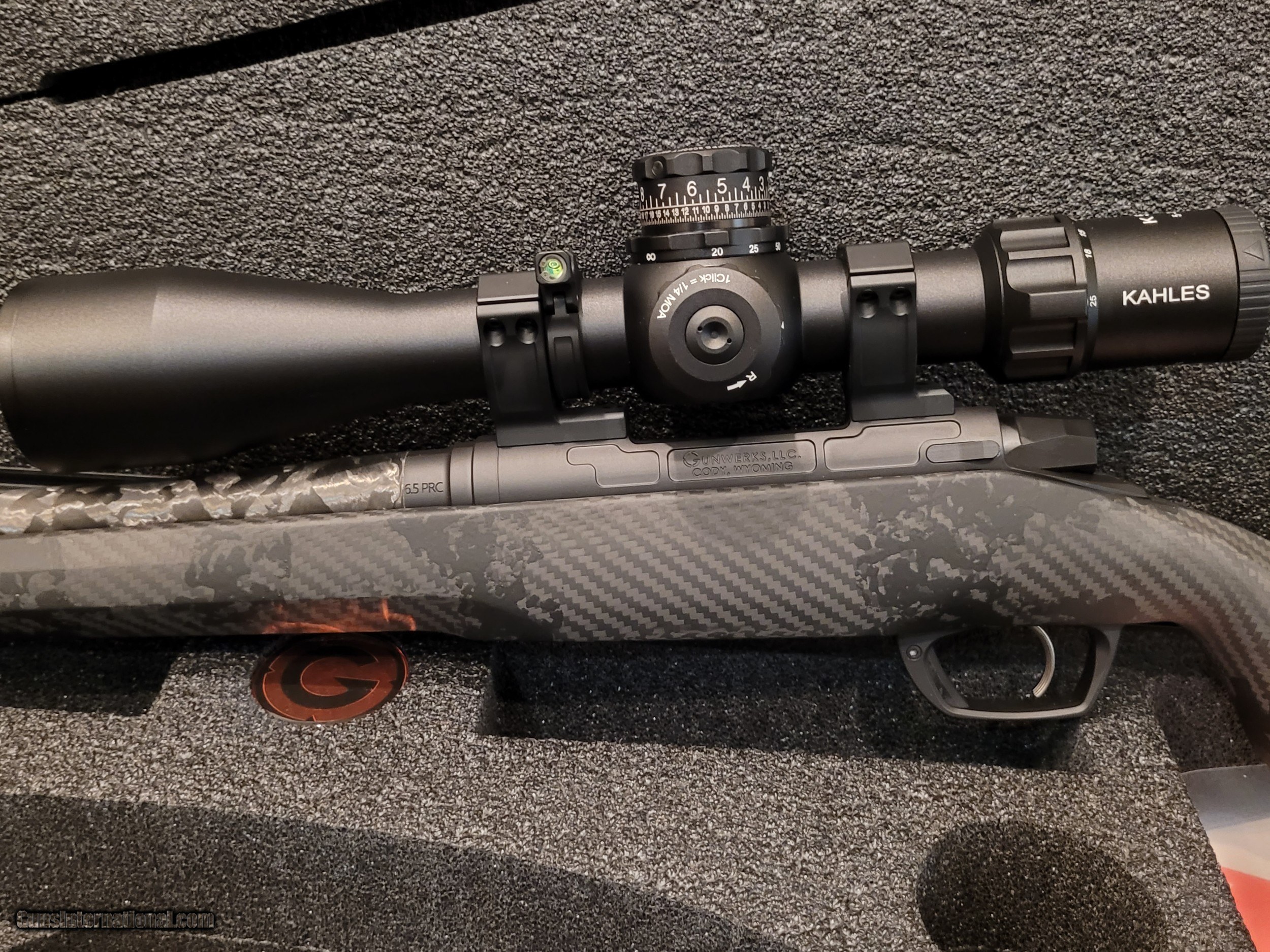 Description: Brand new, in case. 6.5 PRC GLR Titanium, 20" Carbon barrel, Floorplate, GUNWERKS Unity mount, Kahles K525i MOAK with 1000 yd ballistic turret, graphite finish. Five boxes of ammo by GUNWERKS. Yes, it is expensive. Call me. Let's make a deal. 1000 yards, out of the box, all day. SOLD Rifle Caliber: 6.5 PRC Manufacturer: GUNWERKS Model: Clymr Condition: NIB LOP: 13.5 |