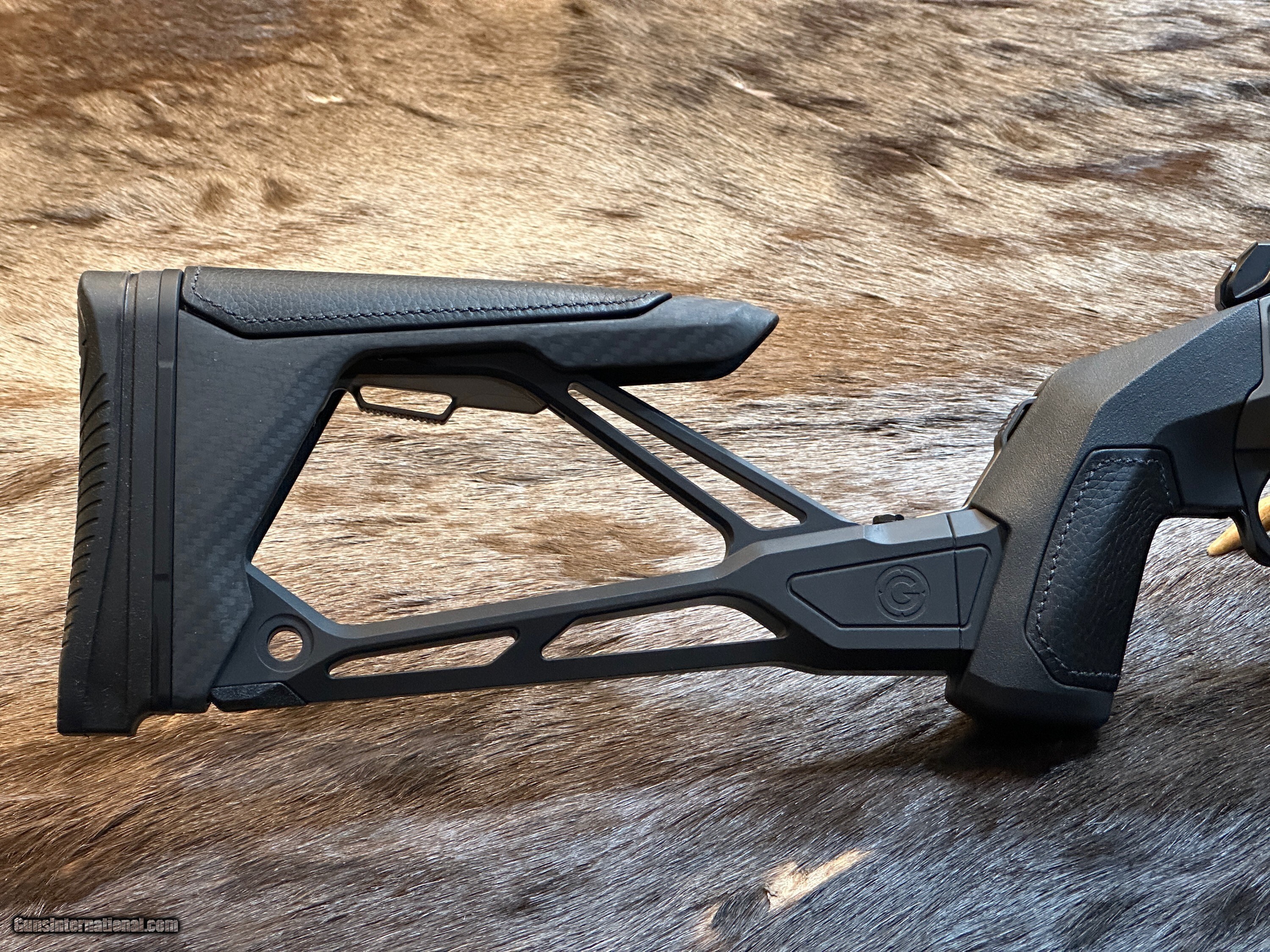 - STOCK FINISH - Type III hard anodization, flat dark earth and matte black with hand-finished premium leather inserts on the grip and cheek piece