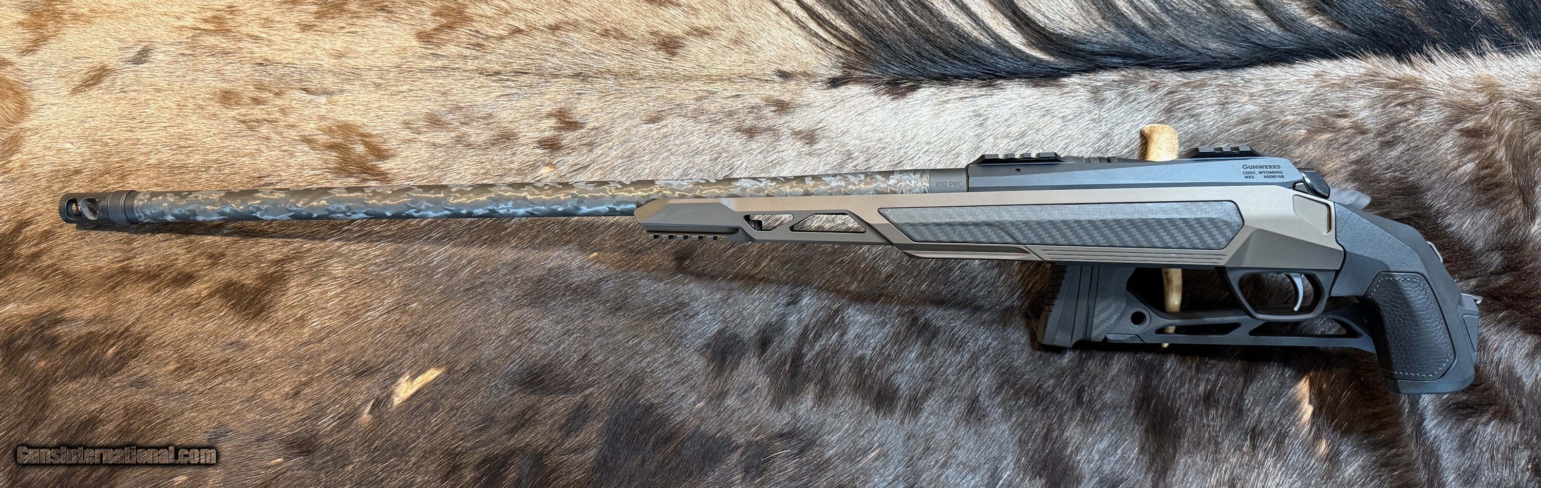- BARREL - 24" optimized C40 contour carbon wrap 416R stainless steel barrel - .850” at muzzle w/ GunWerks directional side-port brake, threaded 5/8x24", 1-9" Twist