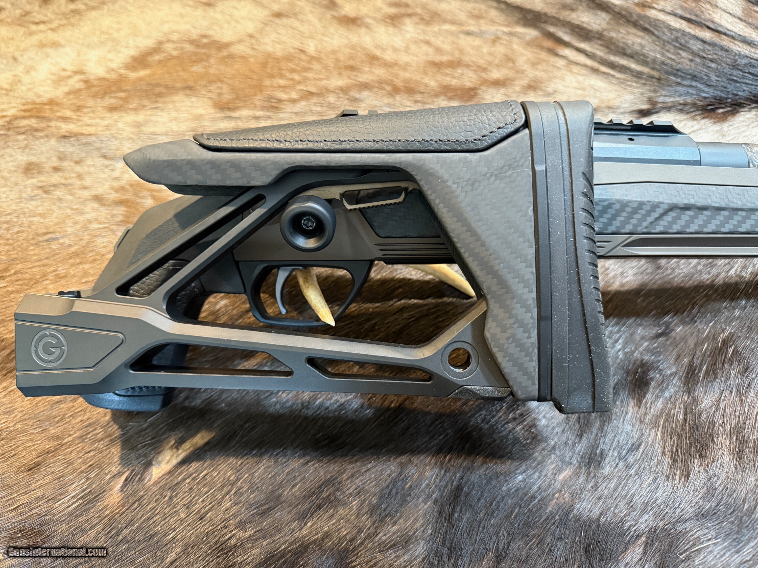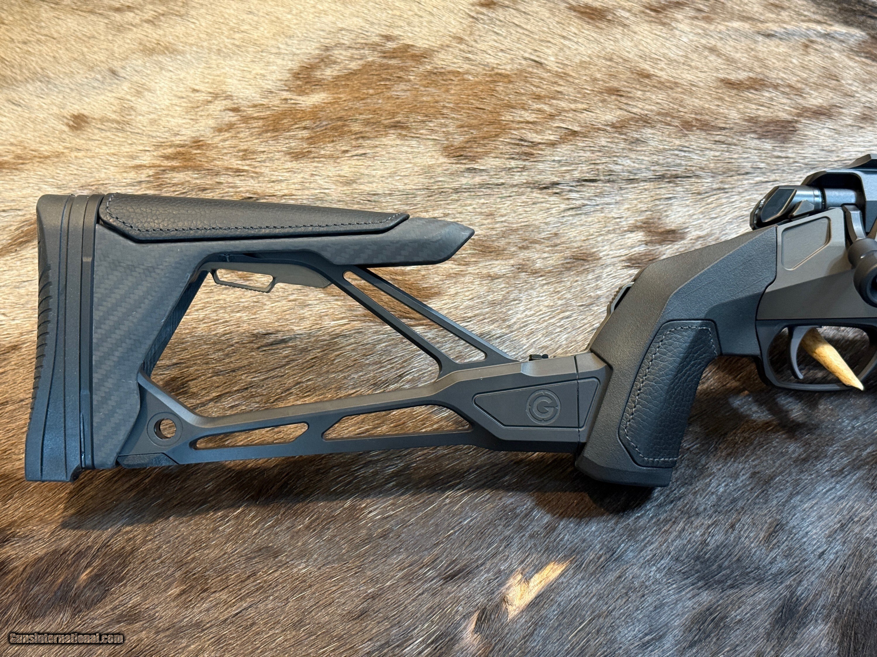 - STOCK FINISH - Type III hard anodization, flat dark earth and matte black with hand-finished premium leather inserts on the grip and cheek piece