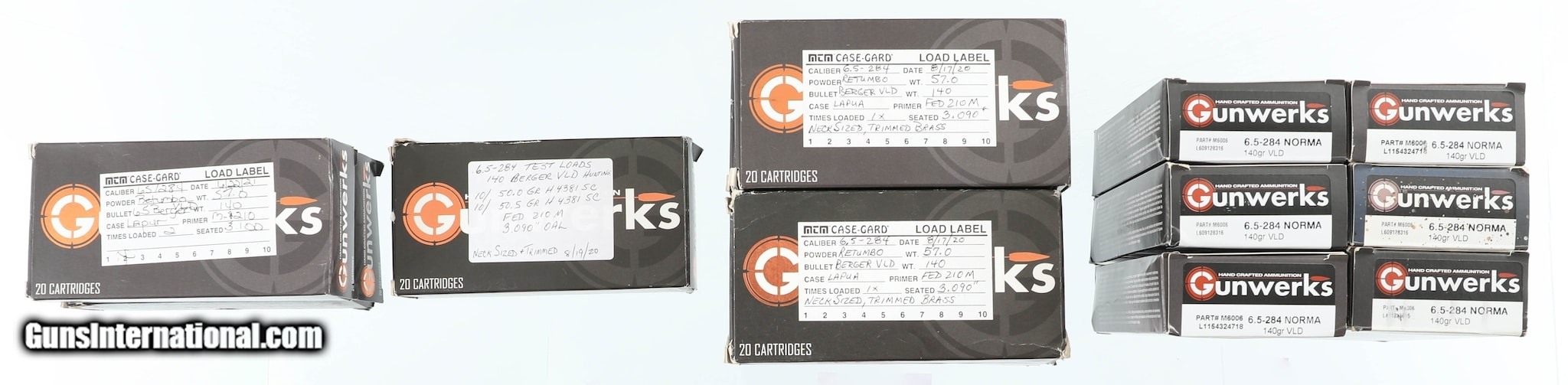Description: Guns Listing ID: 844642 MAKE - GUNWERKS MODEL - GLR FINISH - SILVER BARREL - 26\" FLUTED CALIBER - 6.5-284 NORMA CAPACITY - N/A GRIPS - CARBON FIBER CONDITION - EXCELLENT FEATURES - COMES WITH GUNWERKS GSEVEN BR2 RANGE FINDER / BALLISTIC CALCULATOR, NIGHTFORCE NXS 5.5-22 x 50 SCOPE (EXTRA TURRET CAP), TALLEY RINGS/MOUNT, GUNWERKS ROLLING HARD CASE, TIMNEY CALVIN ELITE 1.5 LB TRIGGER, SPIRAL FLUTED BOLT, SLING, LOCKS, PAPERS, 6 FULL BOXES OF NEW CUSTOM-LOADED AMMO BY GUNWERKS, 6 FULL BOXES OF RELOADED AMMO, 1 HALF BOX OF RELOADED AMMO, & 2 BOXES OF EMPTY BRASS CASINGS. GUN HAS ALWAYS BEEN CLEANED EVERY 20-25 ROUNDS USING A NYLON BRUSH NEVER USED A BRASS BRUSH. GUN HAS VERY LITTLE RECOIL AND IS A TAC DRIVER BORE IS EXCELLENT AND SHARP GUN HAS BEEN TAKEN EXCELLENT CARE OF AND IS PRISTINE AMMO WILL BE SHIPPED SEPERATLY BUT IS INCLUDED. SOLD Manufacturer: GUNWERKS Model: GLR PRECISION RIFLE IN CARBON FIBER STOCK, TIMNEY CALVIN ELITE TRIGGER W/ NIGHTFORCE NXS ORIGINAL C Caliber Info: 6.5-284 NORMA Condition: Used - Non-Certified Barrels: 26 BARREL Finish: SILVER |