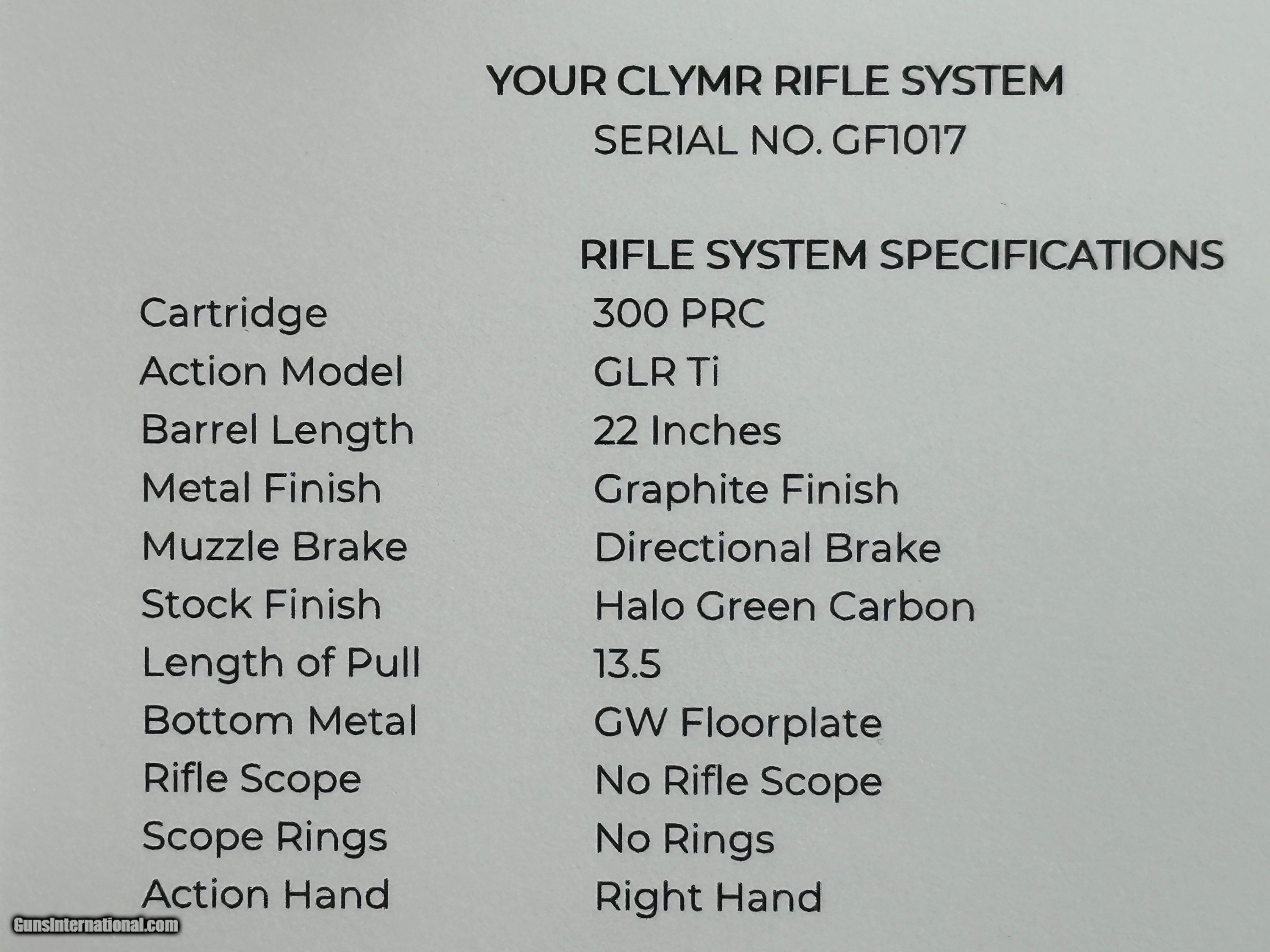 NEW GUNWERKS CLYMR 300 PRC GLR TI TITANIUM 22" CARBON BARREL W/ BRAKE, GLR-TI HALO GREEN - LAYAWAY AVAILABLE
