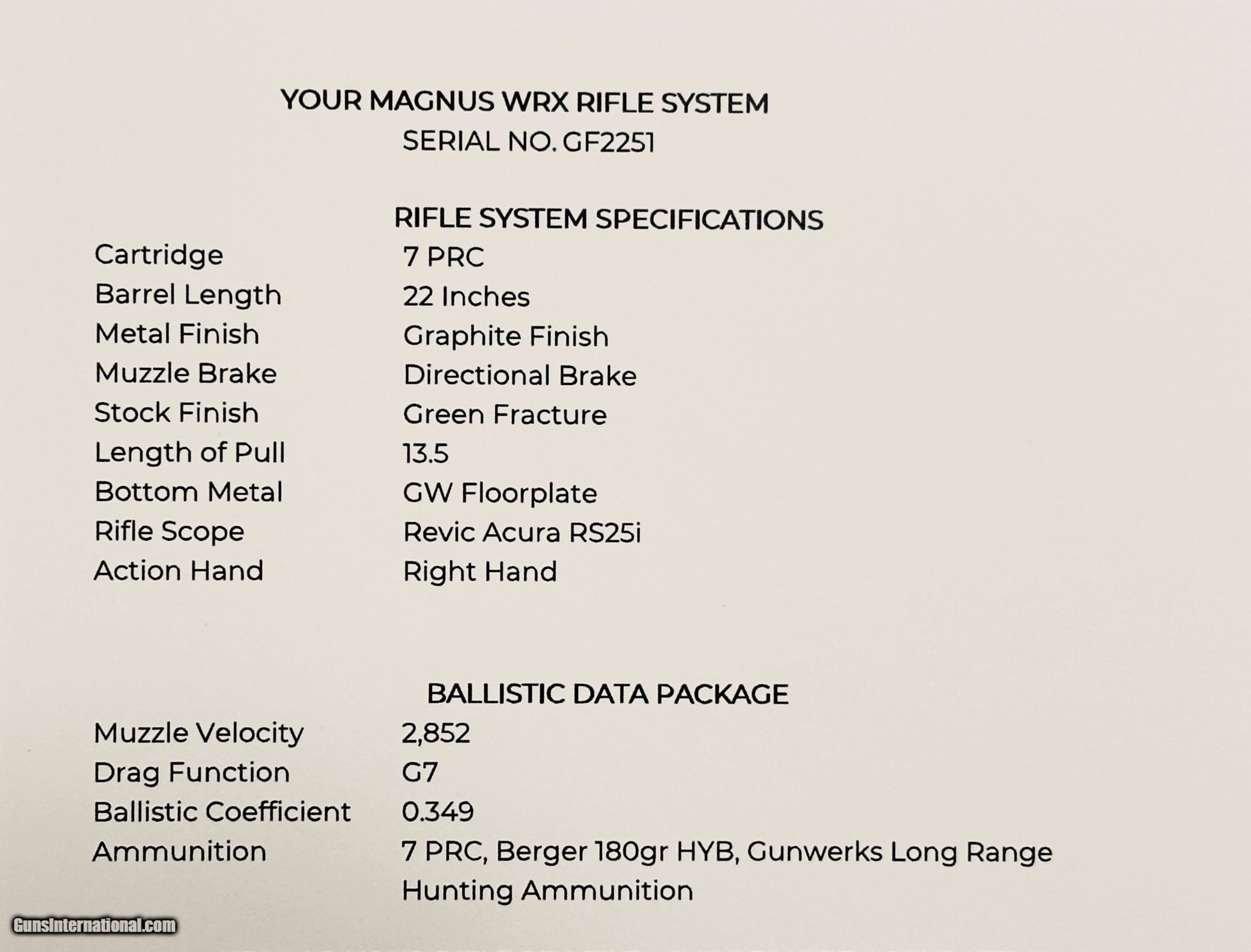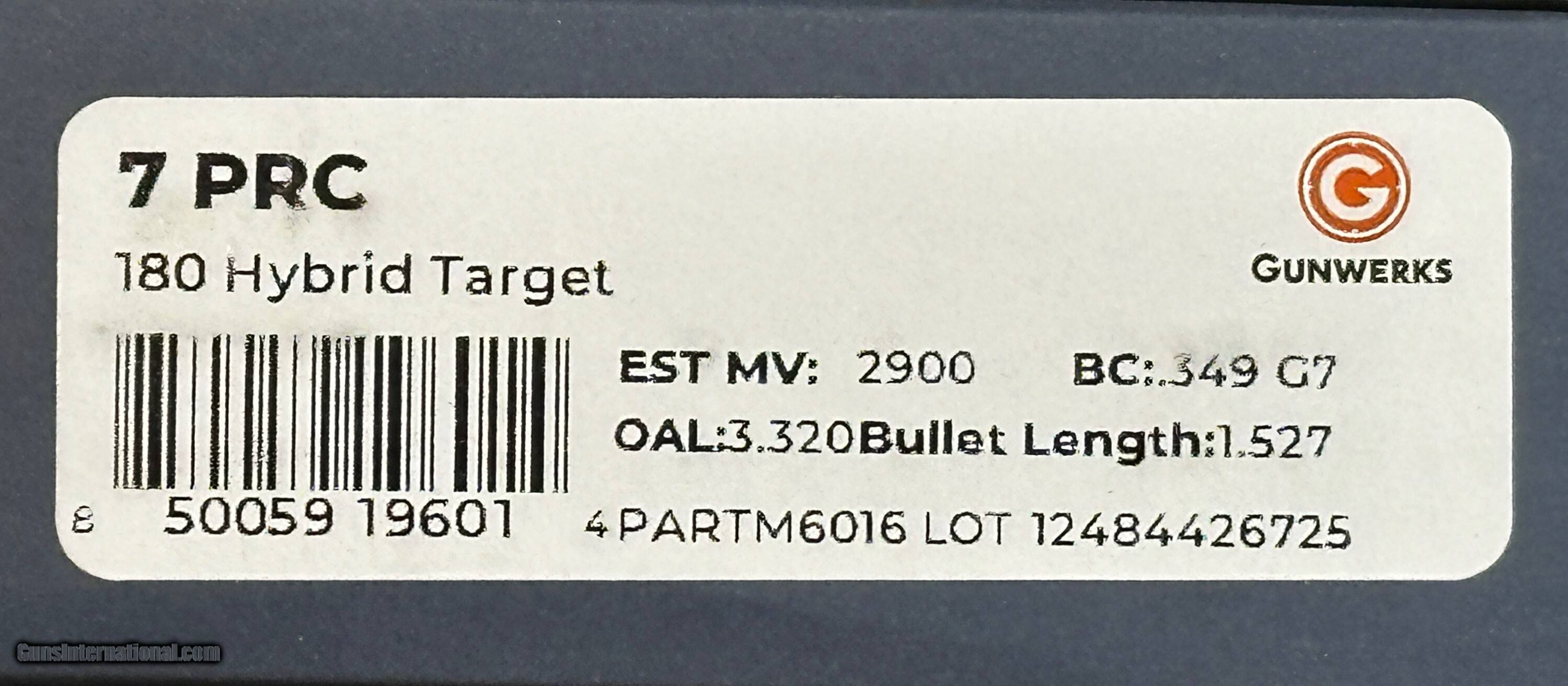 - GUNWERKS AMMO FOR THIS SPECIFIC RIFLE - Gunwerks 7 PRC 180gr Berger Hybrid