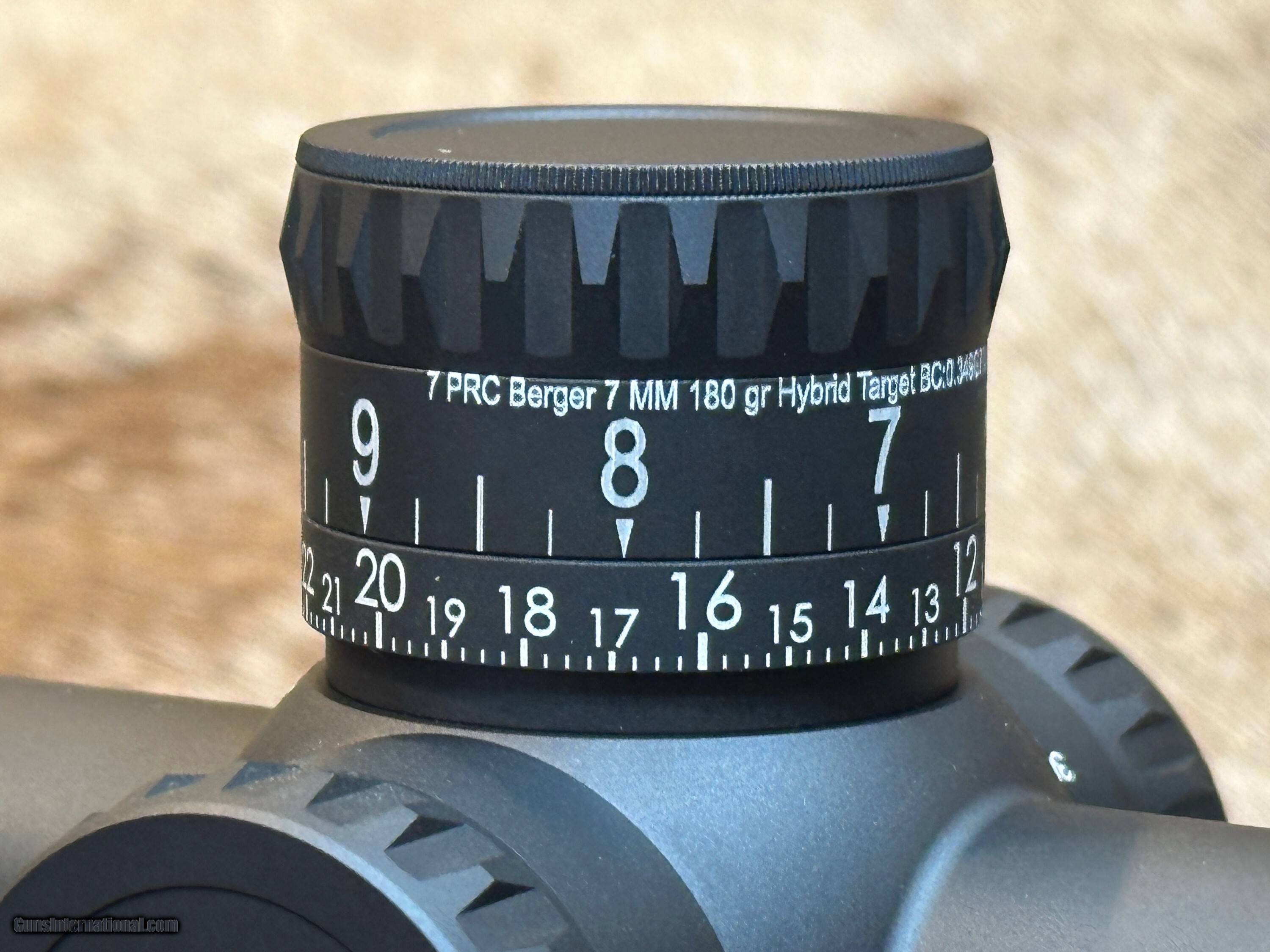 - OPTIC: Revic Acura RS25i First Focal Plane 5-25x50 scope with 30mm tube and Revic Illuminated RH2 MOA reticle, capped windage, side parallax, 25MOA per revolution CUSTOM CUT turret for this specific rifle and ammo with zero stop