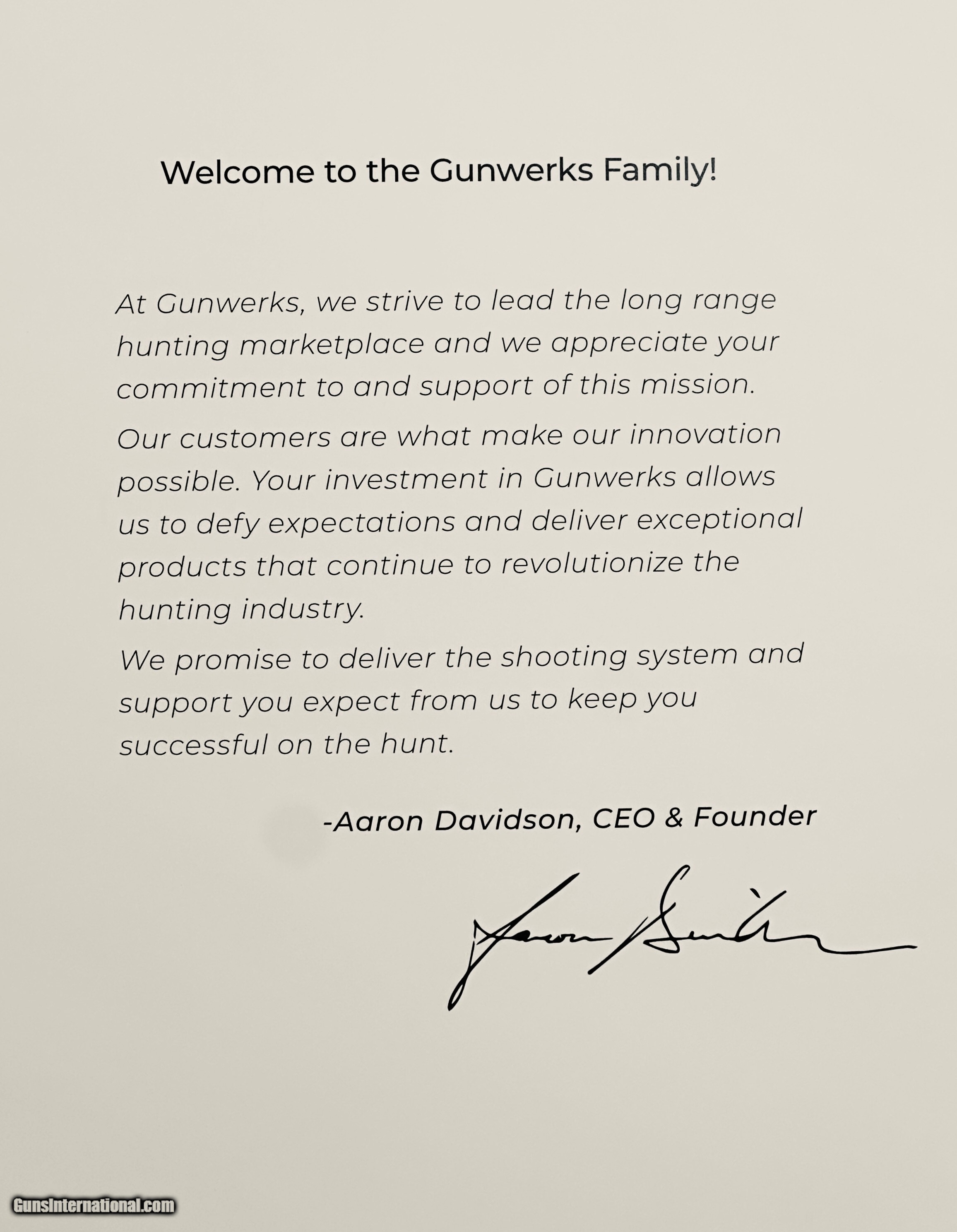 The Ultimate Hunting Rifle: At home hunting in the mountains and competing at the range, the Gunwerk's Magnus MTX marries stability with power to deliver accurate & powerful shots downrange - every time. JD OUTFITTERS ALSO OFFER A SPECIAL AFRICAN SAFARI AND HAVE ADDITIONAL GUNWERKS PRODUCTS, SUCH AS AMMUNITION, CUSTOM CUT ROLLER HARD CASE, LASER RANGEFINDING BINOCULARS, SUPPRESSORS, RANGE FINDERS, TRIPODS, AND OTHER ITEMS. THE GUNWERKS PRODUCTS ARE IN STOCK AND AVAILABLE TO COMPLETE YOUR SHOOTING SYSTEM. CONTACT JD OUTFITTERS AT FOR THESE OFFERINGS. LAYAWAY AVAILABLE - $2,000 DOWN AND UP TO 6 MONTHS TO PAY OUT. TO BEGIN THE LAYAWAY, CONTACT JD AT 405/822.1564. ADDITIONAL TERMS OF THE SALE