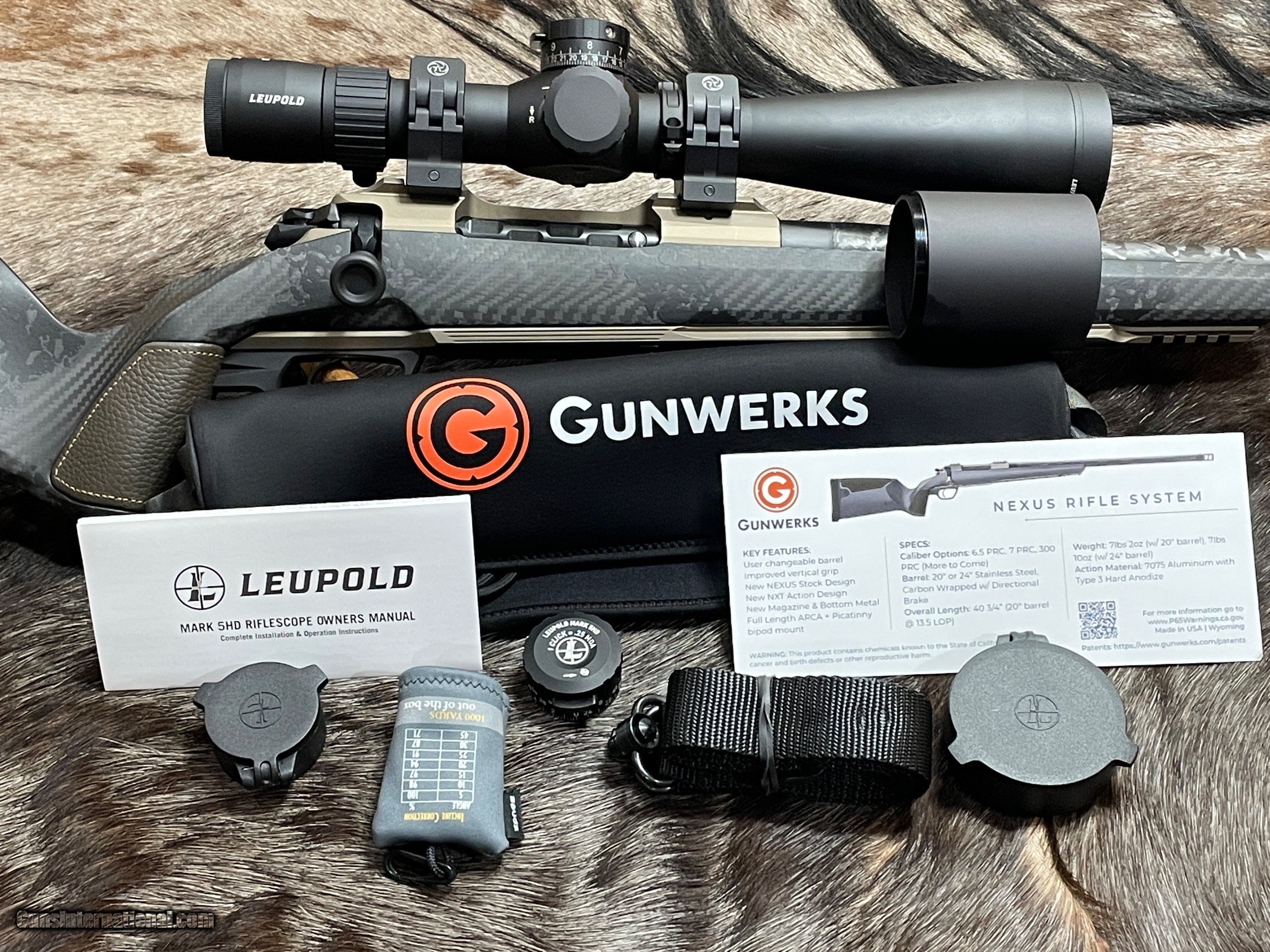 NEW GUNWERKS NEXUS 6.5 PRC 20" & 300 PRC 24" LEUPOLD MARK 5HD 5-25X56, CASE - LAYAWAY AVAILABLE