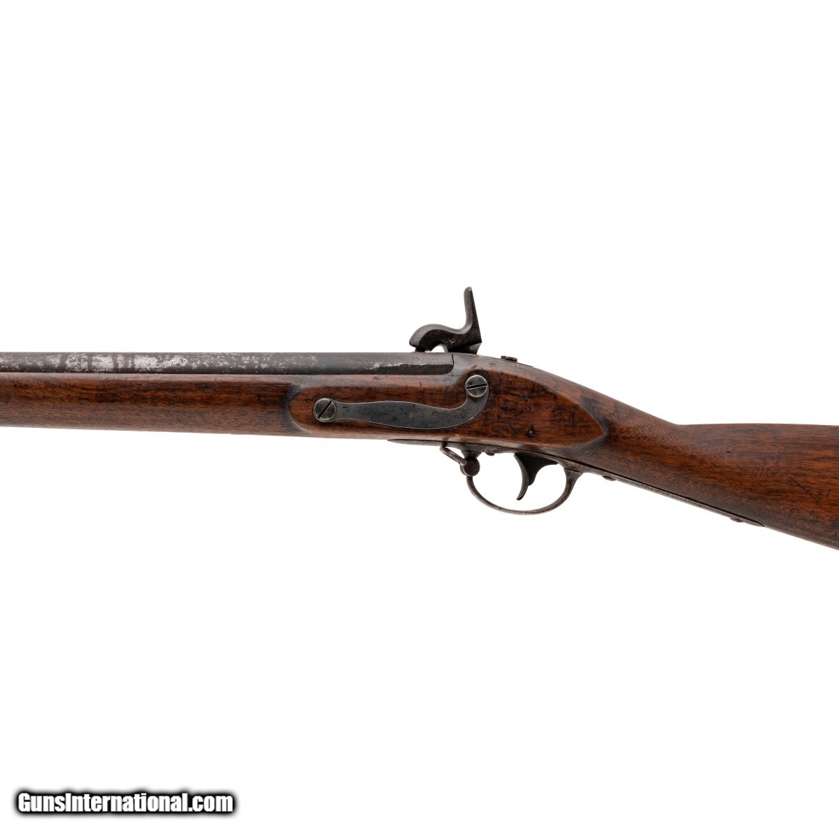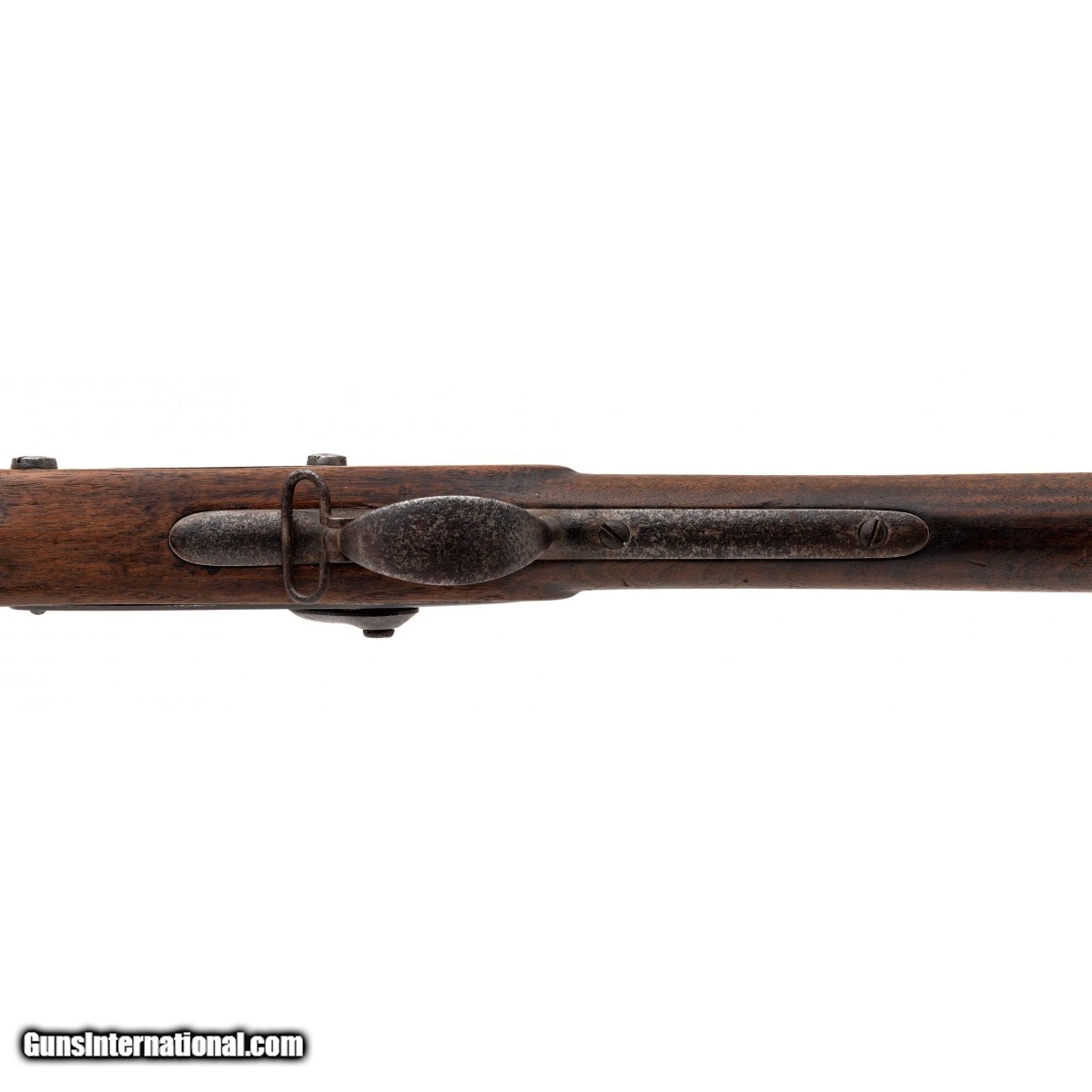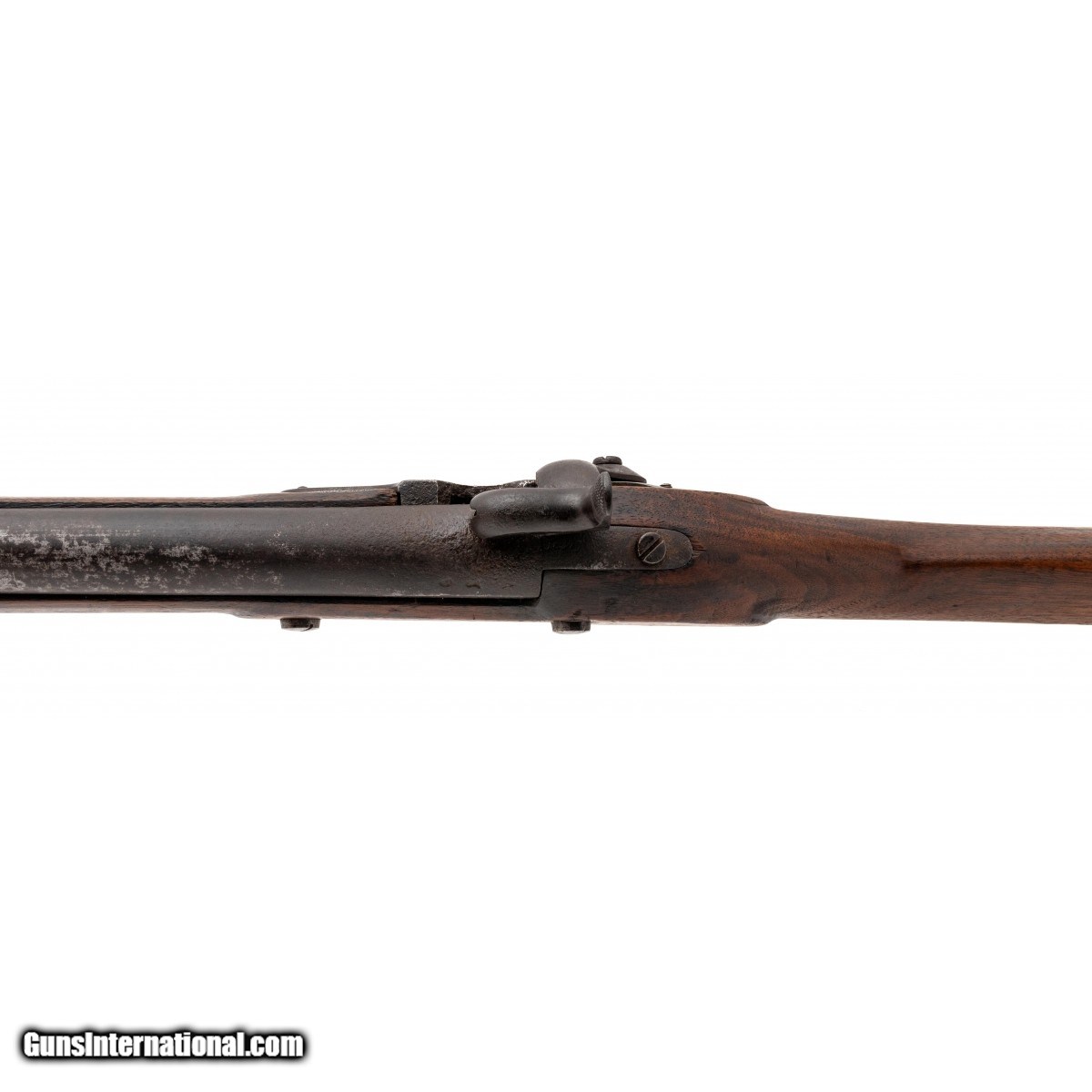 Description: " NSN, made circa 1839, .69 caliber, 42"" round proofed barrel. Musket has been converted to percussion, barrel and other iron parts are a light to dark grey patina. Oxidation is visible around the nipple. Barrel's date is hard to read but looks to be 1837. Lock plate is marked ""EAGLE/US"" Rear is marked ""Harpers/Ferry/1839"" Stock is in overall good condition with expected light handling wear. CONSIGNMENT SOLD Antique: Yes |