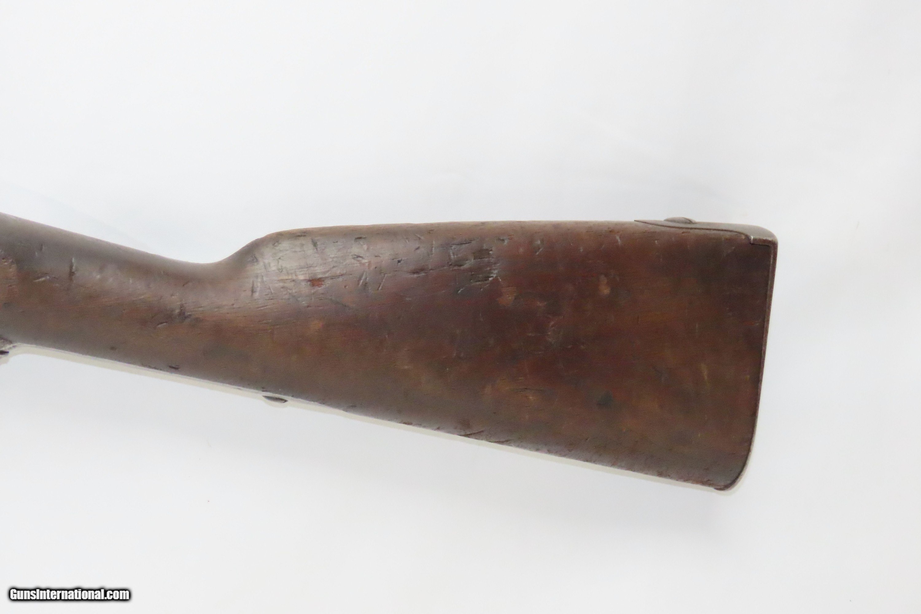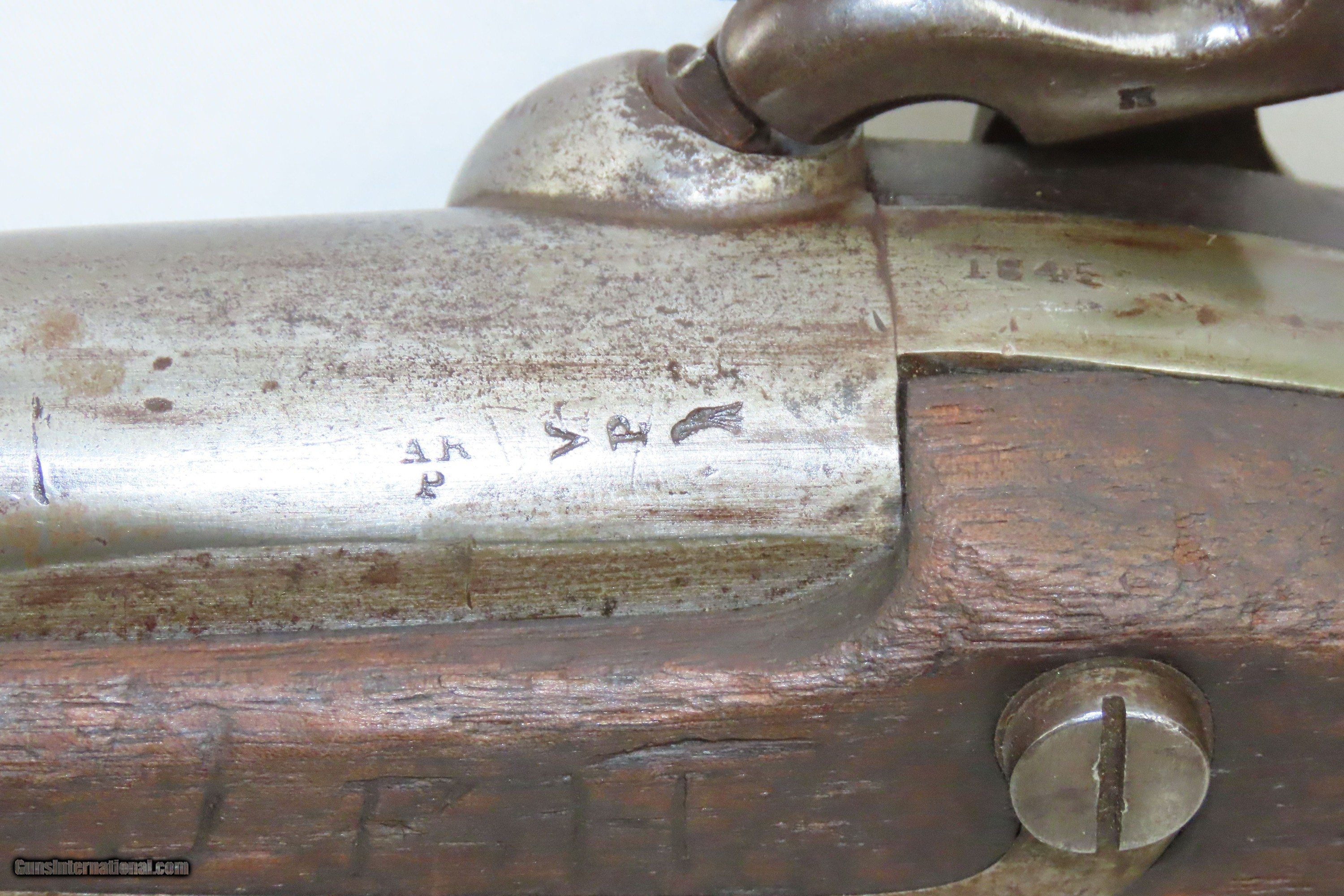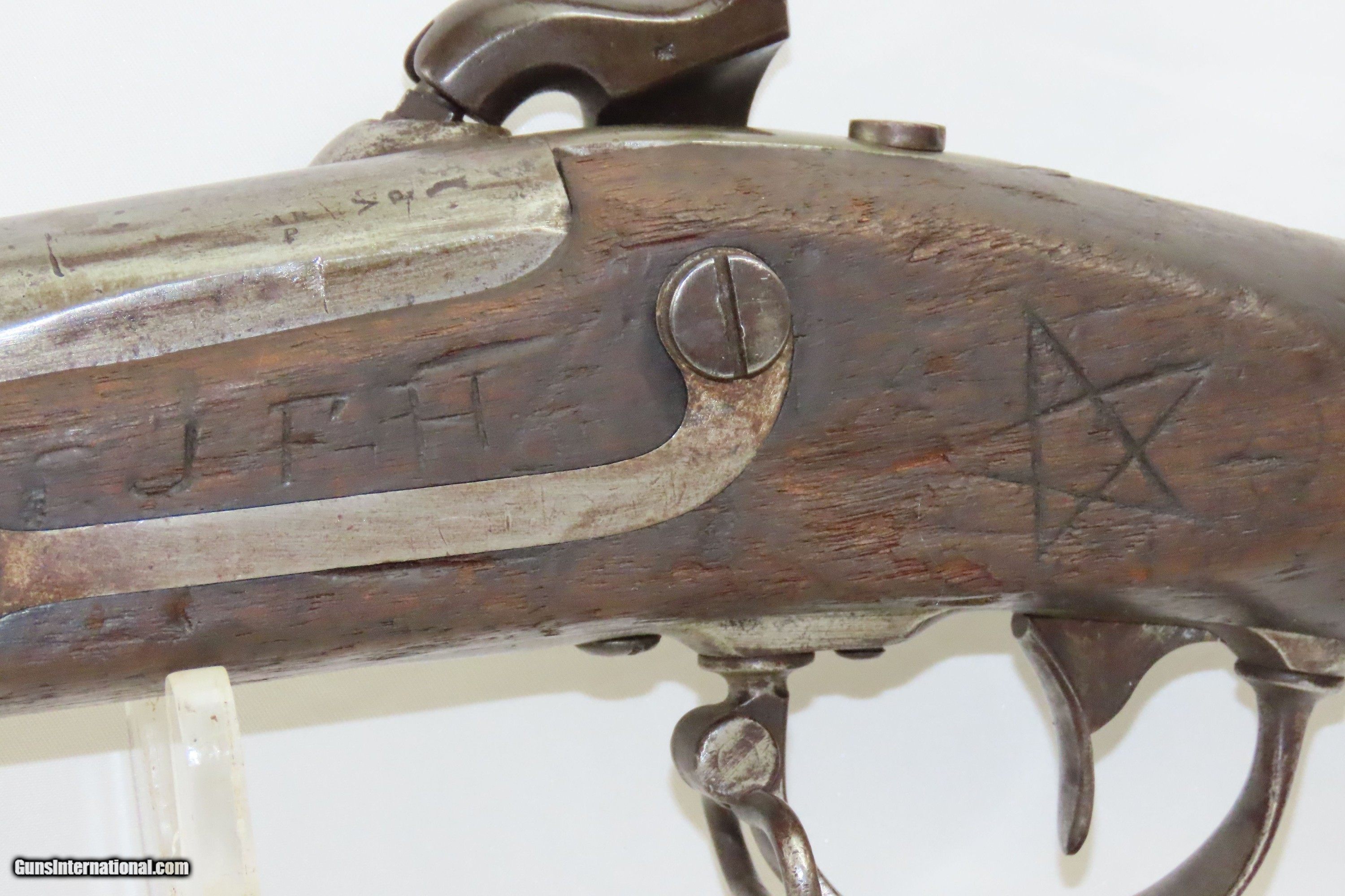 Description: MEXICAN-AMERICAN WAR Era Antique HARPERS FERRY U.S. M1842 Percussion MUSKET 1845/49 Dated and Used into the AMERICAN CIVIL WAR Here we present an antique Harpers Ferry U.S. Model 1842 Percussion Musket, made circa the Mexican-American War era in Harpers Ferry, Virginia. The Model 1842 was the first regulation percussion musket to be manufactured at both Springfield and Harpers Ferry Armories, as well as the first to be produced by both national armories with fully-interchangeable parts. These were also the last .69 caliber smoothbore arms to be produced by the U.S. government. Approximately 275,000 were manufactured between 1844 and 1855, with only one-third of these produced at Harpers Ferry. Along with usage during the Mexican-American War in 1846 through 1848, these would have been in the hands of local militia all over the antebellum United States and used by both combatants at the outbreak of the American Civil War. Both the original smoothbore version and the modified rifled version of the Model 1842 were used in the American Civil War. The smoothbore version was produced without sights (except for a cast one on the barrel band). When Model 1842 muskets were modified to have rifled barrels, sights were usually added at the same time as the rifling. This example has the barrel marked “AR” for U.S. Ordnance Sub-Inspector Adam Rhulman. It has an “1845” dated barrel tang and an “1849” dated lock. The overall condition is good. This musket was shortened. Replacement ramrod. The action is strong. The bore is smooth and patinated. The walnut stock shows much wear. It also has several instances of soldier graffiti. Own the original! This is a legitimate antique and not a reproduction. Barrel is 33 inches. Caliber: .69 Percussion Overall condition as seen in photos. Very Fast. Very Safe. FREE SHIPPING WORLDWIDE. Delivered directly to your door by express mail! Guaranteed AUTHENTIC & Includes CERTIFICATE OF AUTHENTICITY. ancestryguns $1400 #233063 SOLD Antique: Yes |