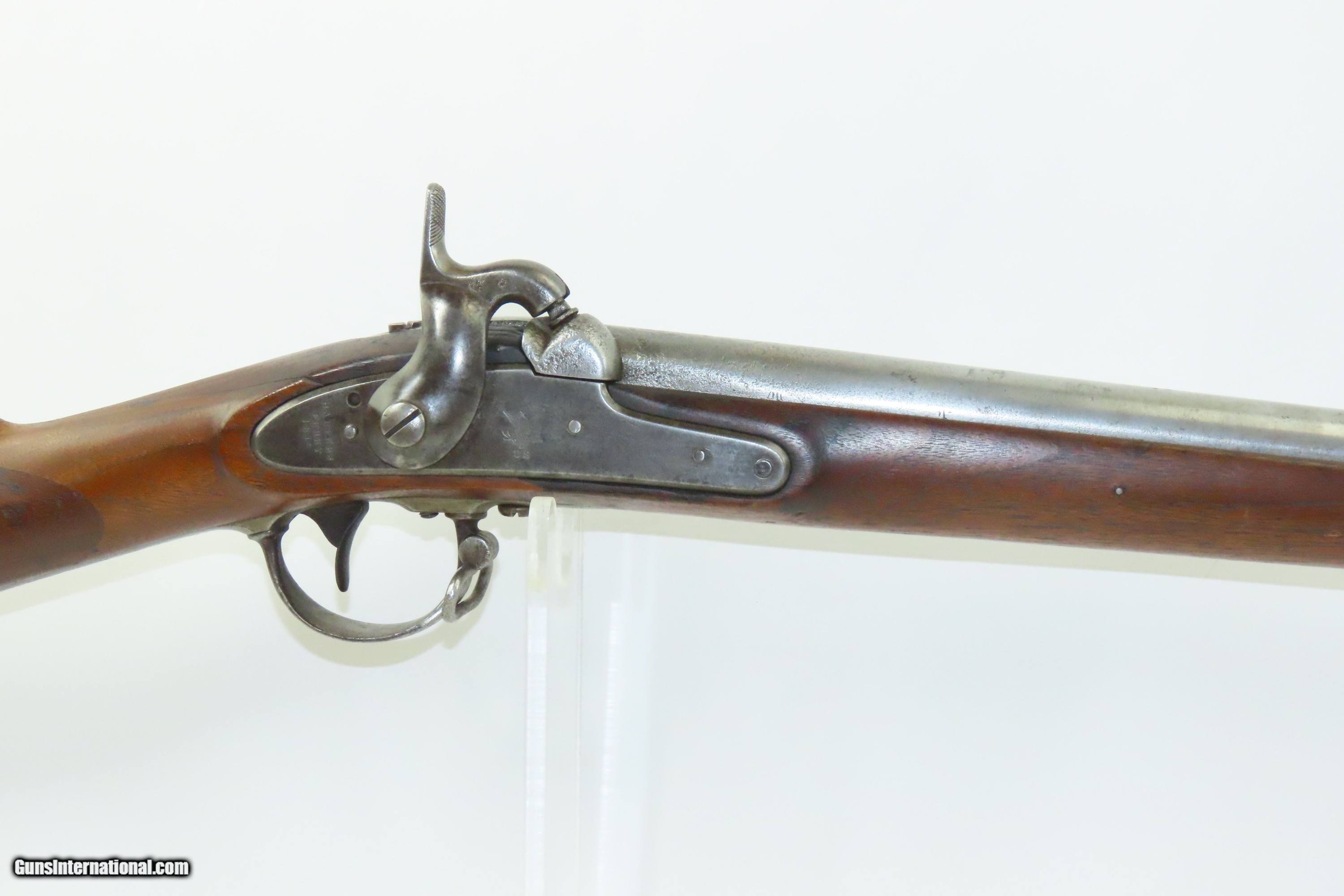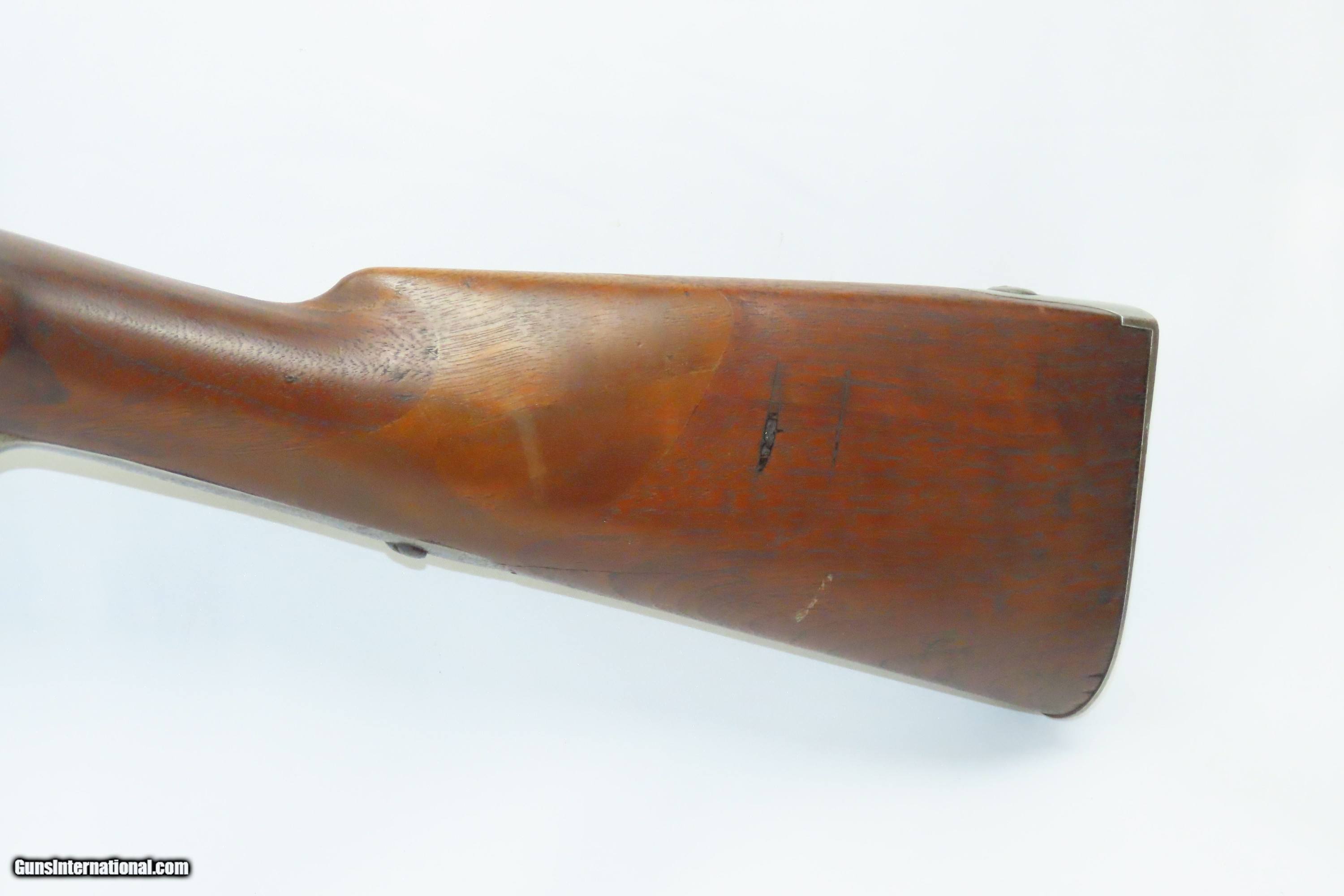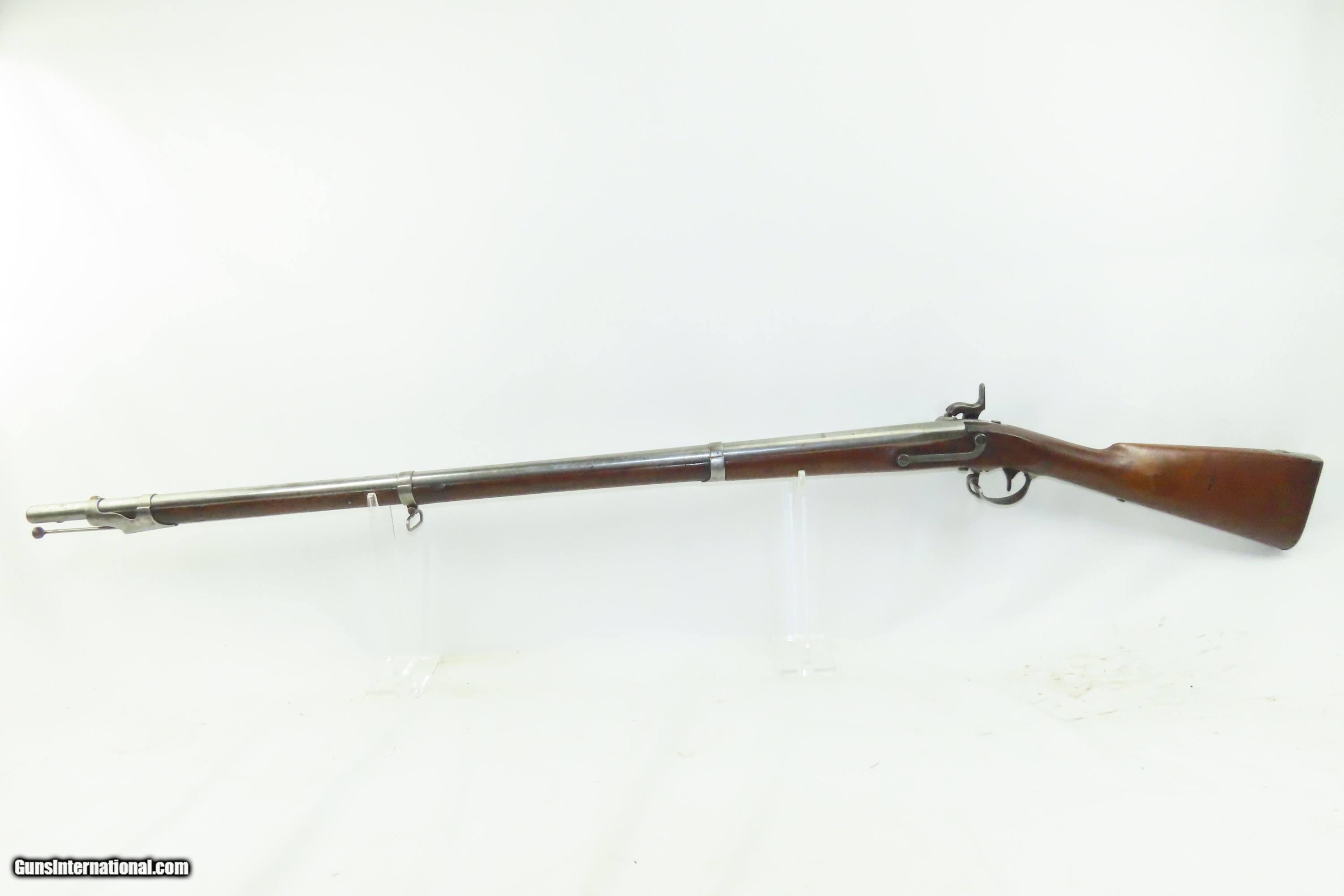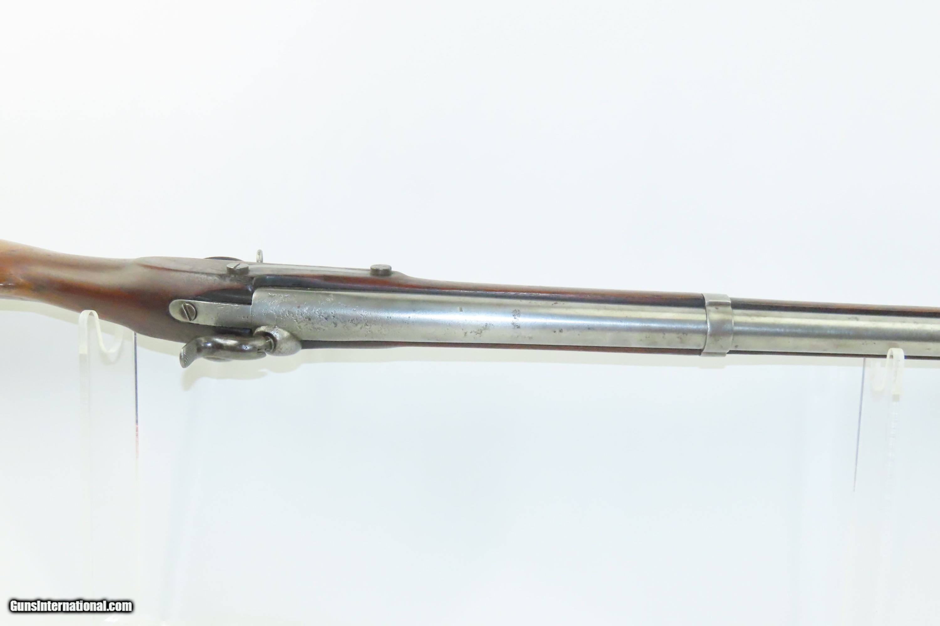Description: MEXICAN-AMERICAN WAR Era Antique HARPERS FERRY U.S. M1842 Percussion MUSKET 1848 Dated and Used into the AMERICAN CIVIL WAR Here we present an antique Harpers Ferry U.S. Model 1842 Percussion Musket, manufactured circa 1848 in Harpers Ferry, Virginia. The Model 1842 was the first regulation percussion musket to be manufactured at both Springfield and Harpers Ferry Armories, as well as the first to be produced by both national armories with fully-interchangeable parts. These were also the last .69 caliber smoothbore arms to be produced by the U.S. government. Approximately 275,000 were manufactured between 1844 and 1855, with only one-third of these produced at Harpers Ferry. Along with usage during the Mexican-American War in 1846 through 1848, these would have been in the hands of local militia all over the antebellum United States and used by both combatants at the outbreak of the American Civil War. Both the original smoothbore version and the modified rifled version of the Model 1842 were used in the American Civil War. The smoothbore version was produced without sights (except for a cast one on the barrel band). When Model 1842 muskets were modified to have rifled barrels, sights were usually added at the same time as the rifling. The overall condition is good. The action is excellent. The bore is smooth and dim. The stock shows two faint cartouches, the numbers 15 and 42 have been stamped on the right side and 11 has been inscribed on the left. There is a very smooth graft repair from the back of the lock through the wrist and comb. Replacement ramrod. Own the original! This is a legitimate antique and not a reproduction. Barrel is 42 inches. Caliber: .69 Percussion Overall condition as seen in photos. Very Fast. Very Safe. FREE SHIPPING WORLDWIDE. Delivered directly to your door by express mail! Guaranteed AUTHENTIC & Includes CERTIFICATE OF AUTHENTICITY. ancestryguns $1600 #240126 SOLD Antique: Yes |