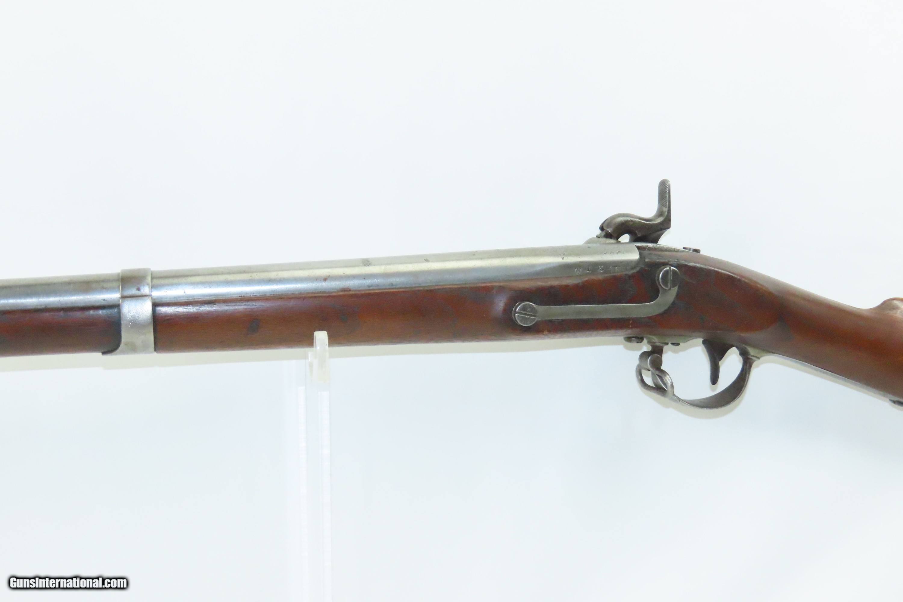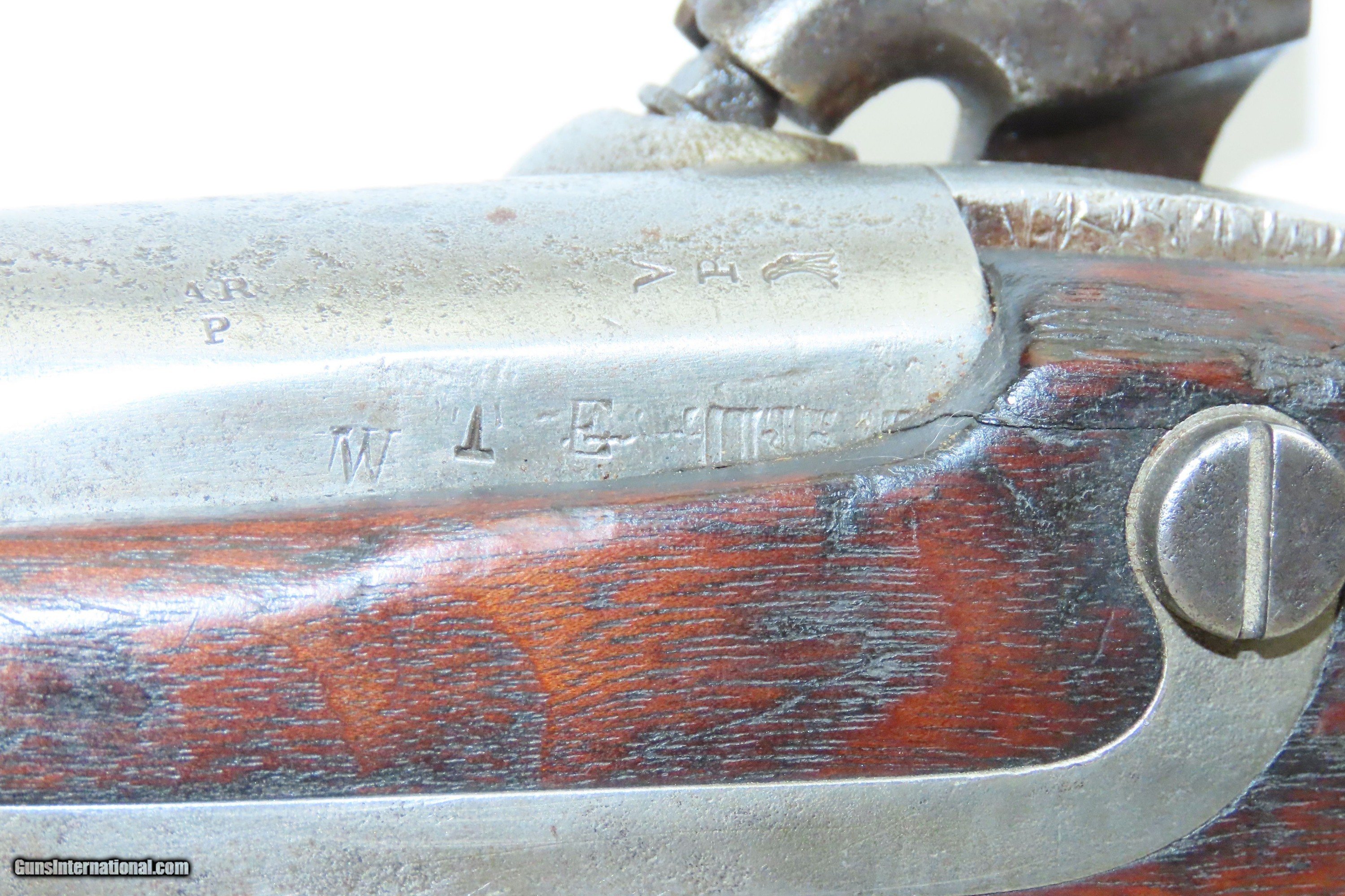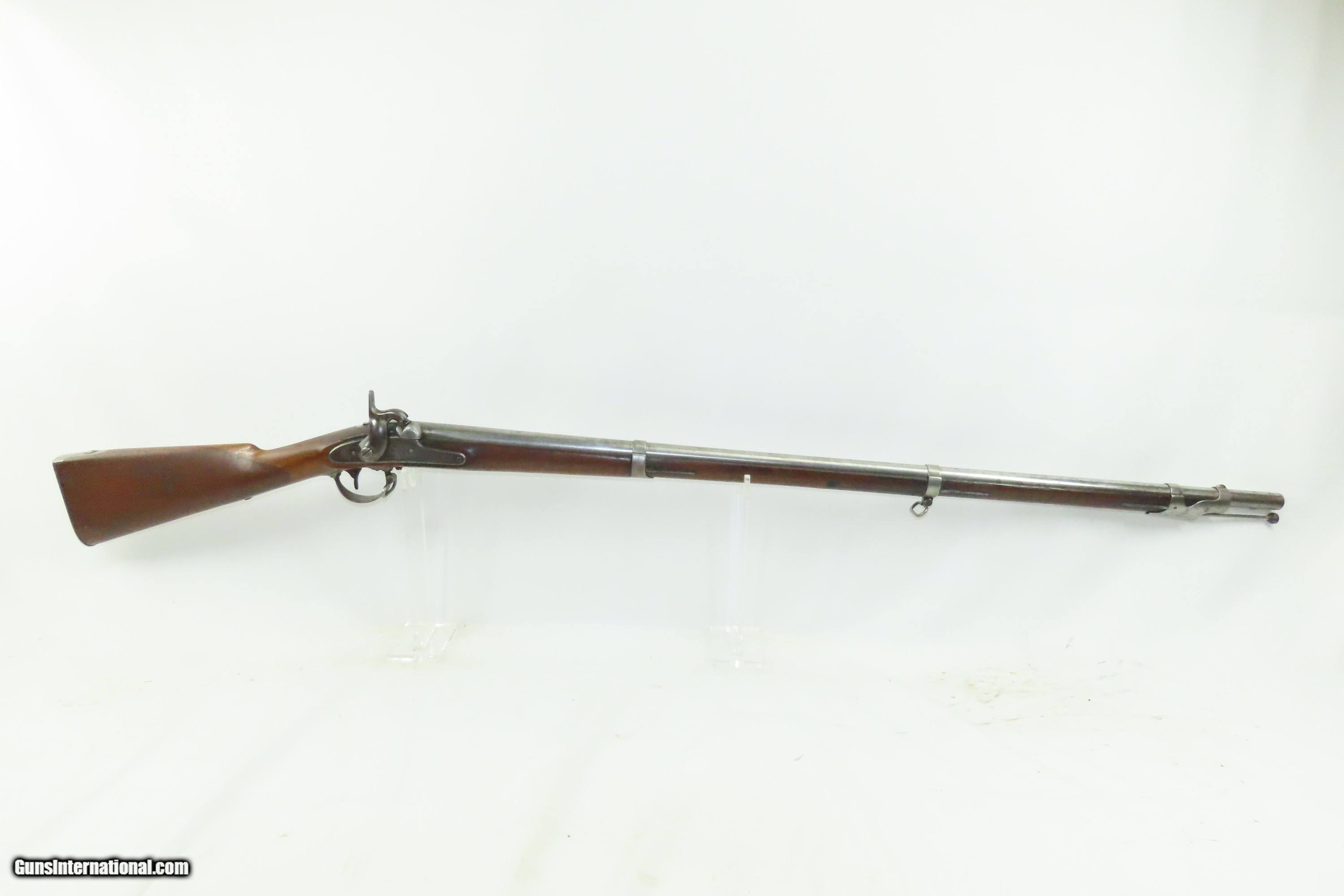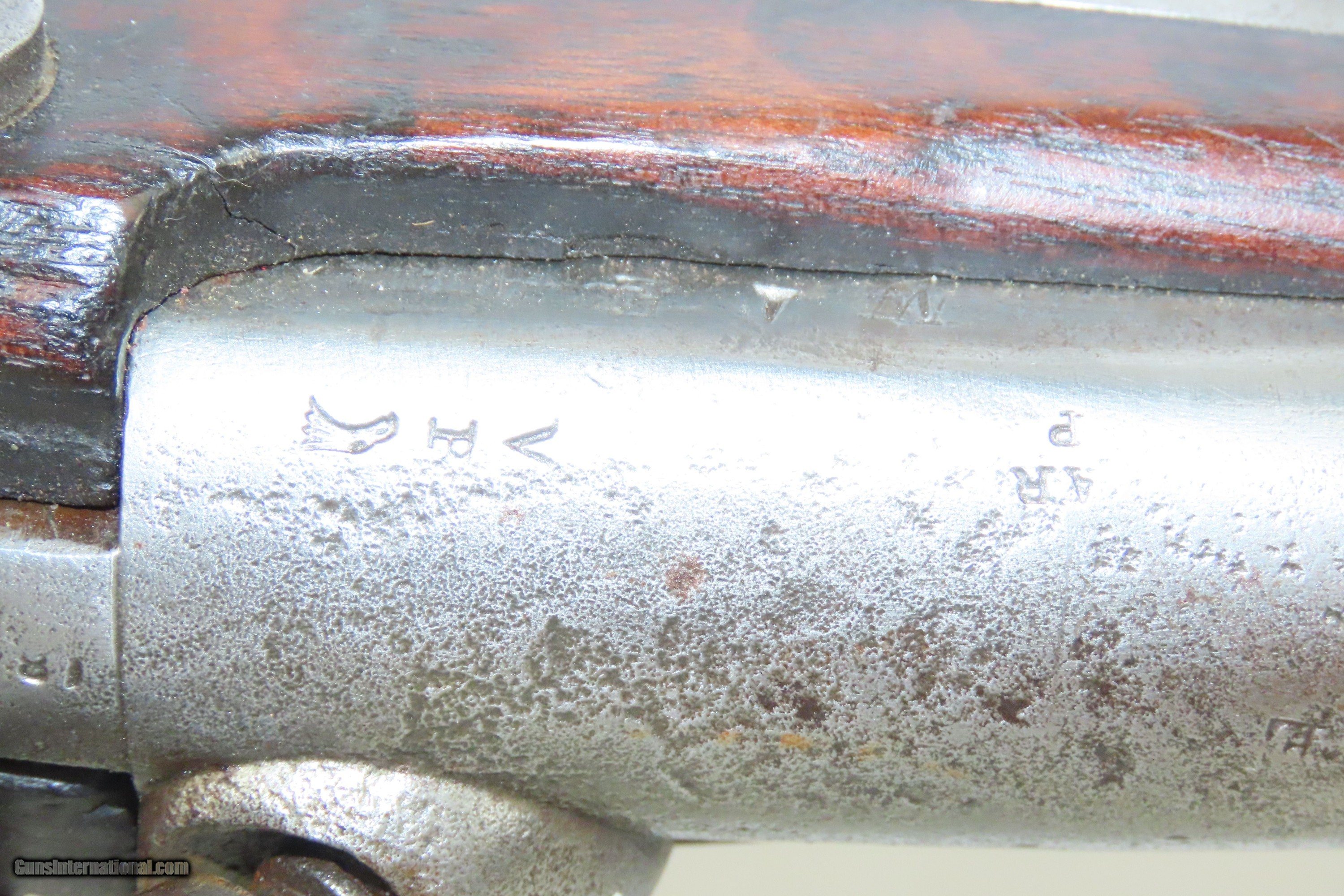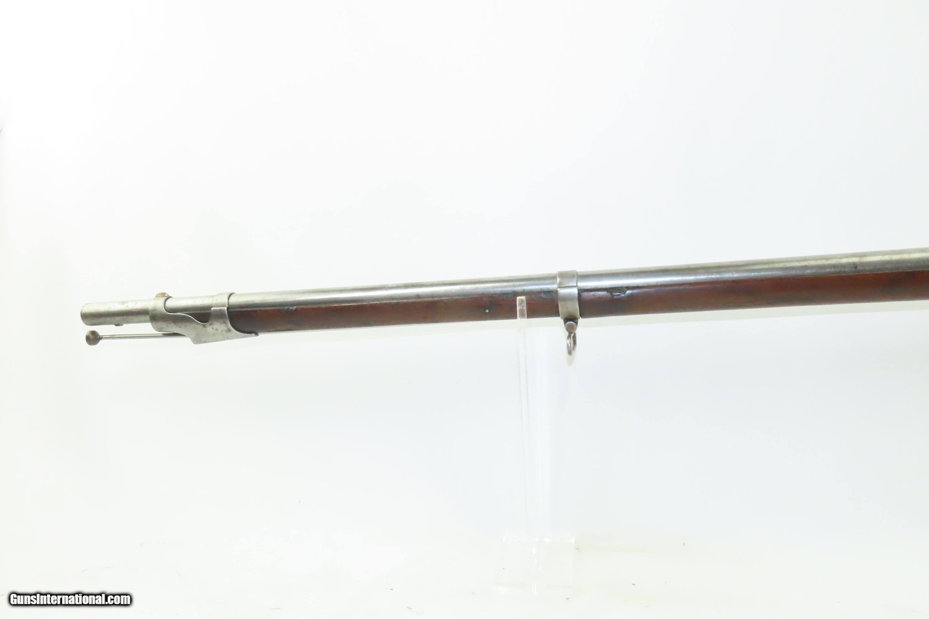 Description: MEXICAN-AMERICAN WAR Era Antique HARPERS FERRY U.S. M1842 Percussion MUSKET 1848 Dated and Used into the AMERICAN CIVIL WAR Here we present an antique Harpers Ferry U.S. Model 1842 Percussion Musket, manufactured circa 1848 in Harpers Ferry, Virginia. The Model 1842 was the first regulation percussion musket to be manufactured at both Springfield and Harpers Ferry Armories, as well as the first to be produced by both national armories with fully-interchangeable parts. These were also the last .69 caliber smoothbore arms to be produced by the U.S. government. Approximately 275,000 were manufactured between 1844 and 1855, with only one-third of these produced at Harpers Ferry. Along with usage during the Mexican-American War in 1846 through 1848, these would have been in the hands of local militia all over the antebellum United States and used by both combatants at the outbreak of the American Civil War. Both the original smoothbore version and the modified rifled version of the Model 1842 were used in the American Civil War. The smoothbore version was produced without sights (except for a cast one on the barrel band). When Model 1842 muskets were modified to have rifled barrels, sights were usually added at the same time as the rifling. The overall condition is good. The action is excellent. The bore is smooth and dim. The stock shows two faint cartouches, the numbers 15 and 42 have been stamped on the right side and 11 has been inscribed on the left. There is a very smooth graft repair from the back of the lock through the wrist and comb. Replacement ramrod. Own the original! This is a legitimate antique and not a reproduction. Barrel is 42 inches. Caliber: .69 Percussion Overall condition as seen in photos. Very Fast. Very Safe. FREE SHIPPING WORLDWIDE. Delivered directly to your door by express mail! Guaranteed AUTHENTIC & Includes CERTIFICATE OF AUTHENTICITY. ancestryguns $1600 #240126 SOLD Antique: Yes |