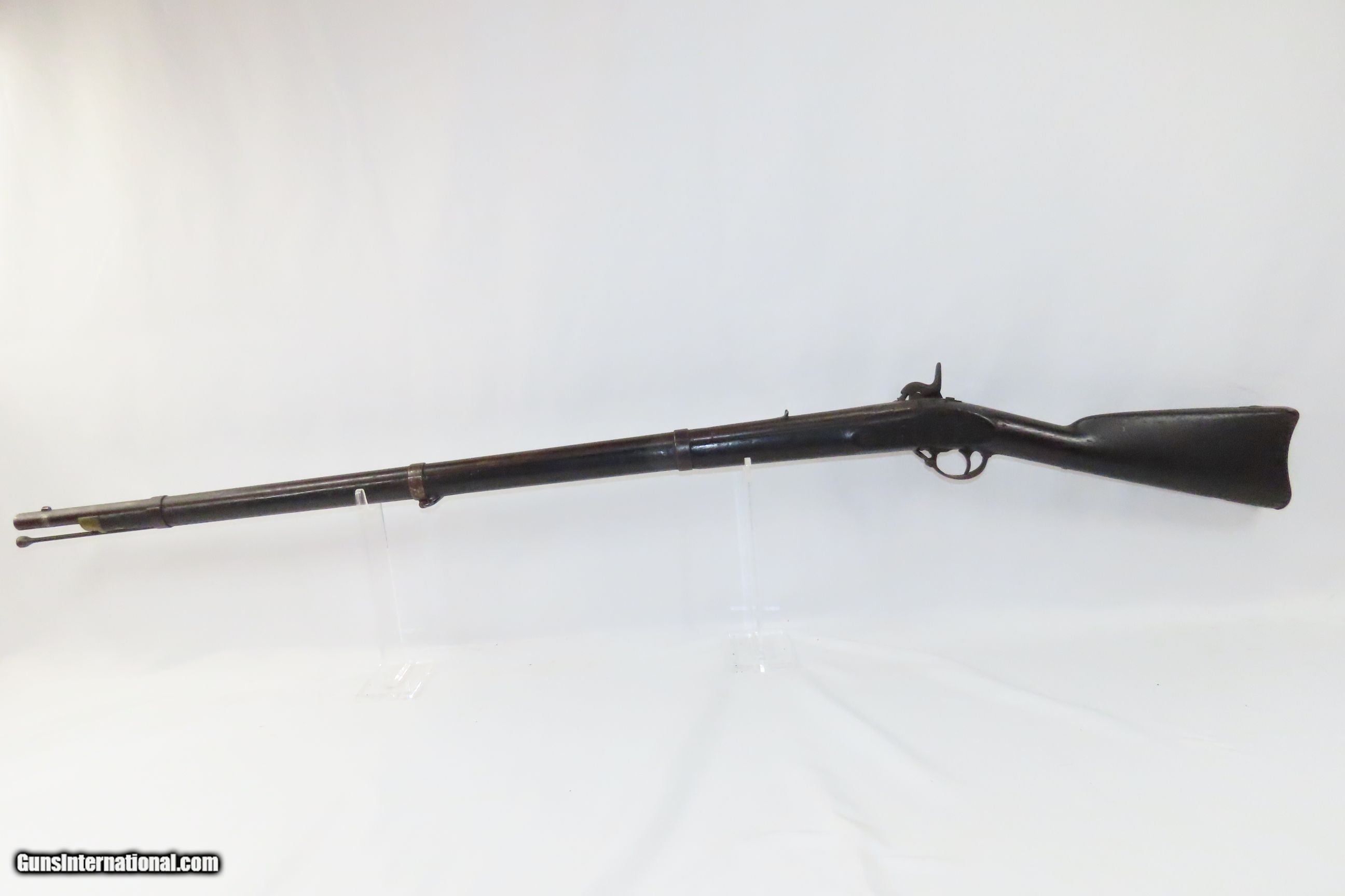 Description: Scarce CIVIL WAR Antique U.S. HARPERS FERRY ARSENAL Model 1855 Rifle-MUSKET Maynard Tape Primed Musket Dated 1859 Here we present an antique Harpers Ferry Armory U.S. Model 1855 Rifle-Musket, manufactured in 1859 in Harpers Ferry, Virginia. The Model 1855 was the first U.S. musket to utilize the .58 caliber Minie ball. The U.S. military was piloting a concept for all U.S. Army troops to have a common caliber, so that logistics would be simplified. The chosen caliber was .58, and it utilized the cutting-edge cone-shaped Minié ball with the hollow base instead of a spherical ball. Also, relatively new and short-lived was the Maynard tape priming system, to which Springfield had purchased the rights. Instead of directly priming the nipple by hand for each shot, the user would simply install a roll of paper percussion caps, and a single cap would be exposed, sheared and carried by the hammer to detonate on the nipple. Of course, the standard rifle percussion caps could also be used. This system was simply abandoned with the beginning of the American Civil War as arms production was driven by effectiveness and efficiency, resulting in the simplified Model 1861. Harpers Ferry Armory was burned by Confederate forces in 1861. Many of the Model 1855 rifles were destroyed in the Armory fire and nearly all of the surviving rifles saw hard use with Federal and Confederate armies during the Civil War, and as a result any surviving examples of the Model 1855 Rifle are scarce and typically show the effects of hard field service. The overall condition is good. Dark patina throughout. Strong action. The bore is in good shape for its age with strong rifling. Solid walnut stock throughout with cartouche remnants on the left flat. “1859” dated lock. This one lost its original sight and rather than replacing it with the same part a simple buckhorn rear was brazed on during the period, indicating Confederate use. A fantastic example! Own the original! This is a legitimate antique and not a reproduction. Barrel is 40 inches. Caliber: .58 Percussion Overall condition as seen in photos. Very Fast. Very Safe. FREE SHIPPING WORLDWIDE. Delivered directly to your door by express mail! Guaranteed AUTHENTIC & Includes CERTIFICATE OF AUTHENTICITY. ancestryguns $2900 #228225 SOLD Antique: Yes |