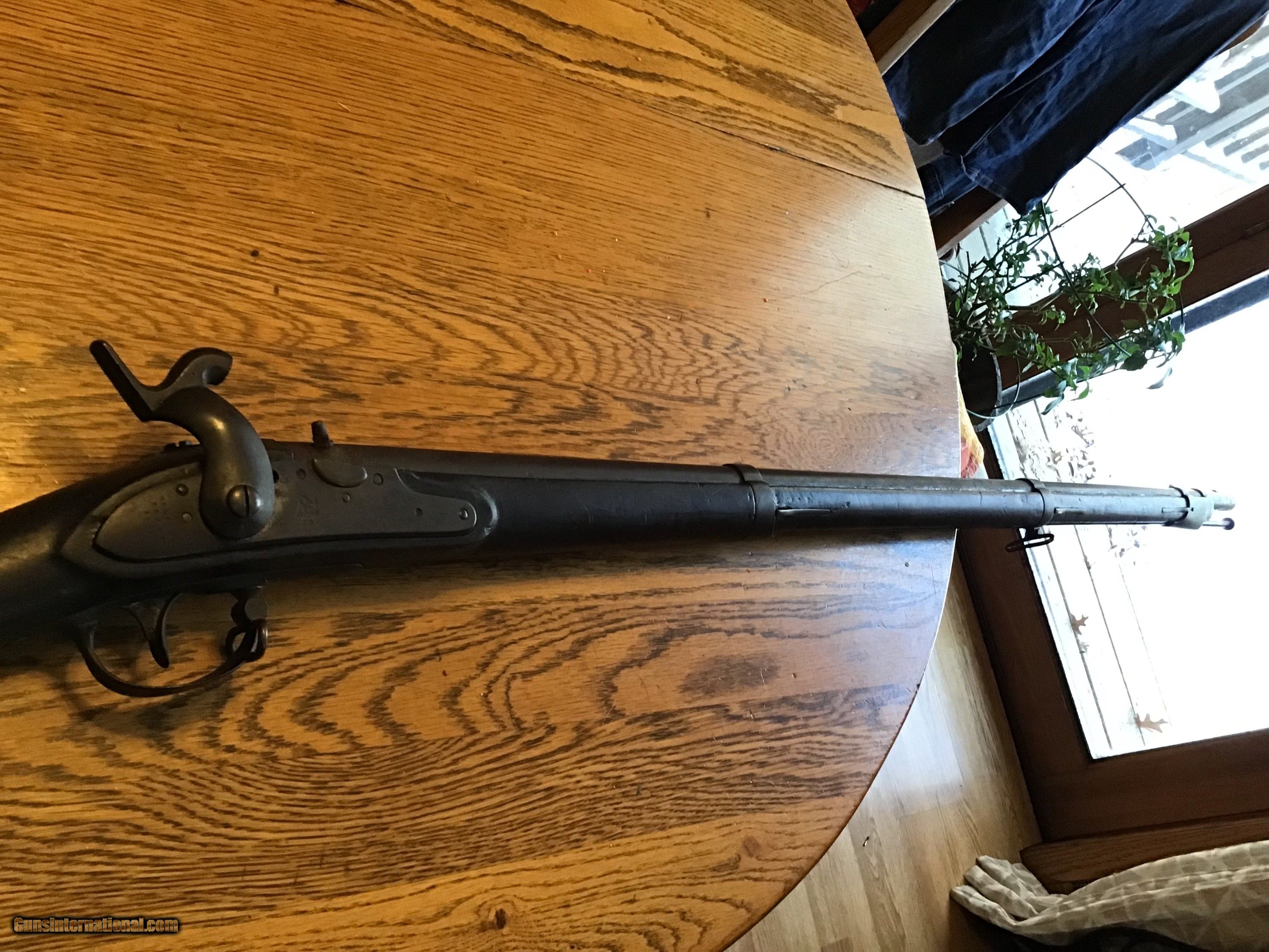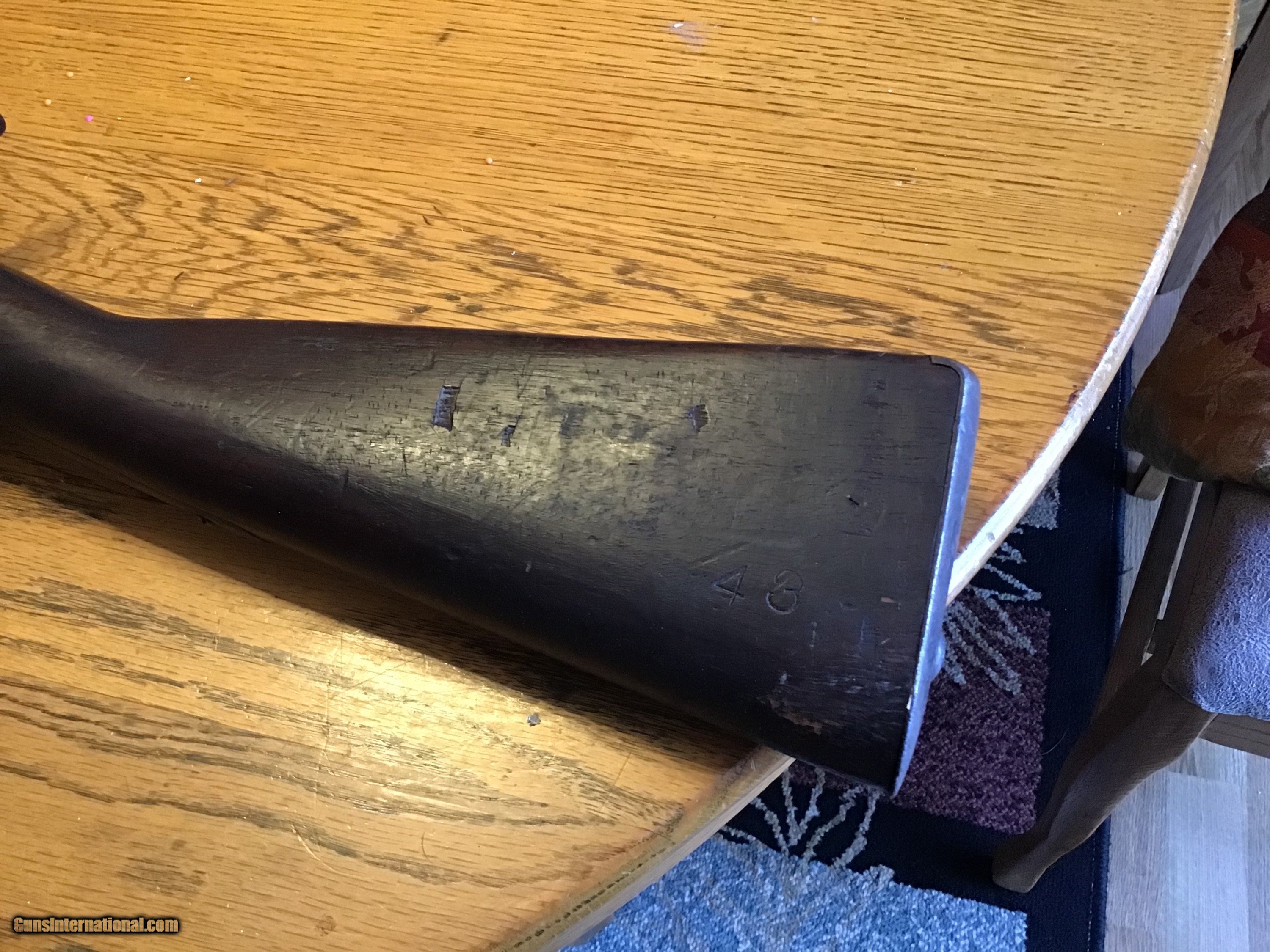 Description: US Model 1816 formerly flintlock 69 caliber Harpers Ferry musket dated 1840 and converted to percussion circa 1850. This musket is in as made configuration other than having been converted to percussion and is complete with sling swivels and original ramrod. The functioning lock is marked US Harpers Ferry with the American eagle and dated 1840. The full length smooth bore 69 caliber barrel is dated 1840 is dark brown patina with some pitting near the breach. The full 3 band dark walnut stock is in good condition with a rack number 43 on the left cheek. A good historic civil war era musket. Please feel free to contact me with any questions. Shipping will be actual cost by by usps insured mail with tracking. SOLD Antique: Yes |