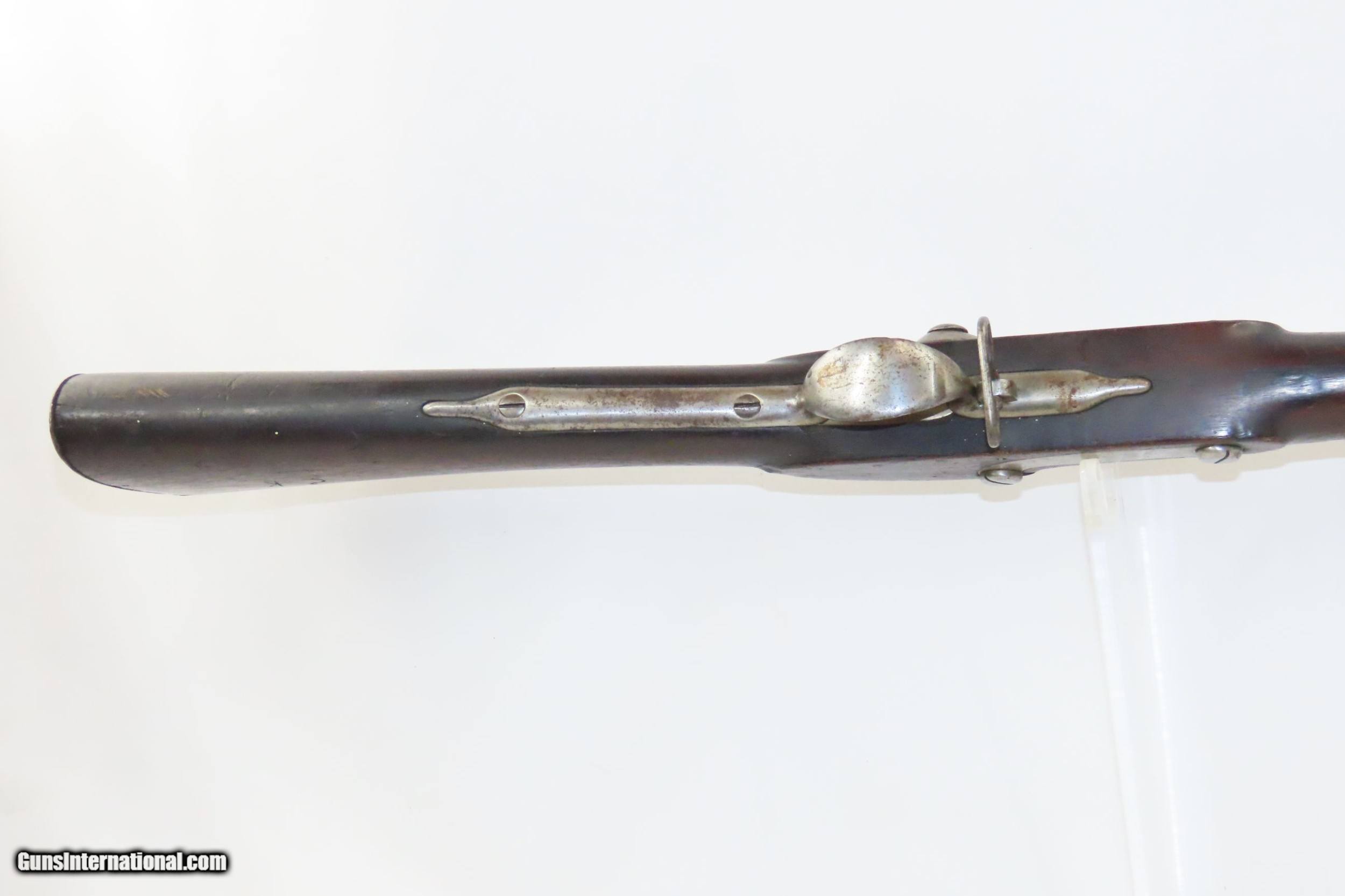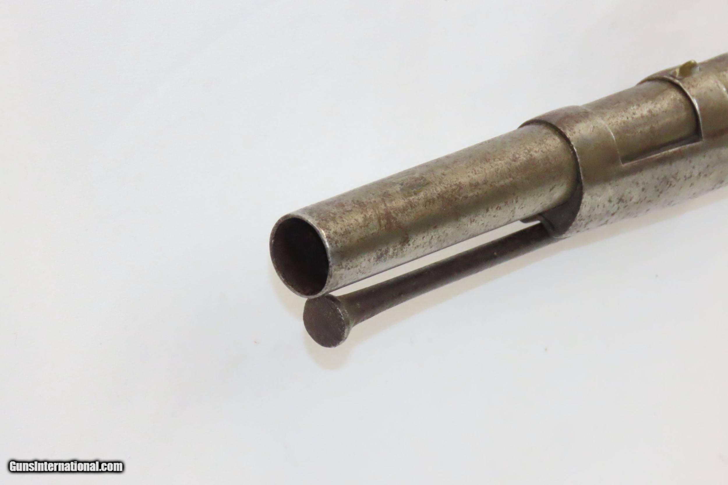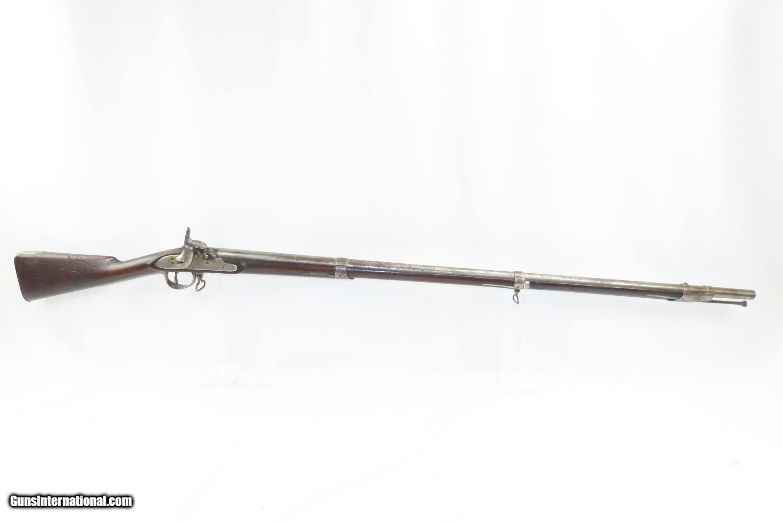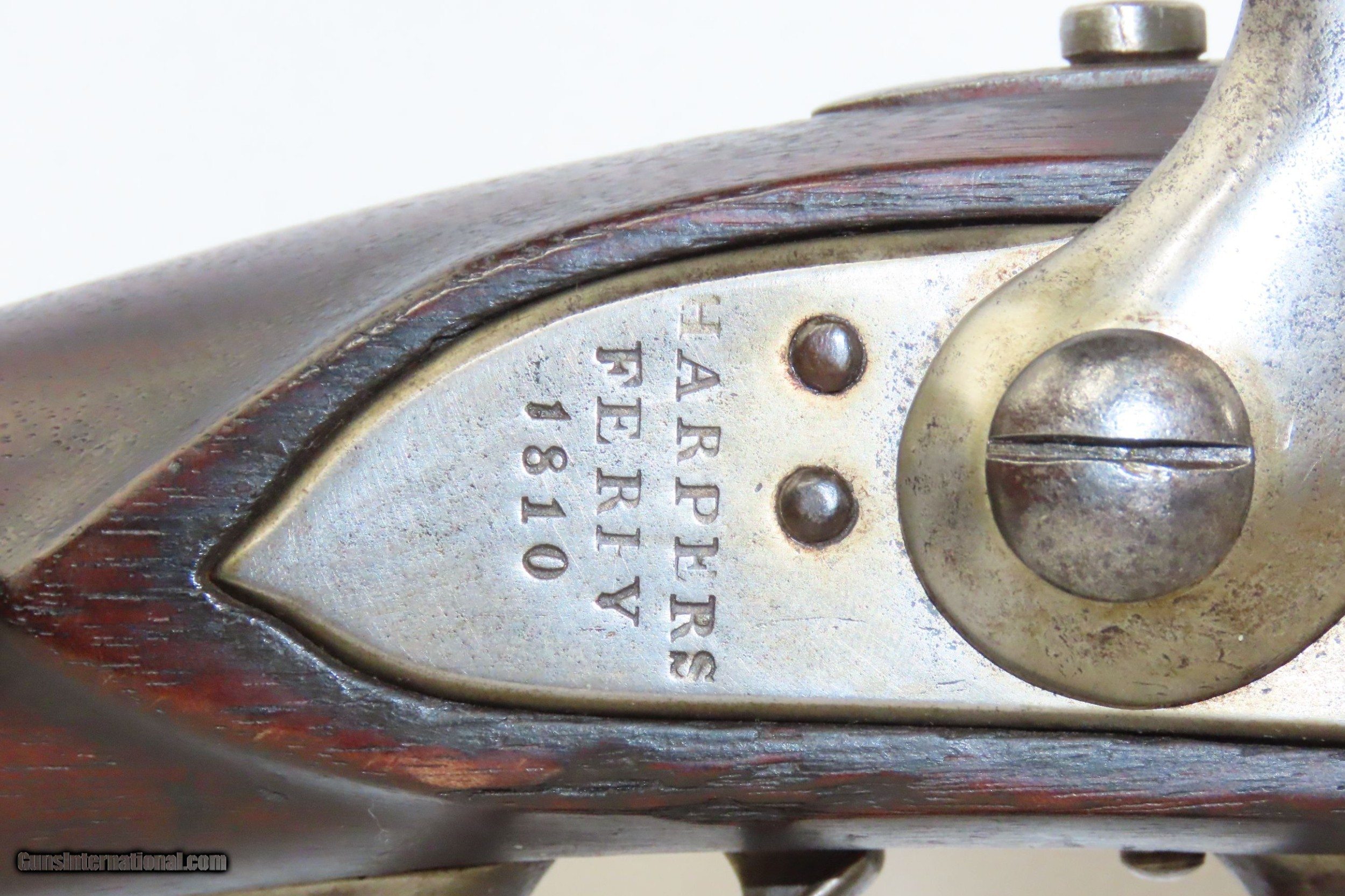 Description: WAR of 1812 Antique U.S. HARPERS FERRY ARMORY Model 1795 Conversion MUSKET 1810 Dated with LEMAN ALTERATION Here we present an antique U.S. Springfield Model 1795 Percussion Conversion Musket, manufactured circa 1810 at the Harpers Ferry Armory in Harpers Ferry, Virginia. The Model 1795 was a smooth bore, flintlock based musket and the first weapon system to be produced within the United States. It was designed very closely patterning the French “Charleville” Flintlock Musket that was used to by the colonists against the British during the American Revolutionary War. Muskets made at Harpers Ferry proceeded along with their own evolutional development and were different from those longarms made at the Springfield Armory. This example received the Leman Alteration process of cutting the breech and screwing in a new breech with tang, nipple, and bolster with a clean out screw. Leman altered a total of 7,993 longarms for the Federal Government and an additional 17,574 muskets and 3,826 rifles for the State of Pennsylvania. Springfield Armory produced 80,000 of these muskets, with Harpers Ferry responsible for another 70,000. Production of this musket ran from 1795 through 1818. It wasn’t until the Model 1816 that Springfield and Harpers Ferry made muskets that had interchangeable parts. The Model 1795 found her way into some several important American conflicts of the time, including the War of 1812 between the United States and the British Empire, the Mexican-American War, and even the Civil War. The 1795 would also be taken along by members of the American expedition led by Lewis and Clark from 1803 to 1806. Use of the 1795 was recorded as late as 1865 for the southern Confederate forces who were still fielding her late in the Civil War. The overall condition is very good. Strong action. The bore is in good shape, remains clear and is nicely rifled. Solid stock with expected wear (minor dents and dings). The right side of the buttstock contains interesting hand carved designs and some initials. “1810” dated lock. Own the original! This is a legitimate antique and not a reproduction. Barrel is 43-5/8 inches. Caliber: .69 Percussion Overall condition as seen in photos. Very Fast. Very Safe. FREE SHIPPING WORLDWIDE. Delivered directly to your door by express mail! Guaranteed AUTHENTIC & Includes CERTIFICATE OF AUTHENTICITY. ancestryguns $2895 #217310 SOLD Antique: Yes |