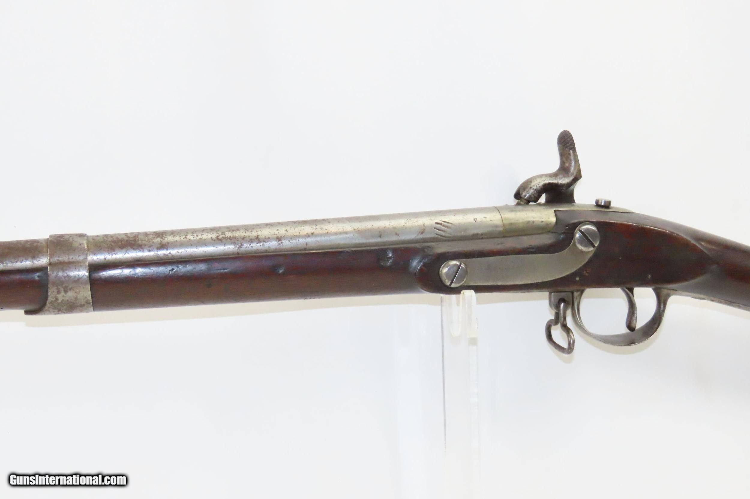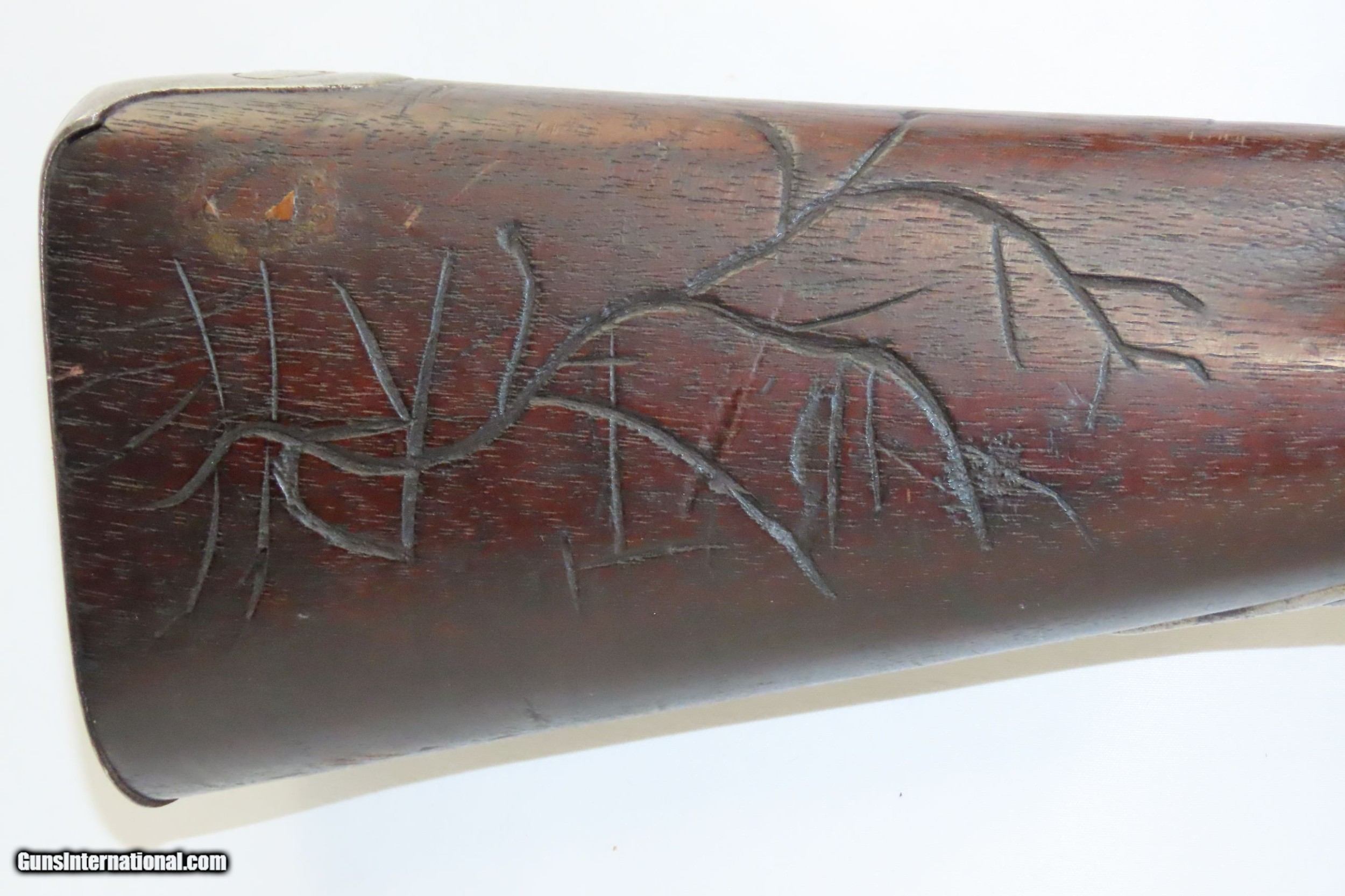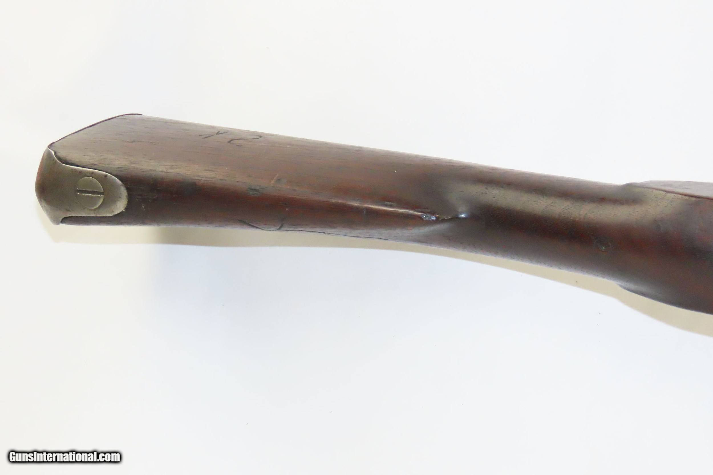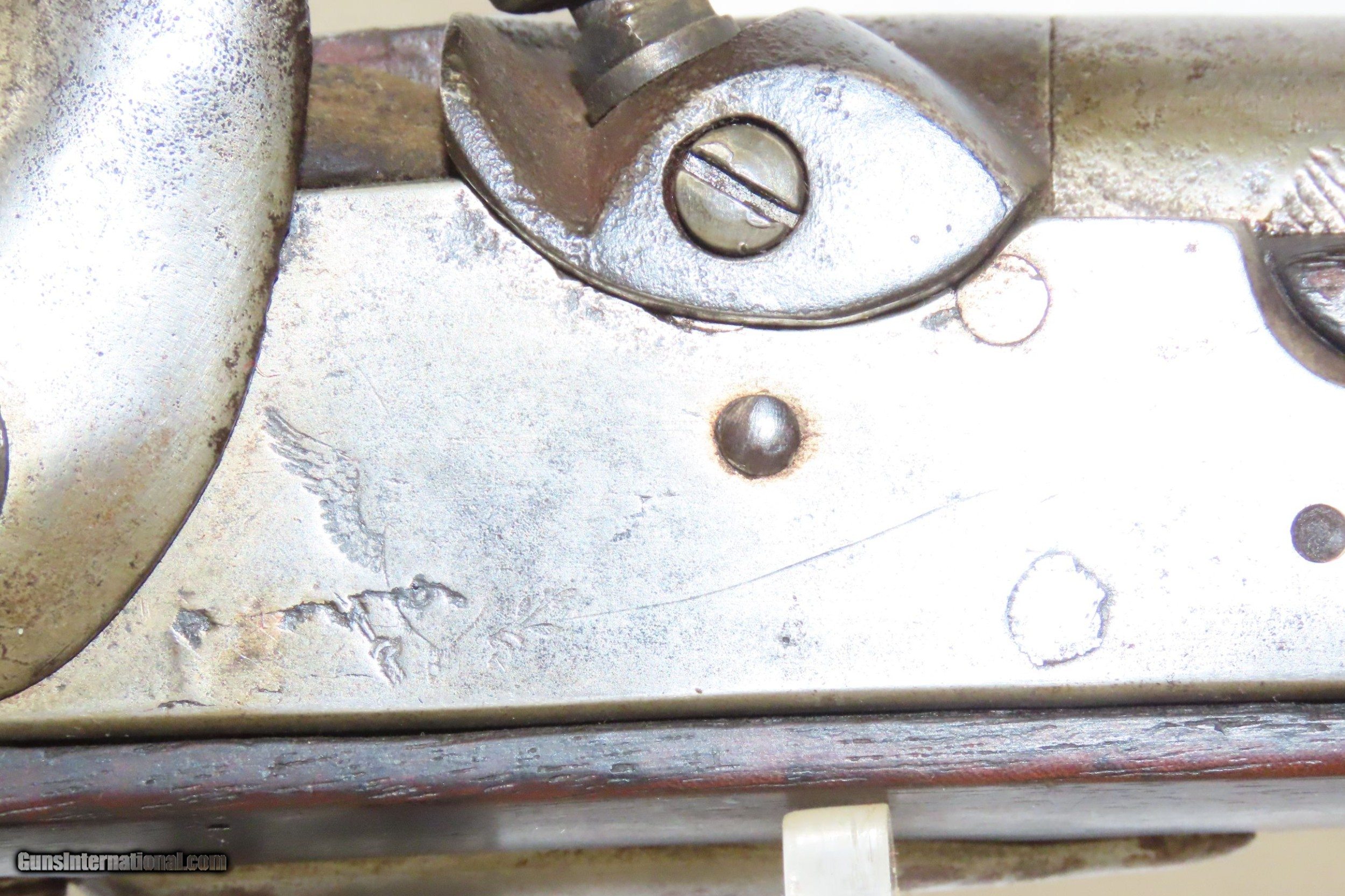 Description: WAR of 1812 Antique U.S. HARPERS FERRY ARMORY Model 1795 Conversion MUSKET 1810 Dated with LEMAN ALTERATION Here we present an antique U.S. Springfield Model 1795 Percussion Conversion Musket, manufactured circa 1810 at the Harpers Ferry Armory in Harpers Ferry, Virginia. The Model 1795 was a smooth bore, flintlock based musket and the first weapon system to be produced within the United States. It was designed very closely patterning the French “Charleville” Flintlock Musket that was used to by the colonists against the British during the American Revolutionary War. Muskets made at Harpers Ferry proceeded along with their own evolutional development and were different from those longarms made at the Springfield Armory. This example received the Leman Alteration process of cutting the breech and screwing in a new breech with tang, nipple, and bolster with a clean out screw. Leman altered a total of 7,993 longarms for the Federal Government and an additional 17,574 muskets and 3,826 rifles for the State of Pennsylvania. Springfield Armory produced 80,000 of these muskets, with Harpers Ferry responsible for another 70,000. Production of this musket ran from 1795 through 1818. It wasn’t until the Model 1816 that Springfield and Harpers Ferry made muskets that had interchangeable parts. The Model 1795 found her way into some several important American conflicts of the time, including the War of 1812 between the United States and the British Empire, the Mexican-American War, and even the Civil War. The 1795 would also be taken along by members of the American expedition led by Lewis and Clark from 1803 to 1806. Use of the 1795 was recorded as late as 1865 for the southern Confederate forces who were still fielding her late in the Civil War. The overall condition is very good. Strong action. The bore is in good shape, remains clear and is nicely rifled. Solid stock with expected wear (minor dents and dings). The right side of the buttstock contains interesting hand carved designs and some initials. “1810” dated lock. Own the original! This is a legitimate antique and not a reproduction. Barrel is 43-5/8 inches. Caliber: .69 Percussion Overall condition as seen in photos. Very Fast. Very Safe. FREE SHIPPING WORLDWIDE. Delivered directly to your door by express mail! Guaranteed AUTHENTIC & Includes CERTIFICATE OF AUTHENTICITY. ancestryguns $2895 #217310 SOLD Antique: Yes |