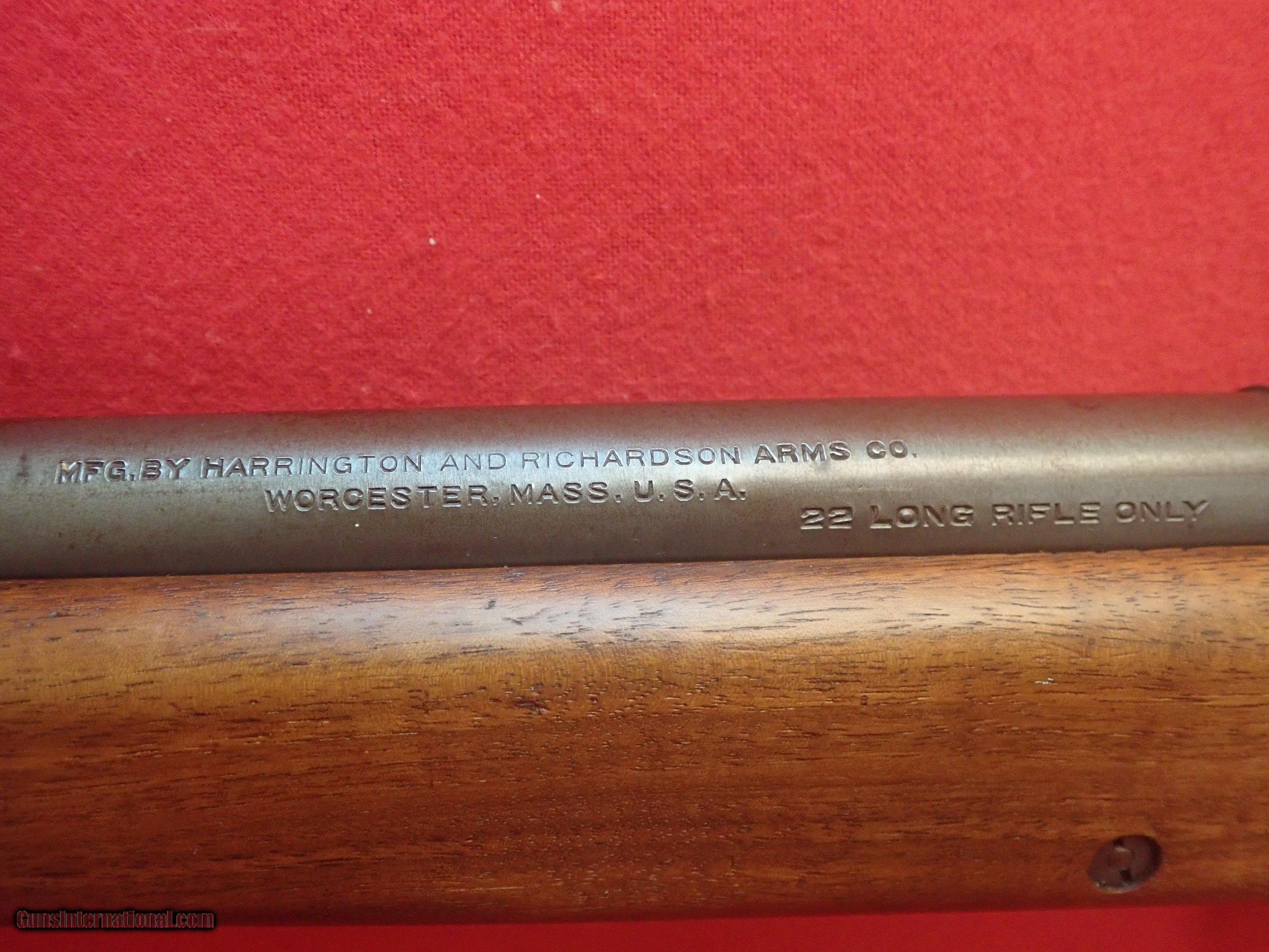 Description: **SOLD**Harrington & Richardson Model 65 Reising semi automatic .22LR rifle. This rifle was manufactured between 1944 and 1956, as a trainer for the US Military. The rifle was designed to emulate the weight and feel of an M1 Garand, and the Redfield rear sight with M1 style front sight simulated the sight picture of an M1. The rifle has a unique semi automatic operation with a charging rod located through a cutout in the underside of the stock. The receiver is fitted with a safety lever and a manual bolt hold-open. The rifle itself is in excellent working order, and worked perfectly for a short test-firing. Please refer to the photos to further assess the condition of the rifle. A wonderful example of an increasingly rare military training rifle! Don't miss out! **SOLD** SOLD Curio/Relic: Yes Manufacturer: Harrington & Richardson Model: Model 65 Reising Serial Number: 3266 Caliber Info: .22LR |