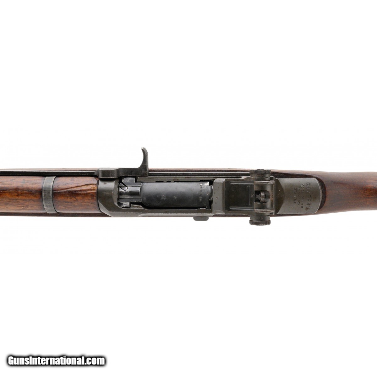Description: " SN: 5692710. Made in 1955 with a 24-inch barrel chambered for the .30-06 cartridge. This post-Korean War H&R Garand is equipped with an H&R barrel with a bright bore that was made in October 1955, an H&R bolt, the T105E1 fully adjustable rear sight assembly, a milled Springfield Armory trigger guard & a radius cut Springfield operating rod. The buttstock is post-war USGI with a National Defense acceptance cartouche on the left side just above the trigger & a circle serif P on the pistol grip. The front & rear handguards are matching in color & quality in so far as they exhibit the dents, dings & scratches consistent with military service. Austin Location SOLD Curio/Relic: Yes |
