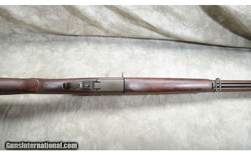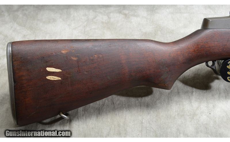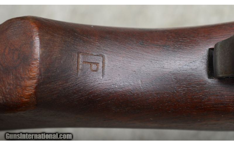 Description: Nice Garand with good wood. "P" cartouche is clear and all the metal stamps are sharp. Good clean barrel and in good shape. There is a bit of paint on the stock, presumably a "rack" mark. .30-06 Springfield SOLD Curio/Relic: Yes Chambers: 8 Metal Condition: Very good. Wood Condition: Very good. Bore Condition: Bright and shiny. Barrels: 24-inch Triggers: Factory trigger. Stock Dimensions: 13 -inch LOP. Fore End: Full-length walnut with walnut heat shield. Butt Pad: Steel plate with storage. Weight: 9 lb -13 oz Sights: Military post and peep Item Location: Rogers |