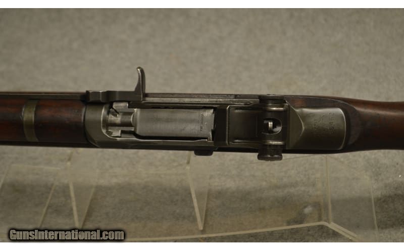 Description: For your consideration is a Harrington & Richardson M1 Garand chambered in .30-06. This rifle features a 5-55 dated HRA barrel with a bright very good plus bore with a patch of pinprick pitting nearer the muzzle but strong rifling throughout. The metal surfaces retain about 85% original Parkerized finish with light wear on high edges and contact points, The pistolgrip walnut stock is in about very good condition with scattered light dings and handling marks, many softened through years of handling, an impact mark on the right side of the forward handguard, a lightly flexing crack nearly through the middle of the rear handguard, and a lightly tack and glue repaired 2" triangular chip on the toe line, ahead of the lower sling loop. .30-06 Springfield SOLD Metal Condition: Very Good Wood Condition: Good Bore Condition: Very Good Barrels: 24 inch Weight: 9lbs Item Location: Berlin |