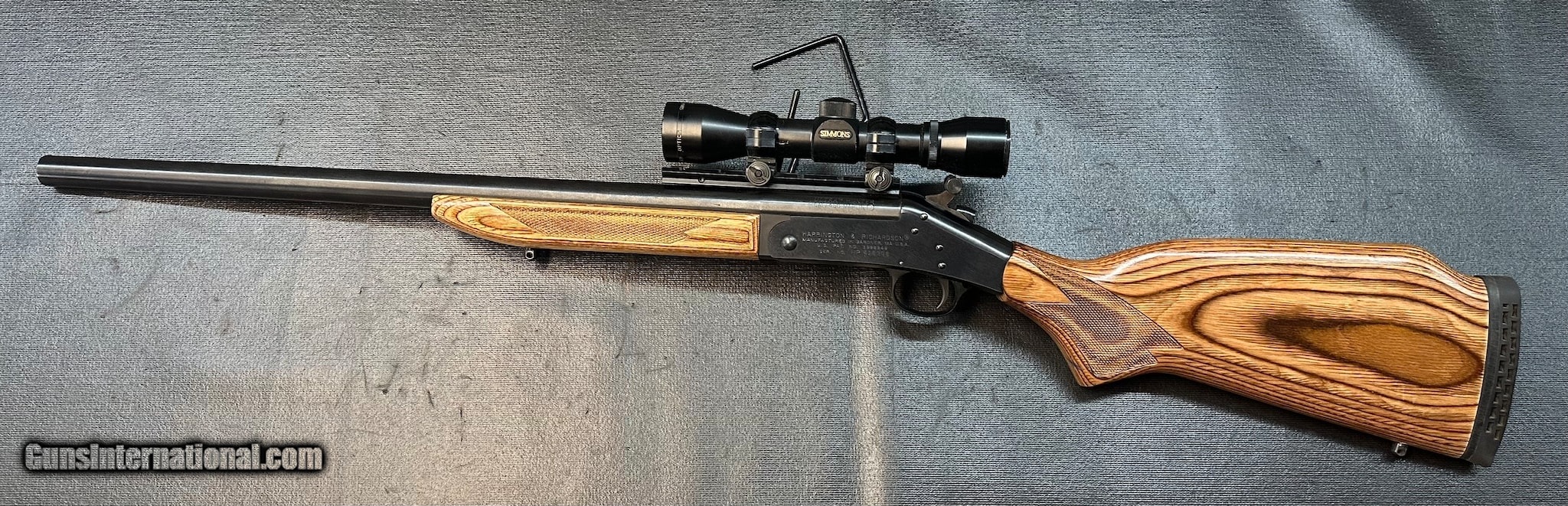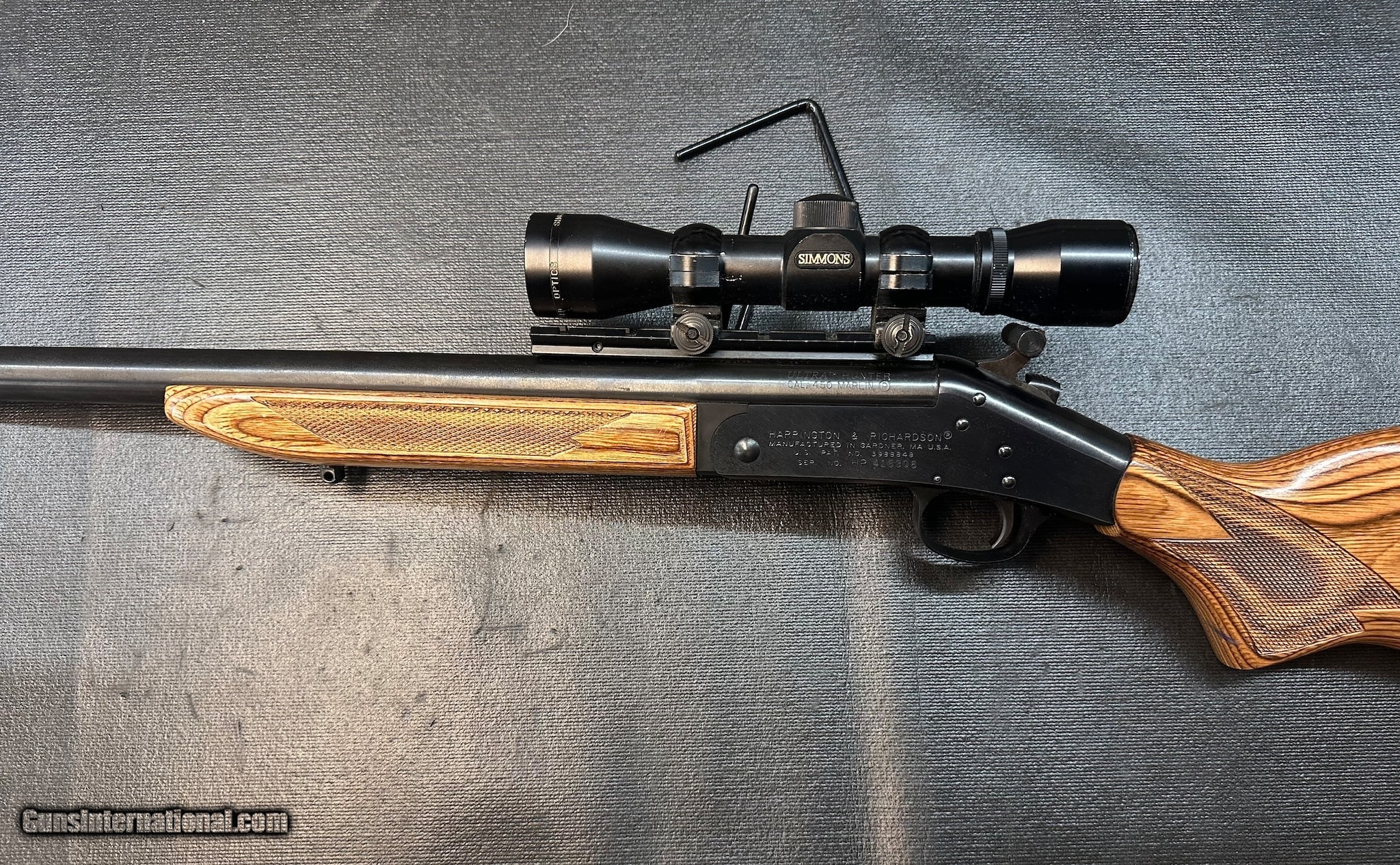 Description: Guns Listing ID: 1124196 Harrington & Richardson Ultra Hunter Single-Shot Rifle with a 22\" Barrel chambered in .450 Marlin. FEATURES: Nice Wood Stock with Strong Checkering Front & Rear Sling Swivel Studs 22\" Heavy Blued Barrel Blued Receiver Single-Shot Break Open Action with Ejector Rubber Recoil Pad Weight is 9.6 lbs. OAL is 37 3/8\"\" LOP is 14 3/8\" Includes Scope Rail with a Mounted Simmons Dot Optic Does not include manual or box This rifle shows in Excellent condition with just a few light handling marks & a few light scratches overall - all consistent with light / normal use. Simmons Optic shows light scratches overall. Bore is clean and shiny - please see photos for more details. H&R 1871, Inc. was formed in 1991 and manufactured double action revolvers and break-open rifles and shotguns of basic H&R design. Revolver production ceased in 1999. In 2000 Marlin purchased H&R 1871, also acquiring the New England Firearms and Wesson & Harrington trademarks. Whether marked H&R or NEF, these rifles come out of the same factory in Gardner, Massachusetts and are functionally identical. The Harrington & Richardson name, of course, is better known to the older generation of shooters and is used for the company‚‚s top lines of rifles. These are the Ultra Rifle, Buffalo Classic and similar Target Model. H&R Ultra, Buffalo Classic and Target Model rifles are priced higher than the company‚‚s NEF brand rifles, but they are still among the less expensive centerfire rifles on the market. Their moderate price naturally appeals to anyone shopping for a single shot rifle on a budget. They generally resemble the single barreled, break-action shotguns with which many bird and small game hunters got their start and are, in fact, based on the same basic action as the H&R single barreled shotguns. This is a simple action with an exposed hammer that must be cocked before every shot. A new transfer bar system to help prevent accidental discharges has replaced the traditional rebounding hammer. The H&R action is opened by depressing a metal tab (button) located to the right of the hammer, rather than by the more traditional pivoted thumb lever located behind the hammer. The advantage of this location is that it keeps the opening lever away from theof the shooting hand when firing cartridges that generate substantial recoi SOLD Manufacturer: H&R Model: 1871 ULTRA HUNTER Condition: Used - Non-Certified Barrels: 22 BARREL Gauge Info: .450 MARLIN Finish: BLUED |