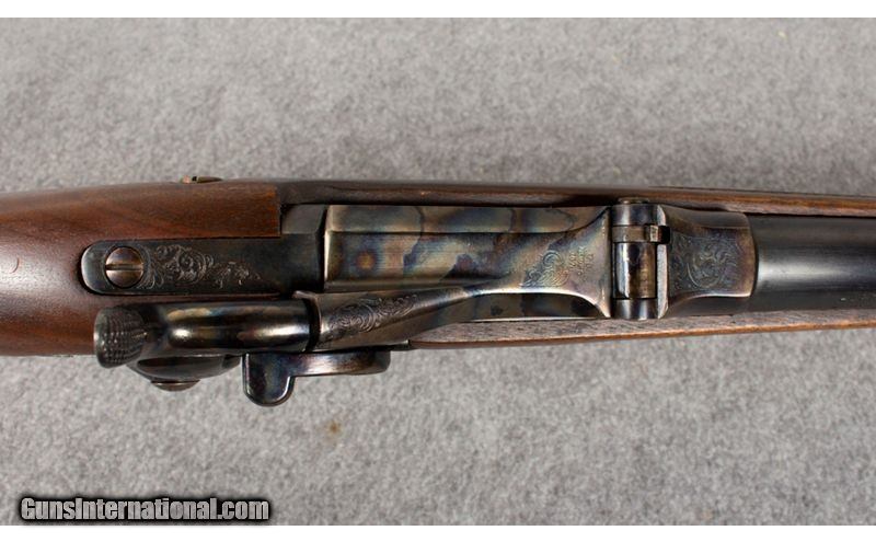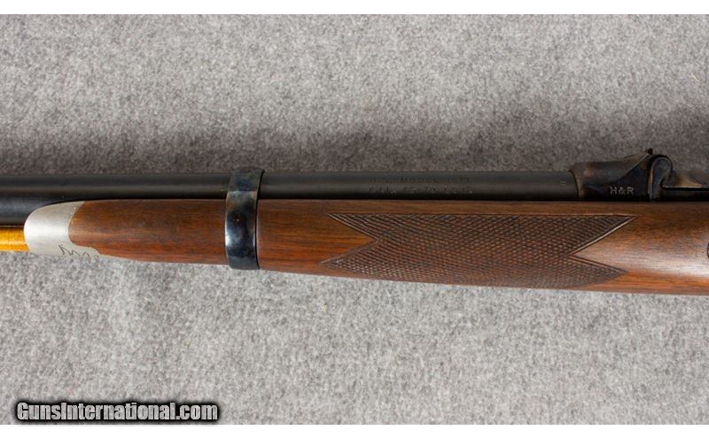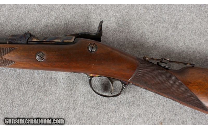 Description: Harrington and Richards remake of the well-known Springfield .45-70 Govt trapdoor. The receiver, lock and buttplate are all color case-hardened making this a very attractive rifle. The stock is a nice walnut with checkered fore end and straight grip. .45-70 Government SOLD Metal Condition: Excellent Wood Condition: Excellent Bore Condition: Excellent Barrels: 29 Stock Dimensions: LOP 13.25 Fore End: Checkered hardwood Butt Pad: Color Case-Hardened steel crescent shaped Weight: 7.5 lbs Sights: Tang sight with a front blade Item Location: East Hartford, CT |