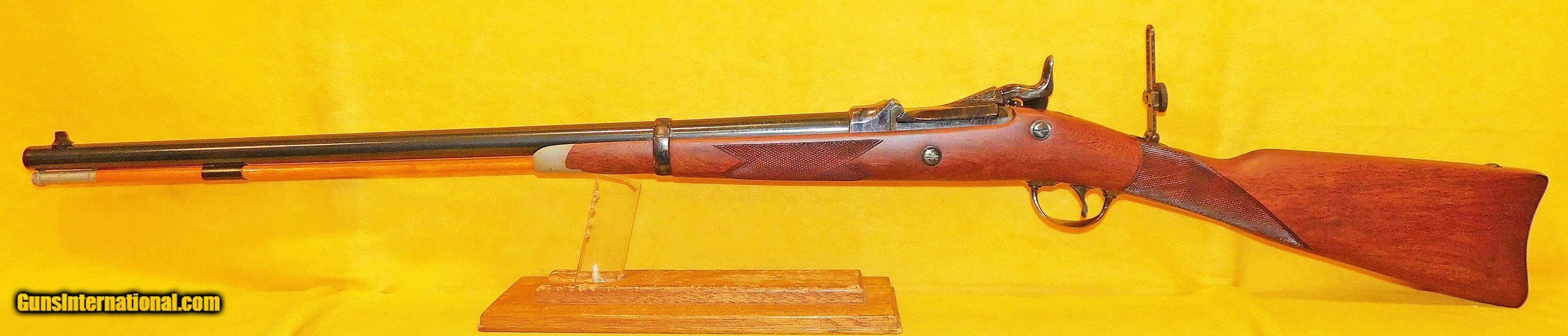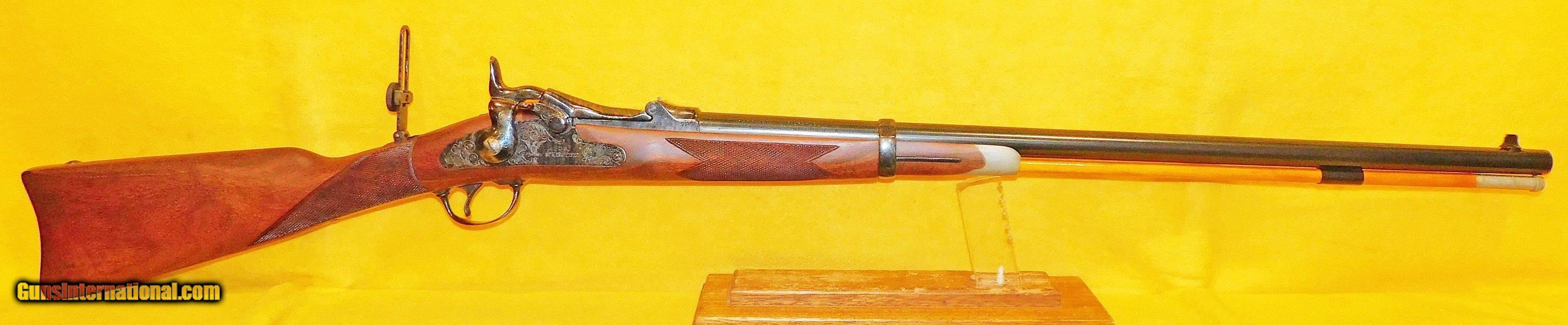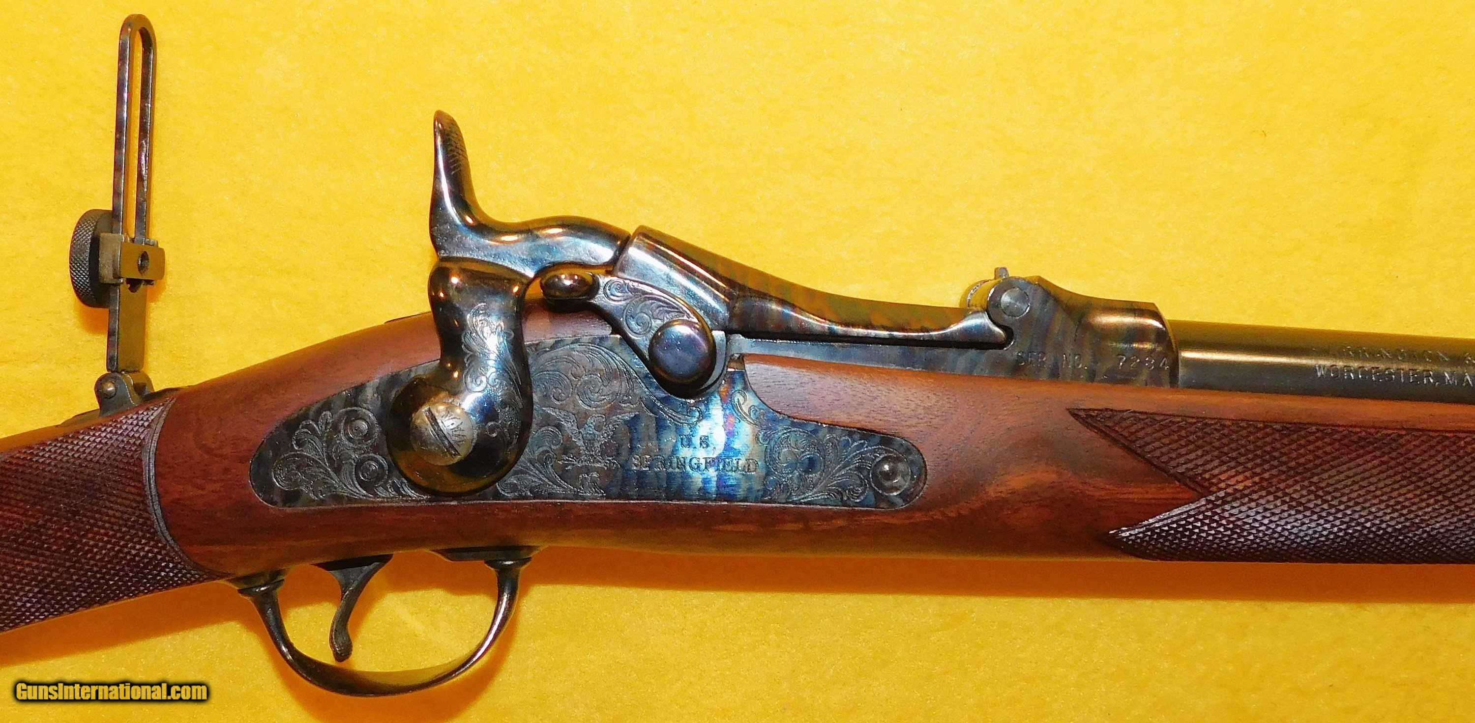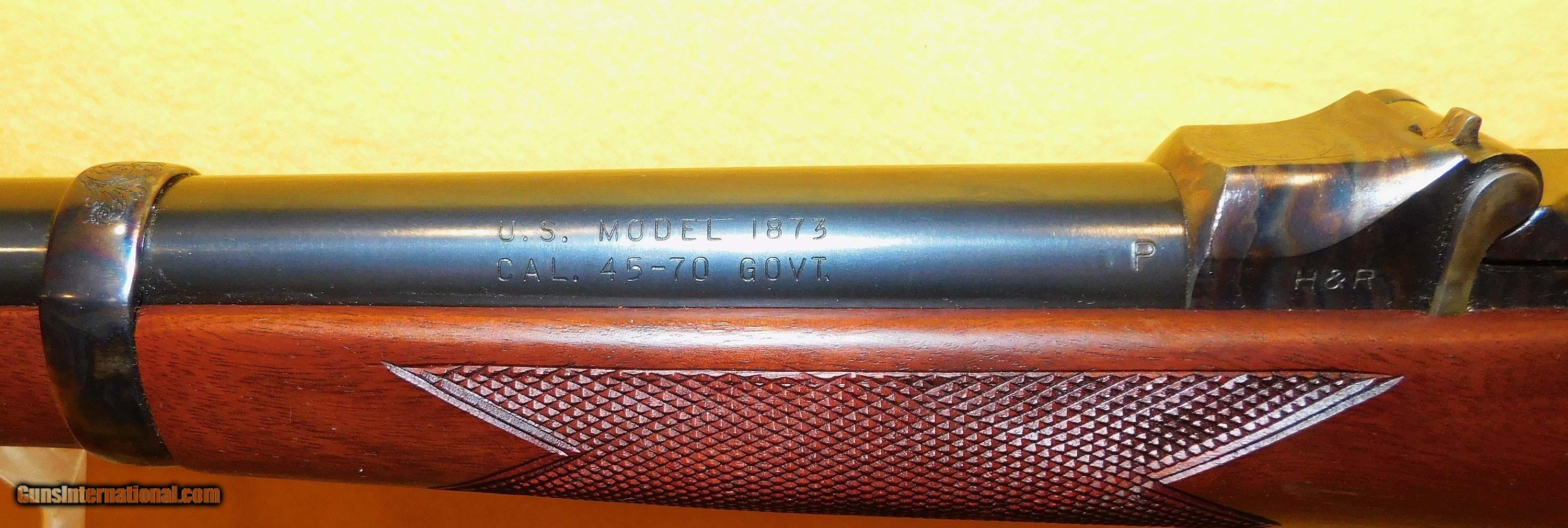 Description: H&R 1883 IN .45-70 GOV. CAL., WITH 26" BARREL. COLOR BLUE. CONDITION 98%. SERIAL NUMBER 7284. H&R MODEL 1883 OFFICERS (TRAP DOOR SPRINGFIELD) IN .45/70 GOVERNMENT CALIBER, MICROMETER REAR PEEP SIGHT, DELUXE WALNUT STOCK EXCELLENT, BELIEVE THIS TO BE UNFIRED, 98% OVERALL CONDITION, OUR STOCK # D4564 SOLD |