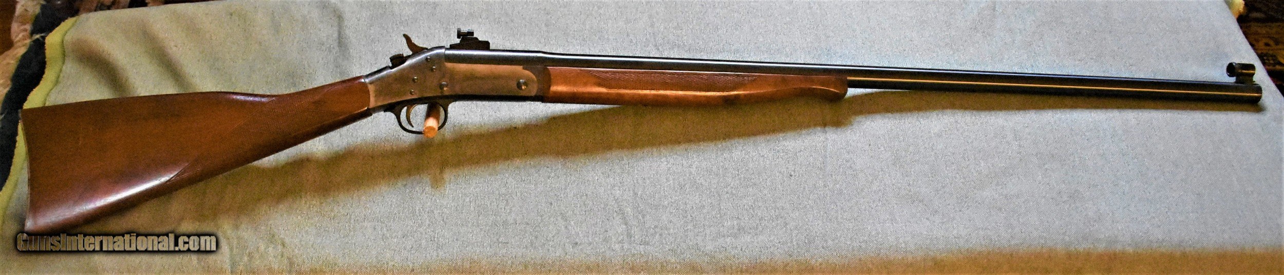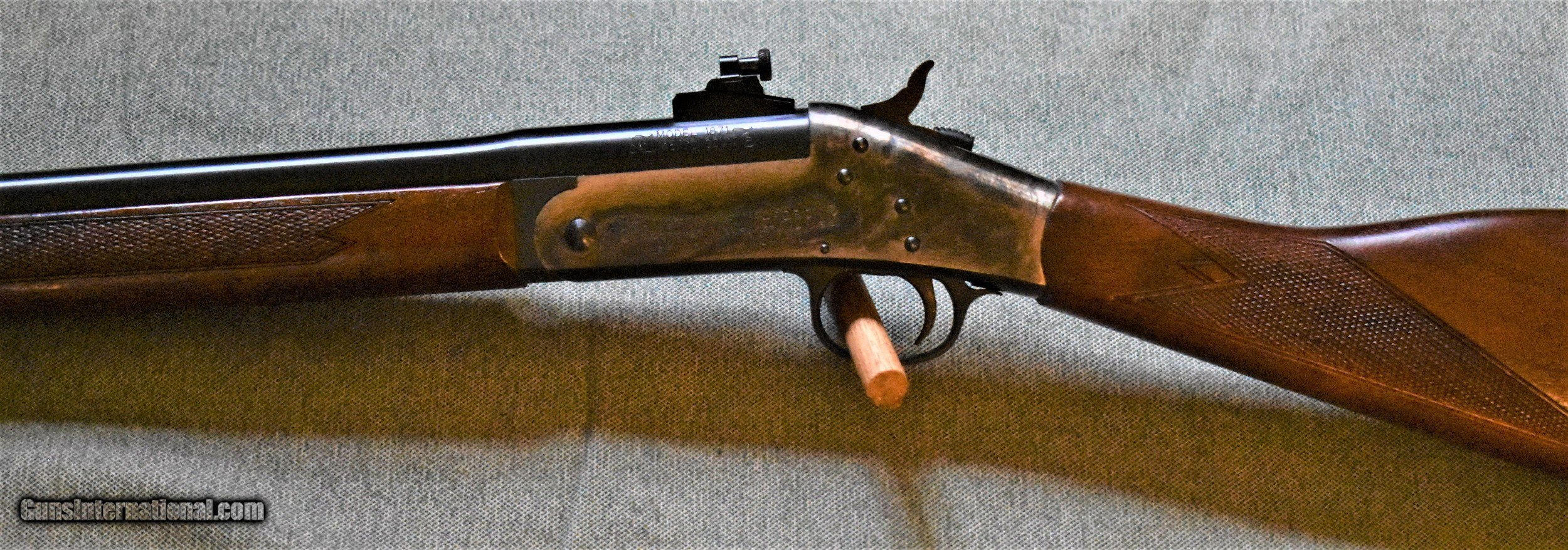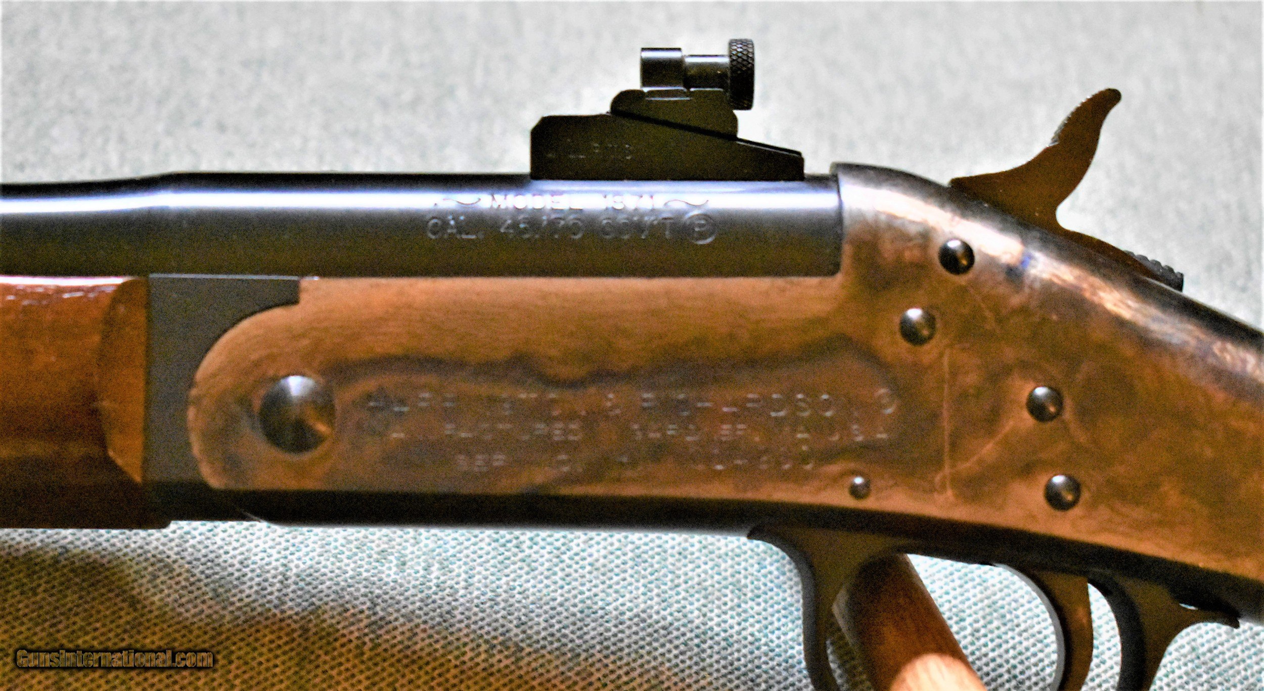 Description: Harrington and Richardson 45-70 Buffalo Classic single shot rifle. Built as a limited production rifle,this rifle has a 32"barrel with Williams rear peep sight and a globe front sight. The stock and forend are checkered and the stock has a case colored crescent steel buttplate. The rifle is in as new condition retaining 100% of the case color,blue,and wood finish. A great rifle for the former shotgun only states that now allow straight case rifles. SOLD Rifle Caliber: .45-70 Government Manufacturer: Harrington and Richardson Model: Buffalo Classic Serial Number: HW314900 Barrel Length: 32 Condition: mint Metal Condition: mint Wood Condition: mint Bore Condition: mint Action: Single Shot Butt Pad: Steel Butt |