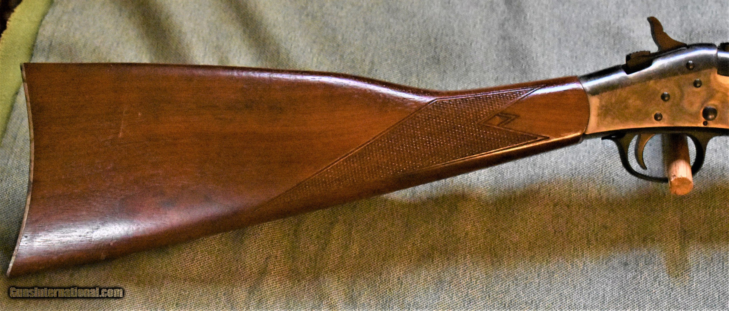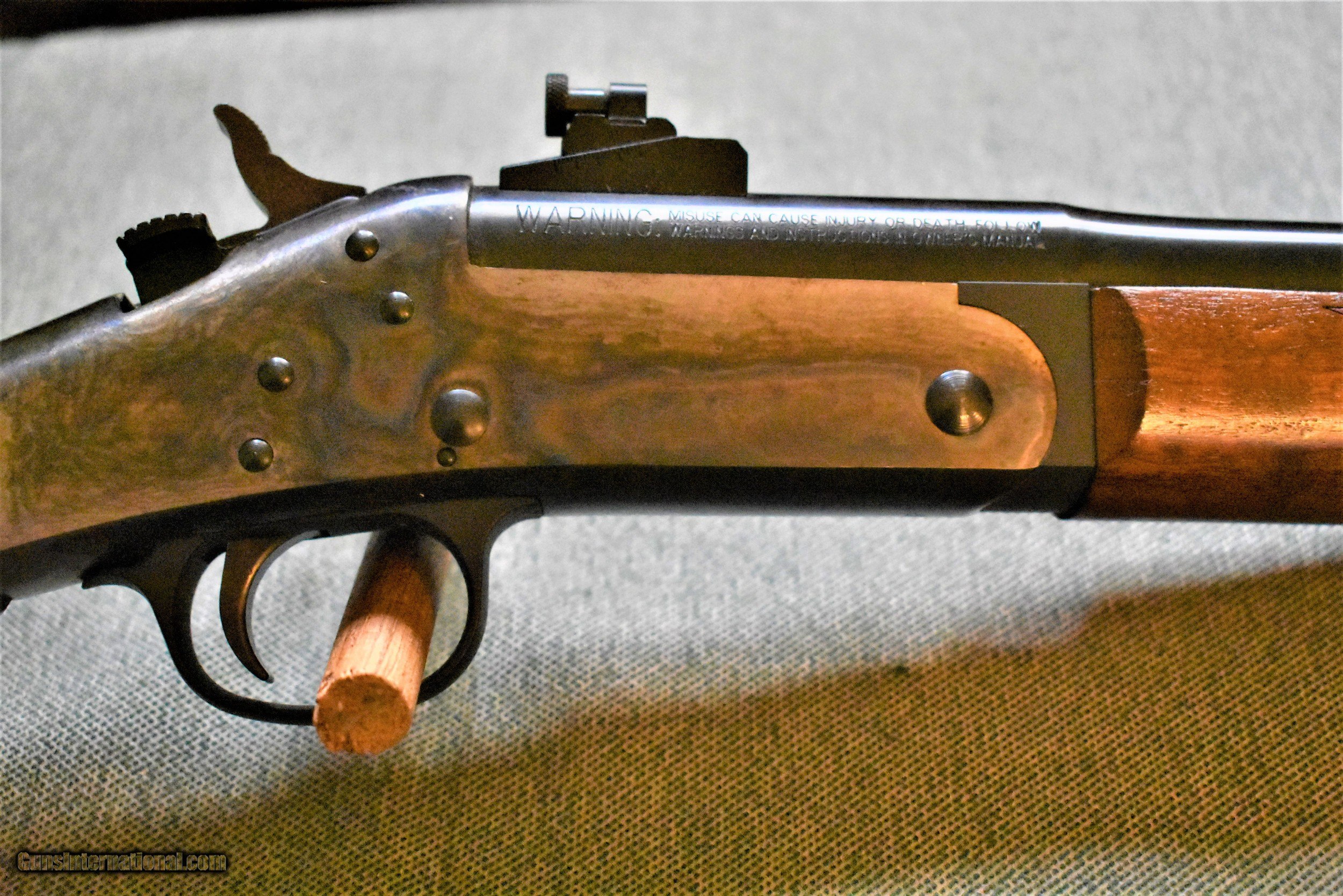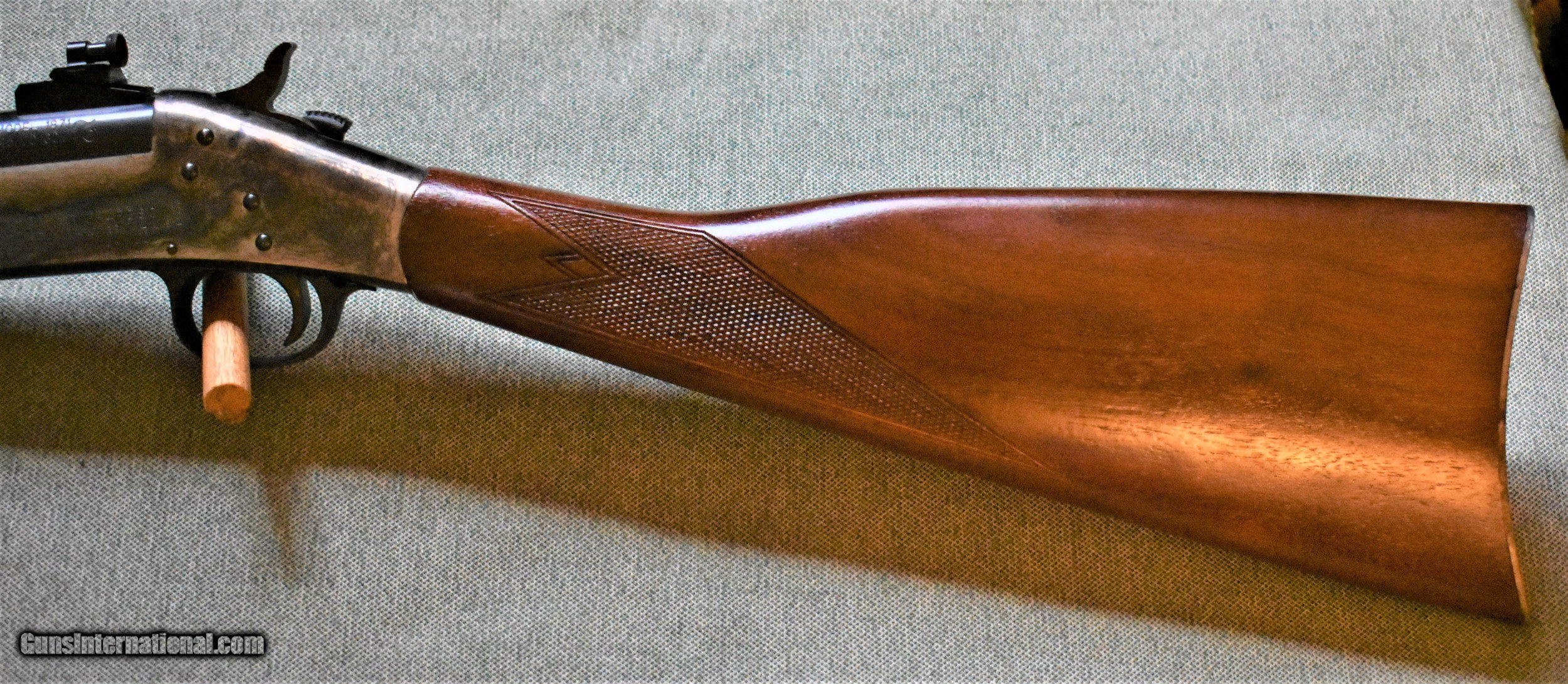 Description: Harrington and Richardson 45-70 Buffalo Classic single shot rifle. Built as a limited production rifle,this rifle has a 32"barrel with Williams rear peep sight and a globe front sight. The stock and forend are checkered and the stock has a case colored crescent steel buttplate. The rifle is in as new condition retaining 100% of the case color,blue,and wood finish. A great rifle for the former shotgun only states that now allow straight case rifles. SOLD Rifle Caliber: .45-70 Government Manufacturer: Harrington and Richardson Model: Buffalo Classic Serial Number: HW314900 Barrel Length: 32 Condition: mint Metal Condition: mint Wood Condition: mint Bore Condition: mint Action: Single Shot Butt Pad: Steel Butt |