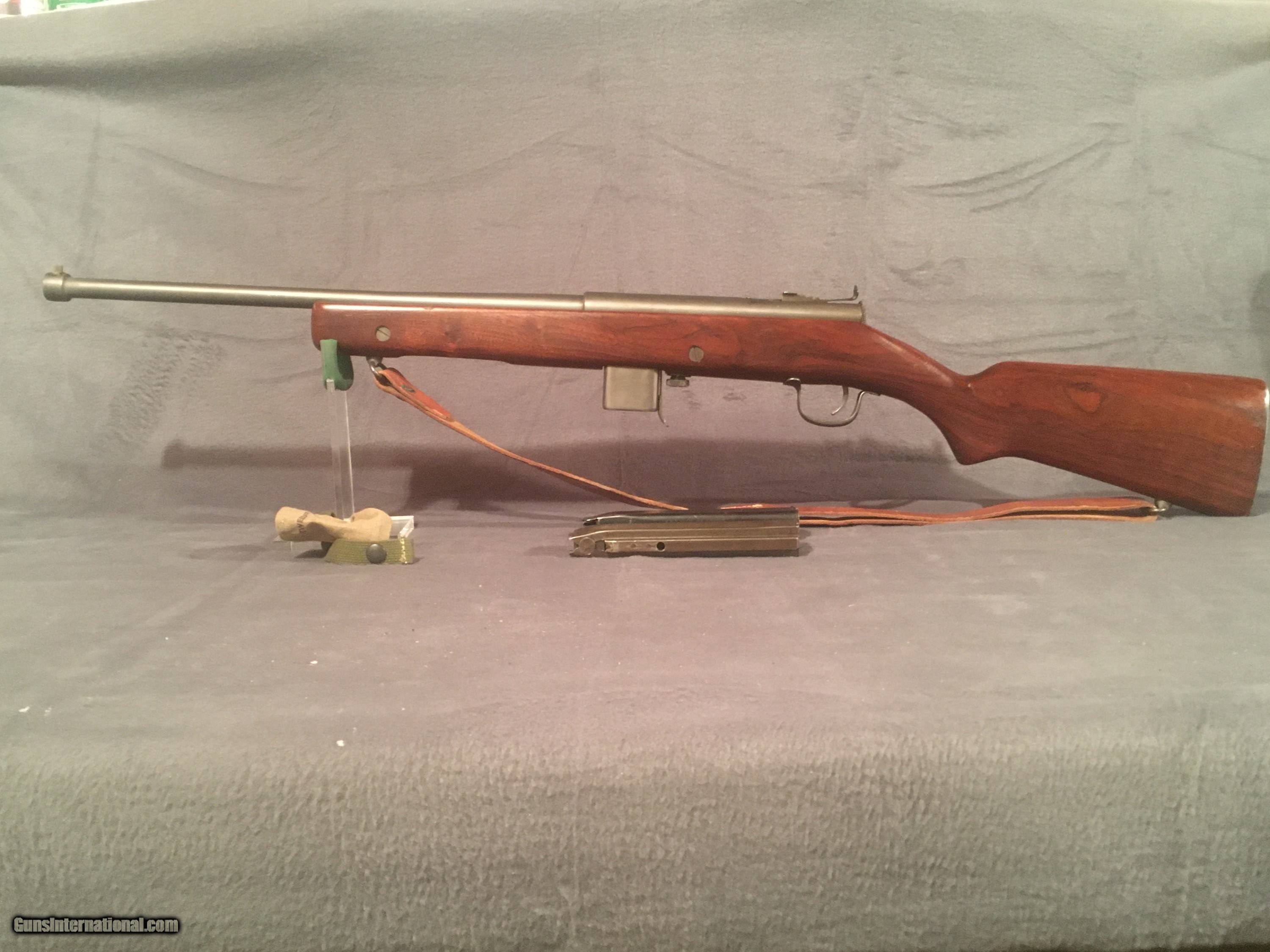 Description: For Sale is an excellent condition H&R Reising Model 60 semi auto rifle in .45acp. I've never shot the rifle and it is unknown if it has been shot. The wood stock and metal parts are in excellent condition. There are a few marks on the wood being a safe queen. The solid metal buttplate has some oxidation to the plate sitting in the safe. Serial number on the rifle is (1466). Both sights front and rear are original to the rifle. Barrel length is 18" with an excellent bore. The leather sling was on the rifle when purchased and there are no identifying marks on the sling that it is government issued. The rifle will ship with original 12 and 20rd magazines. Know your State and local laws pertaining to high capacity magazines. SOLD Curio/Relic: Yes Rifle Caliber: .45 ACP Manufacturer: H&R Model: 60 Serial Number: 1466 Condition: Excellent Metal Condition: Excellent Wood Condition: Excellent Bore Condition: Excellent Action: semi auto Stock: wood Butt Pad: metal |