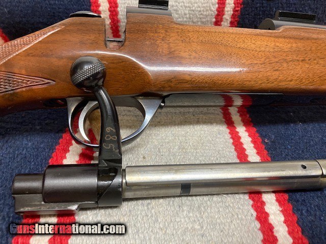 Description: H & R 300 Ultrarifle in 243 win. SAKO L579 roundtop action. Gun is in AS NEW condition. 99% + metal and wood. All original with exception of sights removed from barrel and the holes filled with tapscrews. 22" barrel. These rifles were mfg from 1973-77 using Sako actions. This one is a beauty. Weaver blocks on action. $40.00 shipping to your FFL(lower 48). NO CA SALES. SOLD |