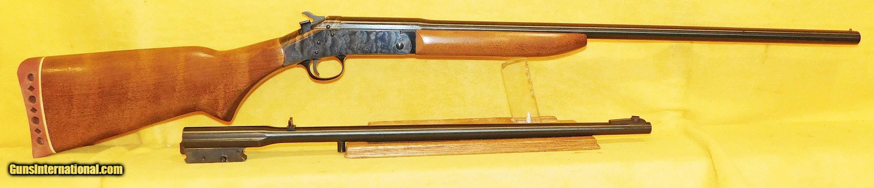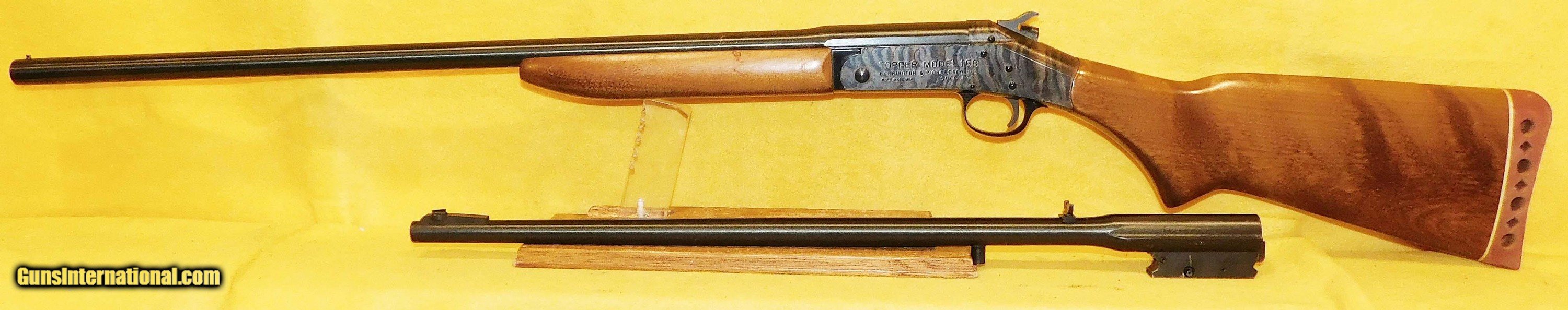 Description: H&R TOPPER 158 (YOUTH) IN .20 GA./.30-30 CAL. WITH 26"/22" BARREL. COLOR BLUE. CONDITION 96%+. SERIAL NUMBER AL206601. H&R MODEL TOPPER 158 YOUTH (13” L.O.P.) SINGLE SHOT IN 20 GAUGE AND .30-30 RIFLE CARTRIDGE, BOTHE BARRELS HAVE BRIGHT SHINY BORES NAND ARE SERIAL NUMBERED TO THE RECEIVER, WOOD IS EXCELLENT, 96%+ OVERALL CONDITION, OUR STOCK # D2880 SOLD |