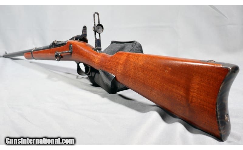 Description: This H&R U.S. Model 1873 is a single shot 45-70 Government. This is in very good condition with very little cosmetic issues. If you have any questions or wish to purchase this firearm, please call us at 316-854-0748 where any member of the Wichita Cabela's Gun Library team will be happy to assist you. .45-70 Government SOLD Chambers: .45-70 Gov Metal Condition: Like new Wood Condition: Very good. Bore Condition: Very good. Barrels: 22 Inch Triggers: Curved Stock Dimensions: 41 Inches overall with 13½ LOP. Fore End: Wood forend Butt Pad: Metal buttplate. Weight: 7lb 5oz Sights: Adjustable peep sights Item Location: Wichita, KS |