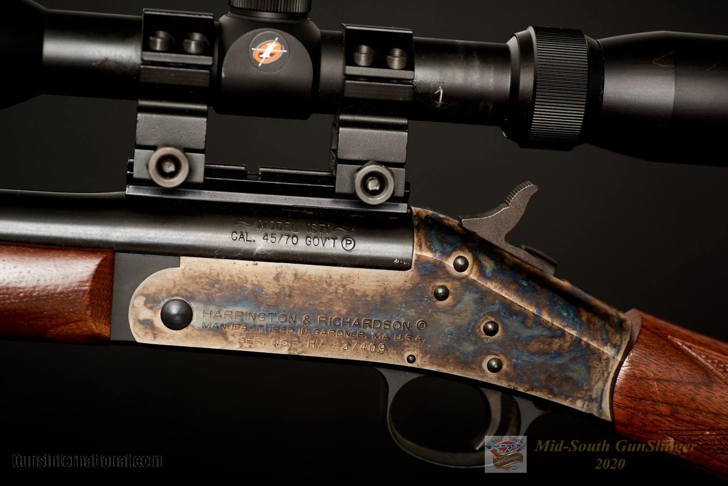 Description: Presented for sale, you will find a H&R (Harrington & Richardson Model 1871 chambered in 45-70 Govt. The pictured scope is free with no warranty whatsoever. This rifle rates and easy NRA Very Good. Included in the listing is the pictured H&R Model 1871. This rifle will ship via FedEx Ground to the lower 48 for $30. Thank you for looking. Our phones are answered 24/7 by a human that speaks English. Mid-South GunSlinger Will Sell Your Guns for You!!!