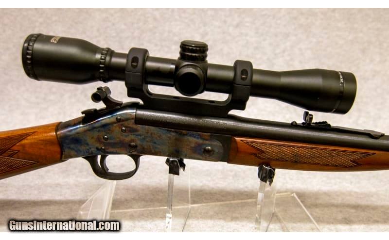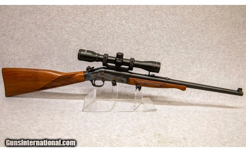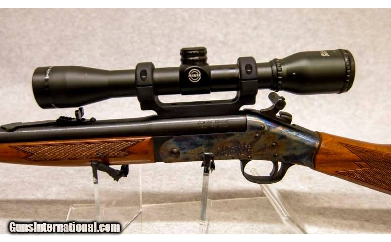 Description: Harrington & Richardson Buffalo Classic, chambered in .45 Colt. Features include: top lever break open action, 20 in. barrel with carbine front sights with Williams rear receiver and Lyman front target sights with aperture inserts, case-hardened frame, checkered walnut stock and forearm, 8 lbs. .45 Colt SOLD Chambers: .45 Colt Metal Condition: Very Good Wood Condition: Excellent Bore Condition: Excellent Barrels: 20' Stock Dimensions: 13.5' Butt Pad: Metal Sights: "Adjustable Rear, Hawke 4X32 Scope Item Location: Fort Mill, SC |