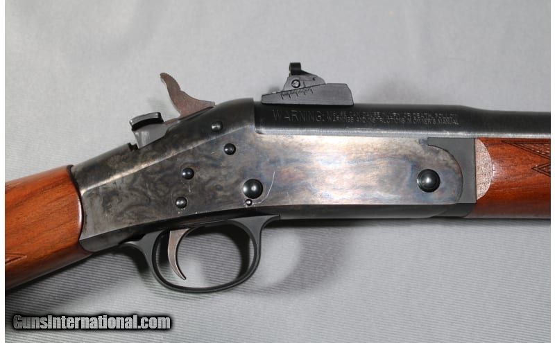Description: Harrington & Richardson Classic Carbine in .45 Colt. Nice single shot rifle. Good finish but does have a few scratches on the left side of the receiver. 20" barrel. .45 Colt SOLD Metal Condition: good Wood Condition: good Bore Condition: bright Barrels: 20 Stock Dimensions: 13.5 Fore End: checkered wood Butt Pad: metal Sights: "post front sight, adjustable rear sight Item Location: Council Bluffs, IA |