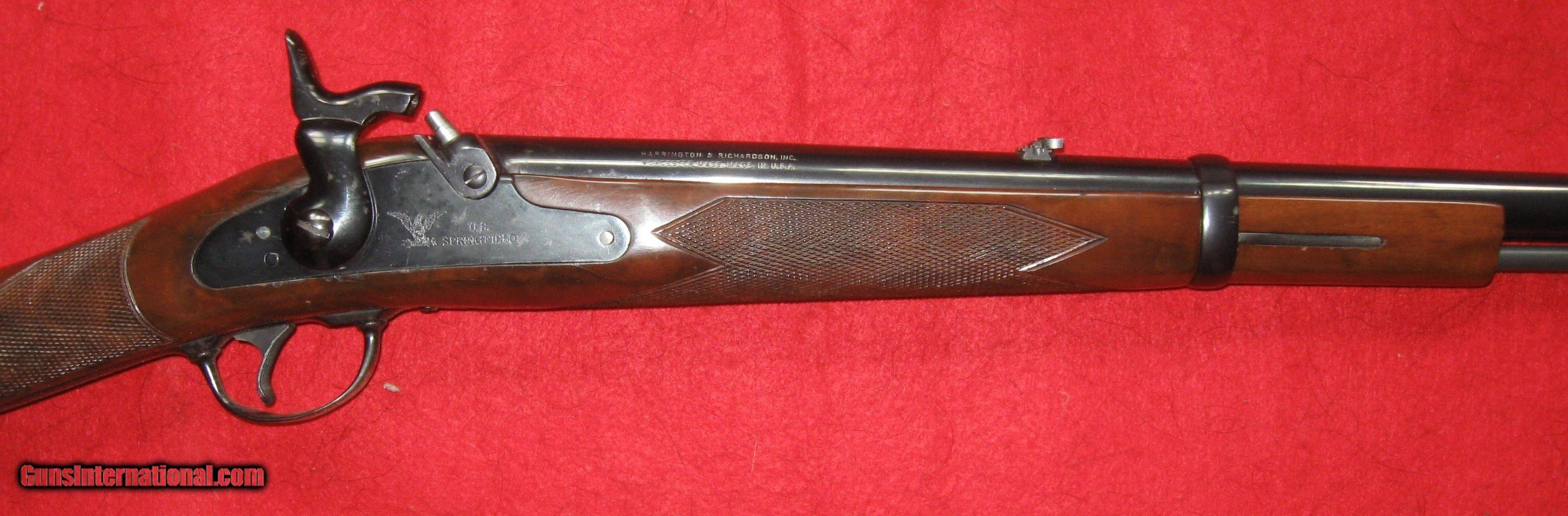 Description: sale pending mike e- 10 day hold-THIS HARRINGTON & RICHARDSON DELUXE SPRINGFILED SPORTER IS A 45 CALIBER MUZZLELOADER. IT IS SERIAL # AL373851. IT IS IN VERY GOOD CONDITION WITH AN EXCELLENT BORE AND A NEW STAINLESS MUSKET CAP NIPPLE. THE ACTION IS TIGHT WITH A CRISP TRIGGER. THE WOOD HAS EXCELLENT FIGURE WITH SCATTERED DINGS AND MARKS FROM USAGE. THE REAR SIGHT IS HEIGHT ADJUSTABLE AND DRIFT ADJUSTABLE FOR WINDAGE. IT HAS A SYNTHETIC RAMROD. SHIPPING IS $35 FROM MY FFL DIRECT TO YOU ( NO PAPERWORK AS IT IS A MUZZLELOADER ) SOLD Rifle Caliber: .45 Manufacturer: HARRINGTON & RICHARDSON Model: DELUXE SPRINGFIELD SPORTER Serial Number: AL373851 Barrel Length: 27 Condition: VERY GOOD Metal Condition: VERY GOOD Wood Condition: VERY GOOD- SCATTERED DINGS AND SCRATCHES Bore Condition: EXCELLENT Barrel Type: ROUND Action: PERCUSSION- MUSKET CAP Butt Pad: BLUED STEEL WORN FINISH Finish: BLUE Sights: FOLDING OPEN ADJUSTABLE |