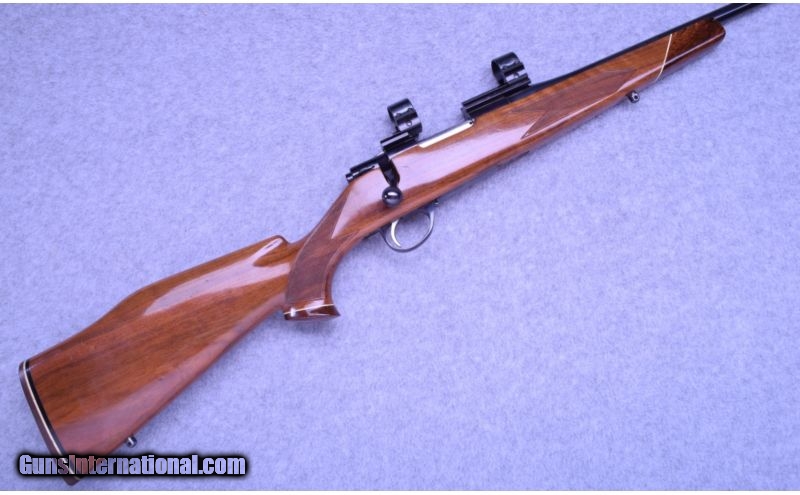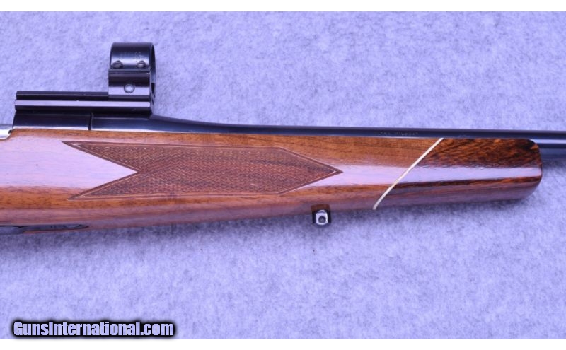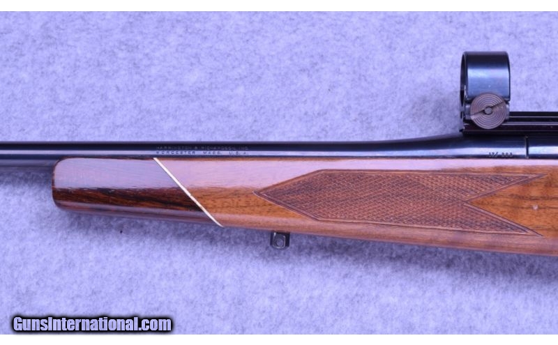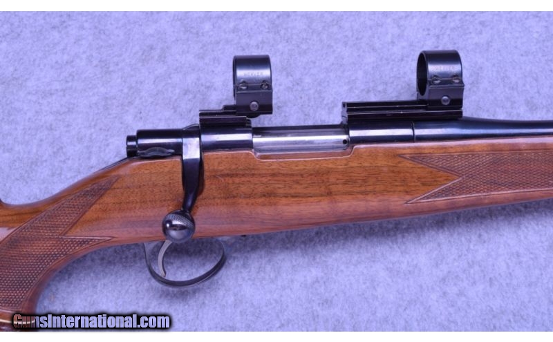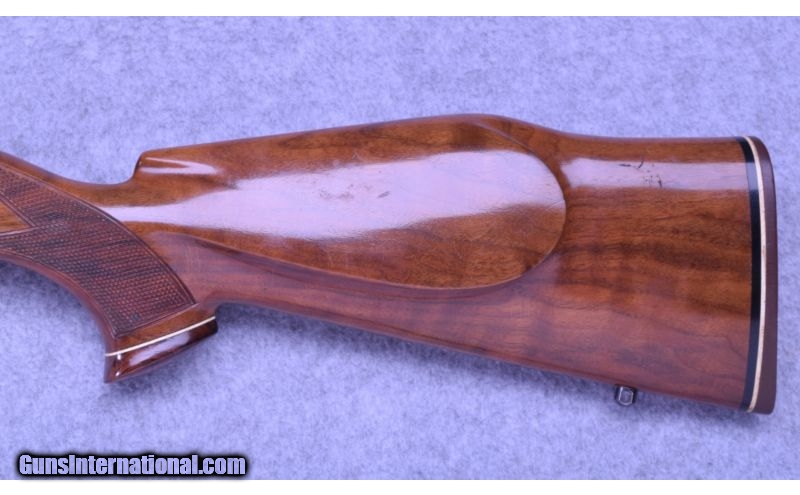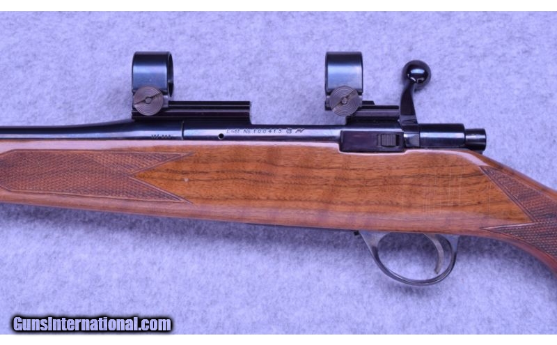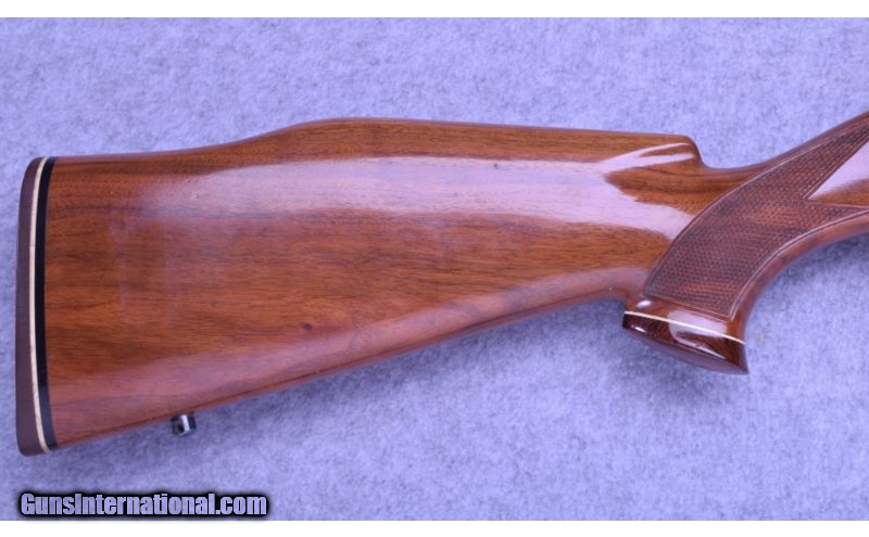 Description: Wood shows a few use / storage marks with a bit of age cracking in the finish. Blue and bore remain excellent throughout. Complete with Weaver rings & bases. No box. SOLD Manufacturer: S/N - 100XXX Caliber Info: .17-.223 Metal Condition: Excellent Wood Condition: Good Bore Condition: Excellent Barrels: 20 in. Triggers: Sako Stock: Checkered Walnut P.G. w/Right Hand Palm Swell & Contrasting Cap Stock Dimensions: 14 1/4 in. LOP Fore End: Checkered Walnut w/Contrasting Cap Butt Pad: Brown Rubber Weight: 6 lbs. Sights: None - Weaver Rings & Bases incl. Item Location: Wheeling, WV |