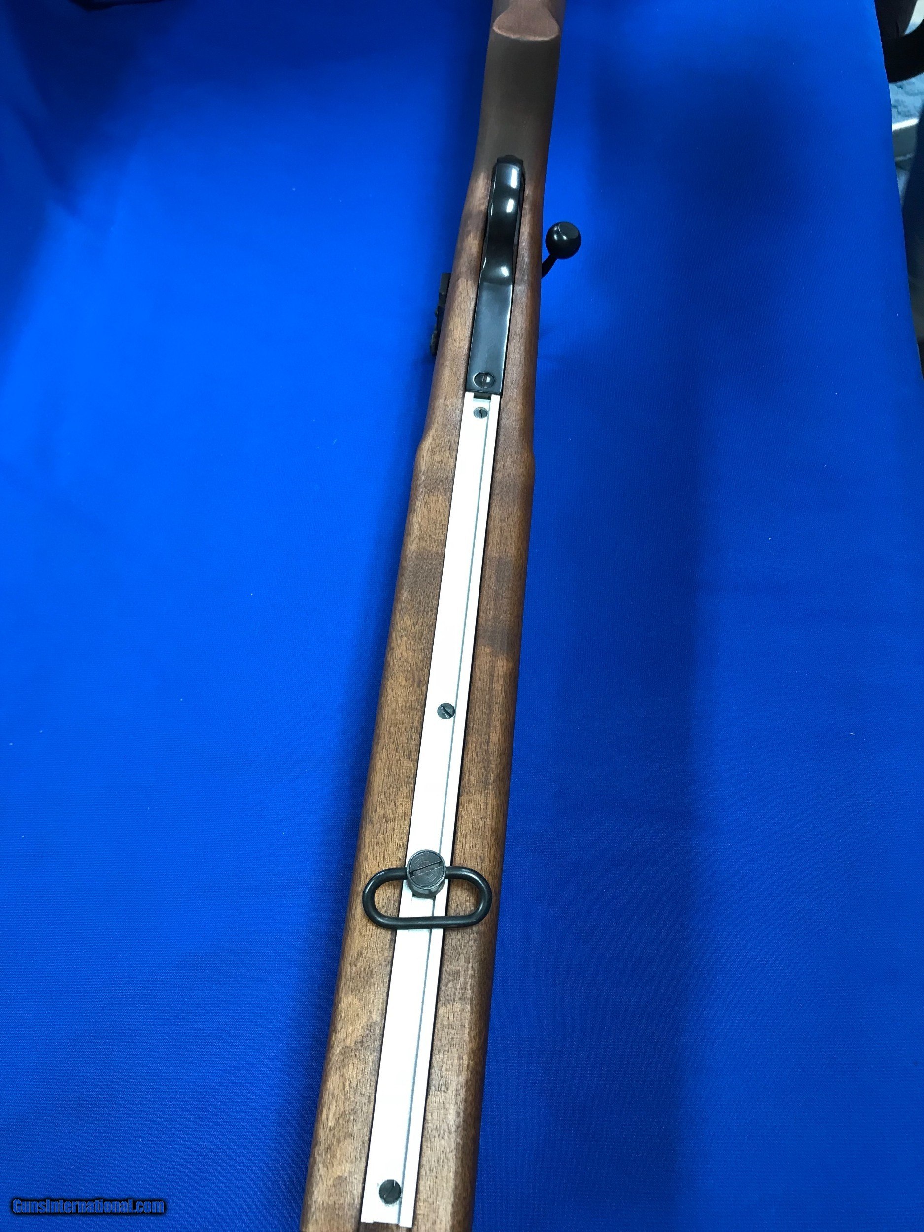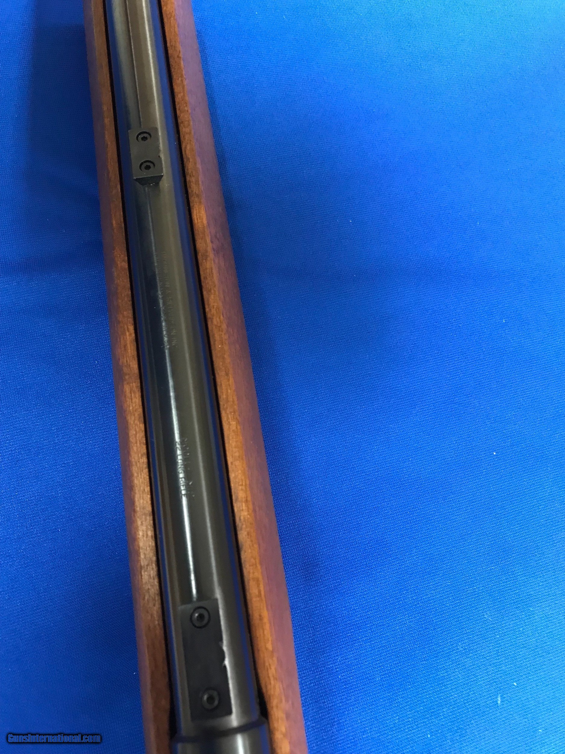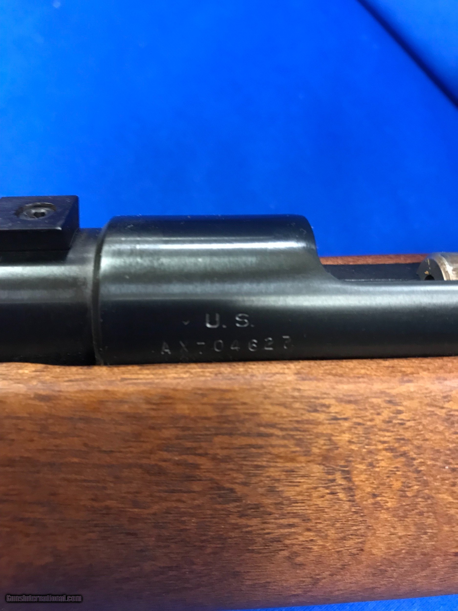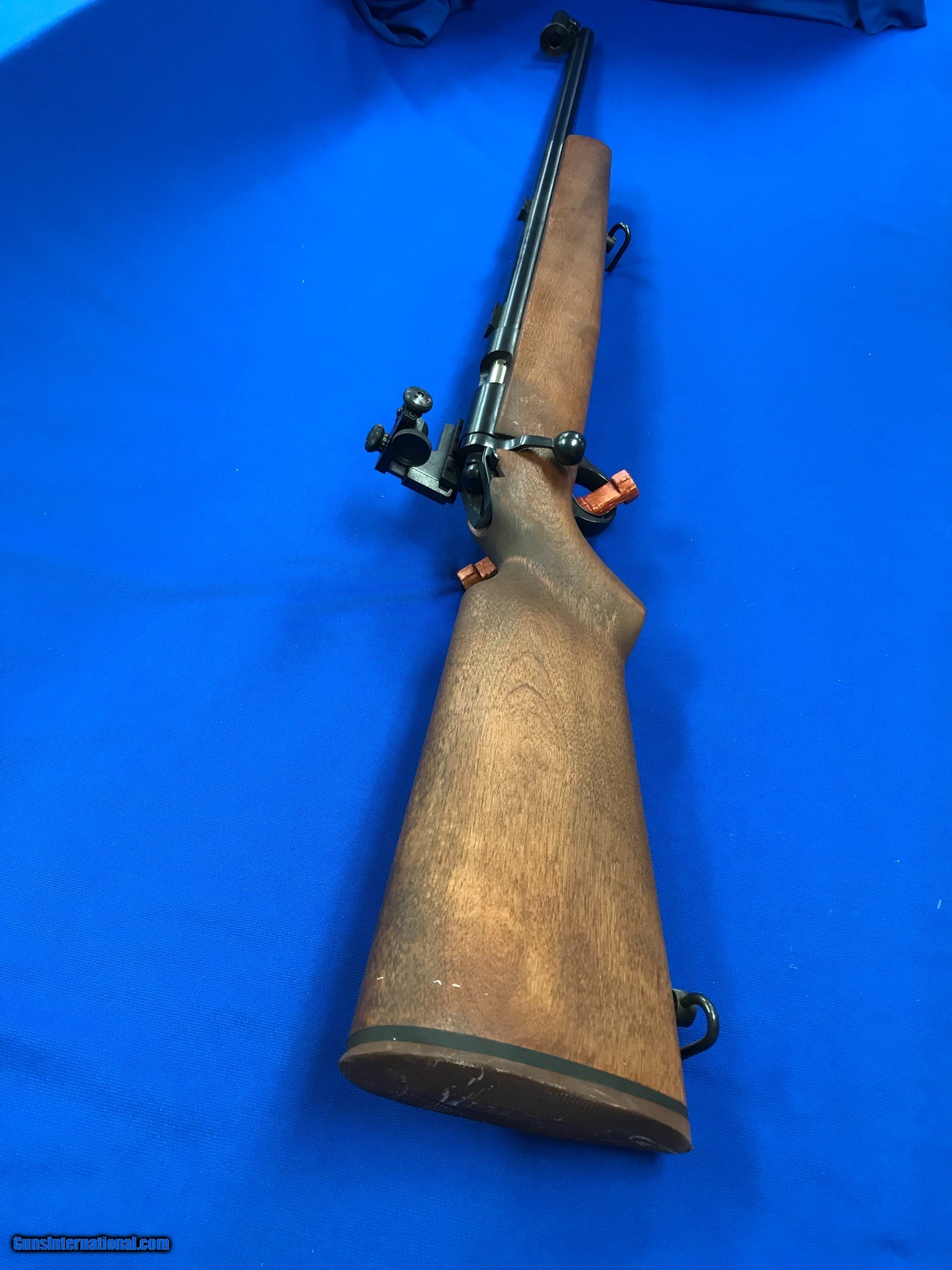 Description: Of simply magnificent quality/workmanship being manufactured for the Military by HARRINGTON & RICHARDSON this is a very heavy single shot Target Rifle (heavy barrel, heavy stock w/full forearm ‘’adjustable’’ front sling swivel assembly with Redfield Palma large rear micrometer Target Sight assembly and large Redfield Olympic hooded round global hooded front sight assembly, adjustable trigger, Target Scope receiver and barrel mounts. This offering is the finest example of this variation the ‘’CMP’’ sold some years ago being basically as H&R Factory ‘’New/Unissued’’ and MINT/99% being ‘’U.S.’’ marked on left receiver and MODEL M12 over 22 LONG RIFLE on the heavy barrel that is appx 27’’, 46 ½ '' o/a length and weight appx 12 Lbs.). No Box. Comes further complete with manual. <>Reg. FFL Item<> SOLD Manufacturer: Harrington Richard Arms Model: Model 12 Serial Number: AX704627 Caliber Info: .22 Manufacture Date: 10-54 |