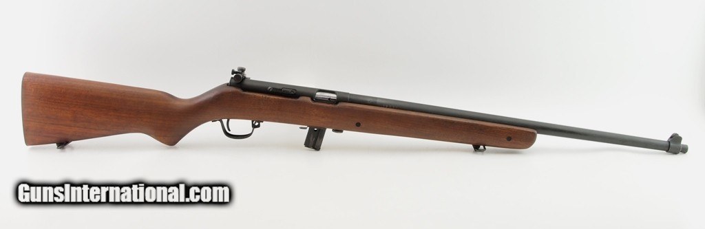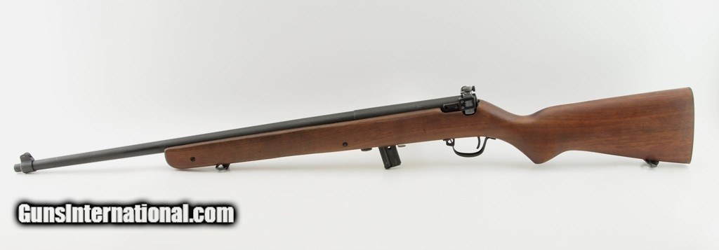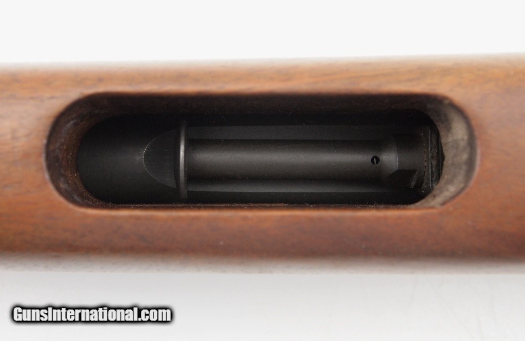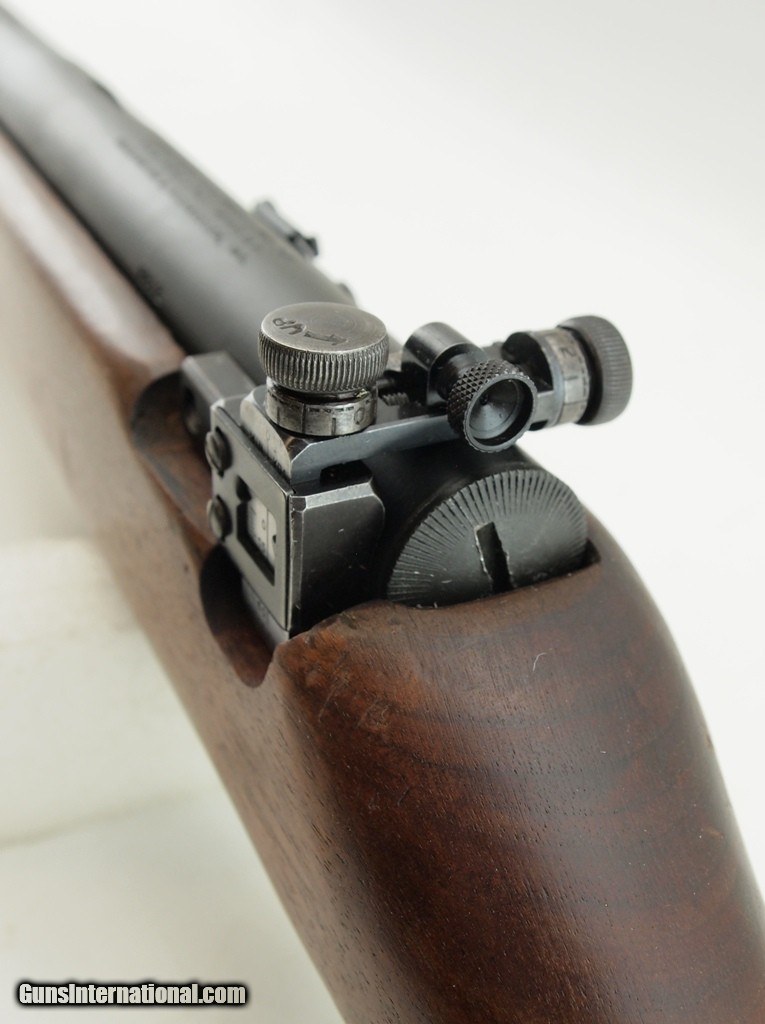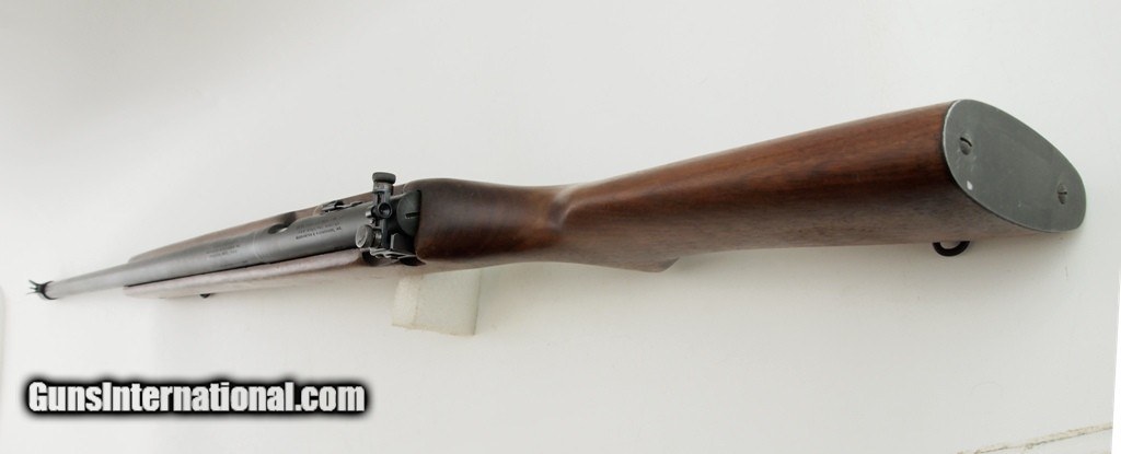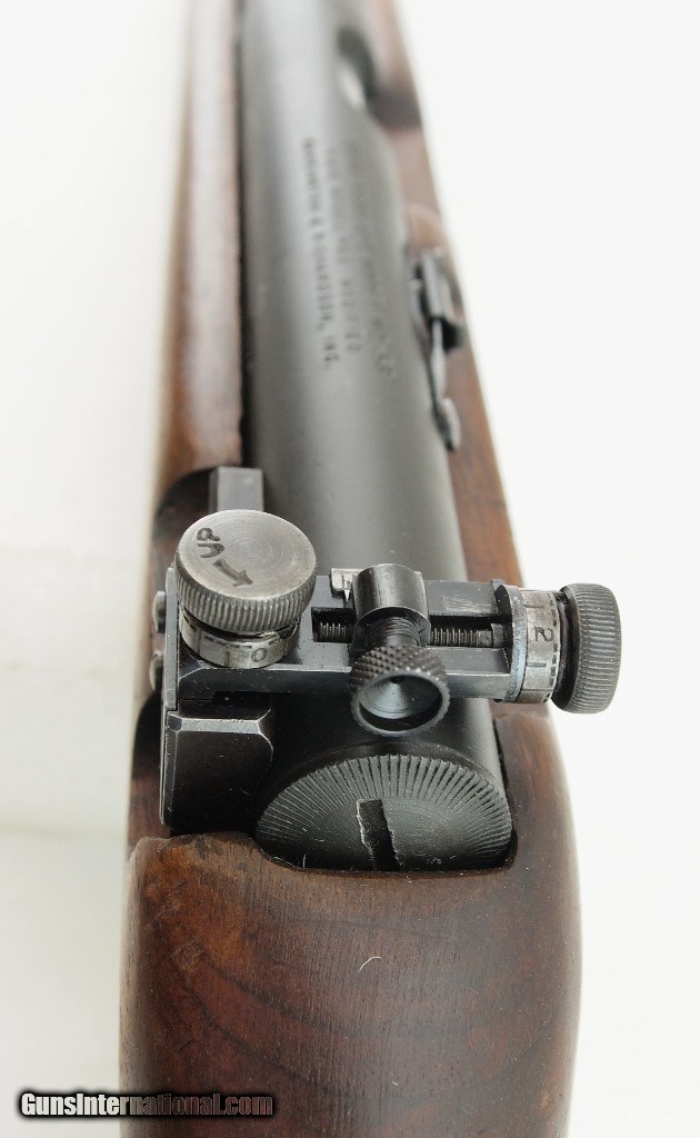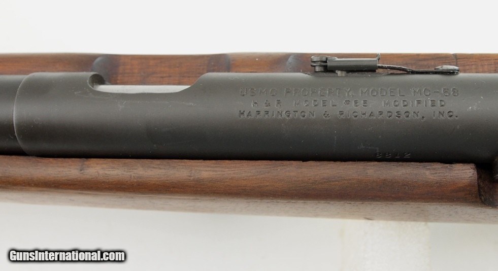 Description: Scarce Harrington & Richardson 65 Modified USMC MC-58, 23" bbl, bright shiny bore, good rifling, Parkerized finish, M1 Garand style winged blade front sight - safety, Redfield micrometer adjustable rear peep sight, military style sling swivels, very nice M1 style oil-finished walnut pistol grip stock, a few light handling-storage marks, top of the receiver is stamped "USMC PROPERTY, MODEL MC-58 - H&R MODEL #65 MODIFIED - HARRINGTON & RICHARDSON, INC." with the serial number stamped under, top of the barrel near receiver is stamped === USMC PROPERTY === - HARRINGTON & RICHARDSON INC. - WORCESTER, MASS., U.S.A." with ".22 CAL. LONG RIFLE ONLY" stamped under, a small, "Eagle with Three Star" National Defense Inspection final inspection mark is stamped inside the pistol grip, and one 10 round magazine. Purchased by the U.S. Marine Corps as a .22 caliber military training rifle for the M1 Garand. Add 3% for Credit Card Shipping $35.00 SOLD |