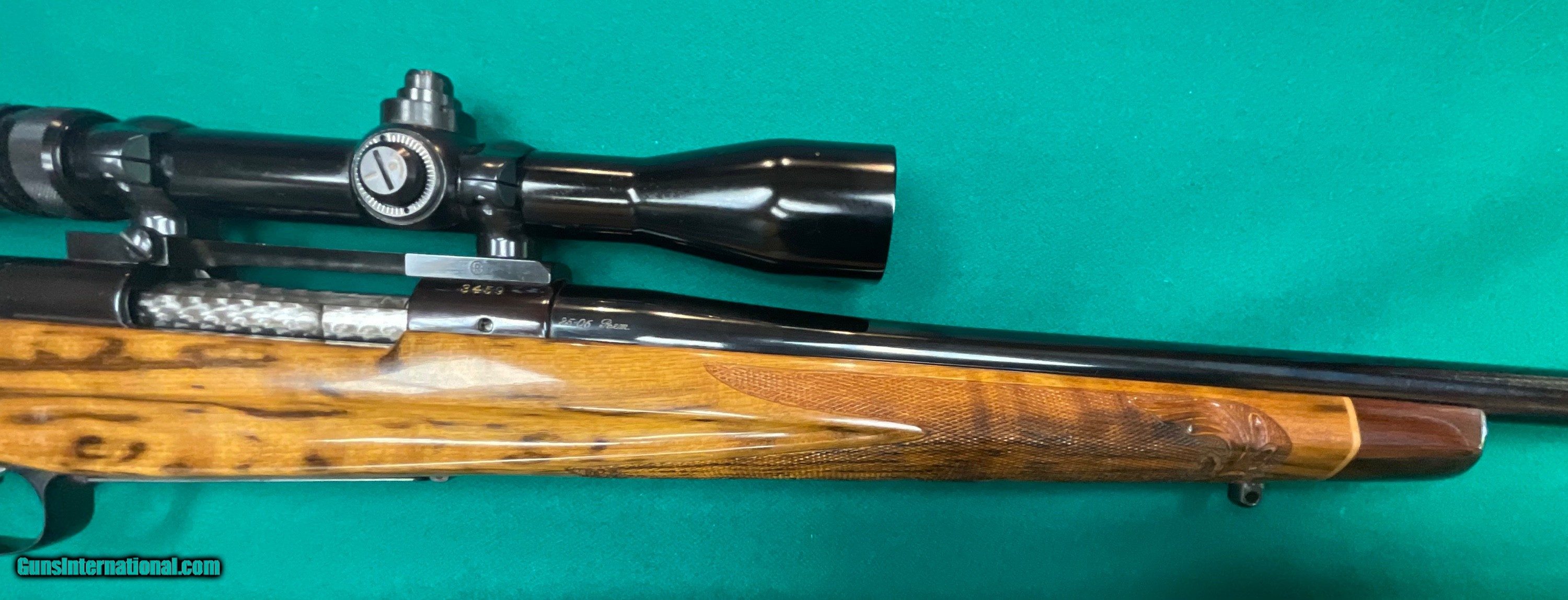 Description: Very scarce Harry Lawson custom 25-06 built on a pre-war model 70 Winchester action. Near new condition with Spectacular wood and checkering on this very high grade Lawson custom. complete with Redfield scope. Other Lawson rifle photos I've seen are not as spectacular as this one and most seemed to have been built on Remington actions. $3000 plus $65 insured shipping in hard gun case. 5 months layaway available with $500 down. C&R ok. no credit cards and no trades. SOLD Curio/Relic: Yes |