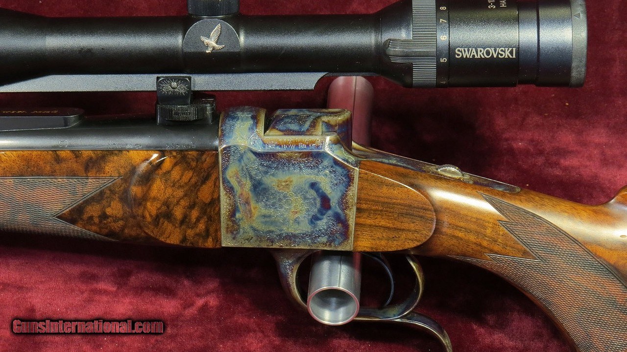 Description: This pre owned Hagn rifle looks like new. The weapon was refinde by Karl Hauptmann, Ferlach. The system is original from Hartmann and Weiss Hamburg. The gun shoots incredibly precisely. Beautiful Turkish Walnut wood. Color Hardening is form England. Very fine engraving. . International shipping is not a problem. My gun is here in Germany. The new price was 35.000 Euro Shipping to USA is no problem with krico.eu Sold SOLD Rifle Caliber: .338 Winchester Magnum Manufacturer: Hartman and Weiss Model: Hagn Wood Condition: Turkish Walnut Wood Engraving: very fine english Case: Hard case |