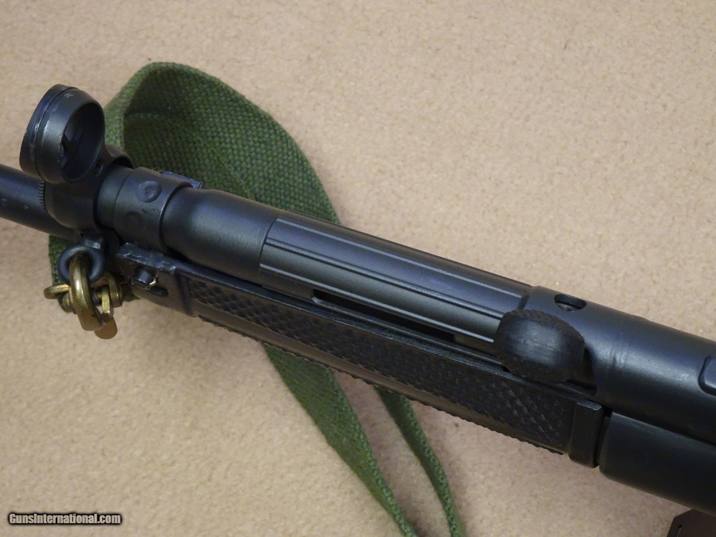 Description: H&K introduced the Model 94 in 1983, as a civilian/commercial semi-auto only version of the military's select-fire MP5 submachine gun. The most recognizable difference between the MP5 and HK94 besides the lack of select-fire capability is the long 16.5" inch barrel on the HK94. This long barrel was required to comply with the U.S. gun laws at that time to be legal. Outside of a special run of 420 guns for the California Dept. of Corrections in 1991, the HK94 was only imported from 1983 to 1988 with a little over 15,000 HK94s making it to the States. With an original list price of $720 for the A3 and $650 for the A2, it was a popular model and sold reasonably well in the commercial market. The HK 94 was of particular interest to collectors who owned registered auto-sears or trigger packs, as the 94 could be made to look and function like the military MP5 submachine gun. Because the HK94 can no longer be imported into the U.S. due to stricter import laws pertaining to guns, the HK94 carbine has become super collectible and sought-after, commanding prices that seem to go up every year. This particular example is a first year production model 94A3 with the collapsable buttstock. It is serial number "1279" and date coded "ID" for 1983. It has all of the early production features including the "slim line" metal forearm and early version of the A3 stock. It is in excellent condition overall and has a very clean look to it. The original finish only shows a few small spots of flaking on the left side of the barrel and on top of the front sight protective hood. There is also a scratch on the left side of the trigger group just ahead of the trigger. These imperfections are all pictured in the photos provided for this listing. It is obvious that this gun has been fired very little since it left the factory, and prior to us acquiring it we know this gun spent the last 10 to 20 years in storage. The bore is mint in this HK94. It is bright and clean with sharp rifing and no visible imperfections. The internals look spotless and show no appreciable amount of wear. Everything on this HK works 100% like the day it left the factory. All of the gun's controls work perfectly, and the action is smooth and tight. The stock retracts, extends, and locks into either position smoothly without any slop. The adjustable rear drum sight functions flawlessly with a crisp detent at each position. This 94A3 comes with one original factory 15-rd magazine and the original greensling. If you have been looking for one of these sought-after HK94s here is your chance to get one of the first production run guns from 1983 in all-original and excellent overall condition. This is the ultimate HK carbine model and should continue to be an excellent investment for many more decades to come. SOLD Manufacturer: Heckler & Koch Model: 94A3 Serial Number: 1279 Caliber Info: 9mm Bore: Mint Condition: Excellent Manufacture Date: 1983 Extras: Factory 15-rd magazine and sling |