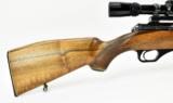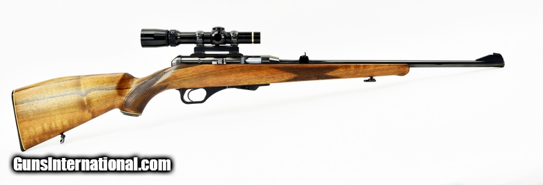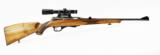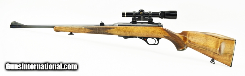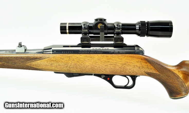 Description: Heckler & Koch HK 300 .22 WMR caliber rifle. Very desirable .22 Magnum caliber rifle. Autoloader carbine. Has nicely figured walnut, quick detachable scope mount and Leupold 1.5X5 scope. A great set up in excellent condition.