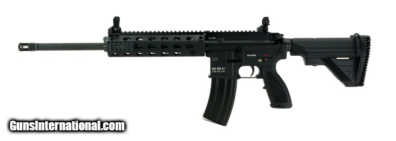 Description: HK MR556 A1 5.56mm caliber rifle. HK MR556 A1 with 16” barrel, 9” key mod rail, troy style iron sights and soft case. NEW