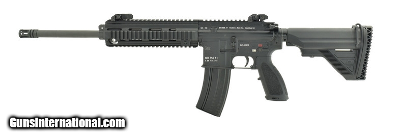 Description: HK MR556 A1 5.56mm caliber rifle. HK MR556 A1 with 16” barrel, 9” quadrail, flip up sights and soft case in excellent condition.