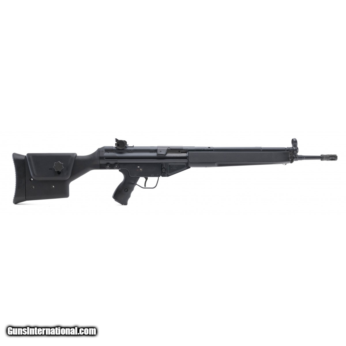 Description: " HK 91 .308 Win caliber rifle. Original Pre-Ban model upgraded with a PSG1 stock and trigger. Has a 1200 meter rear sight. A neat set up in excellent condition. SOLD |
