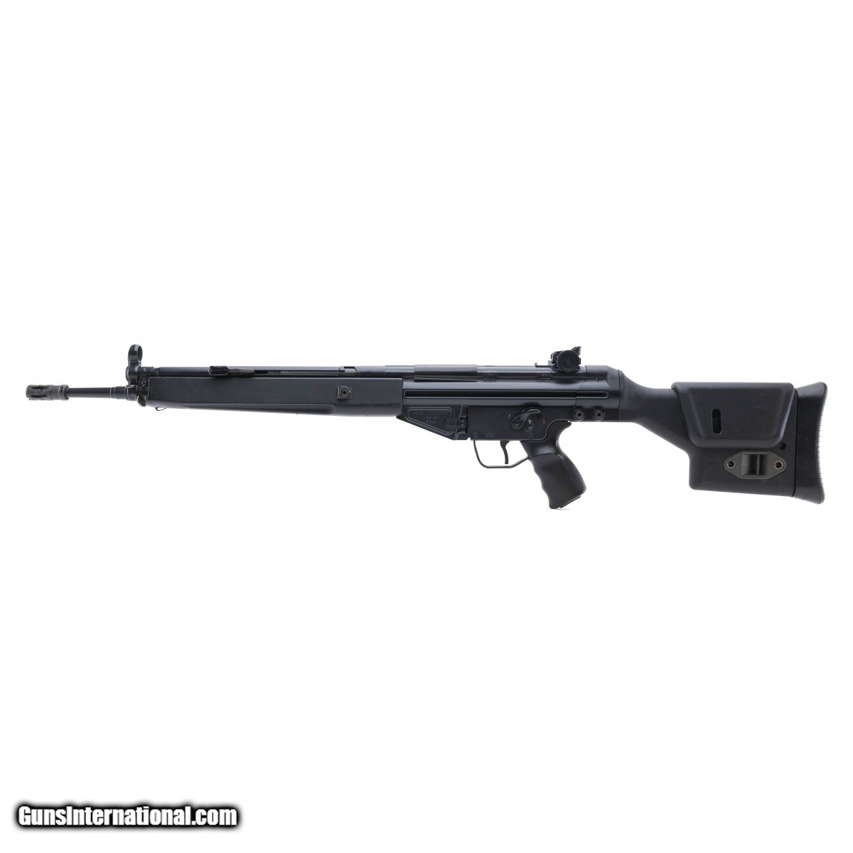 HK 91 .308 Win caliber rifle. Original Pre-Ban model upgraded with a PSG1 stock and trigger. Has a 1200 meter rear sight. A neat set up in excellent condition.