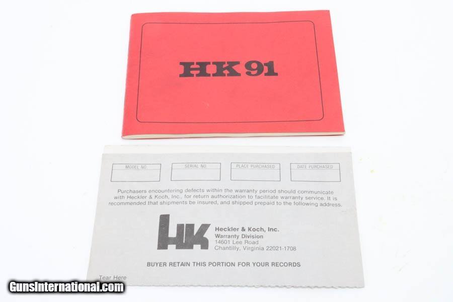 Description: For sale is a gorgeous, Like-New HK 91 made in 1981. The rifle looks fresh from the factory with a dark, clean finish throughout. The only sign of wear we could find was on the bottom of the magazine well with some spotting of finish rubbed away. The plastic furniture is equally excellent without any cracks or breaks. The bore is mirror bright with great rifling. The rifle comes with its original box and outer sleeve. Five 20-round magazines and one sealed 5 round magazine, and a sling are included in the box. The styrofoam box and outer sleeves are well worn and should be handled with care. SOLD Rifle Caliber: .308 Winchester |